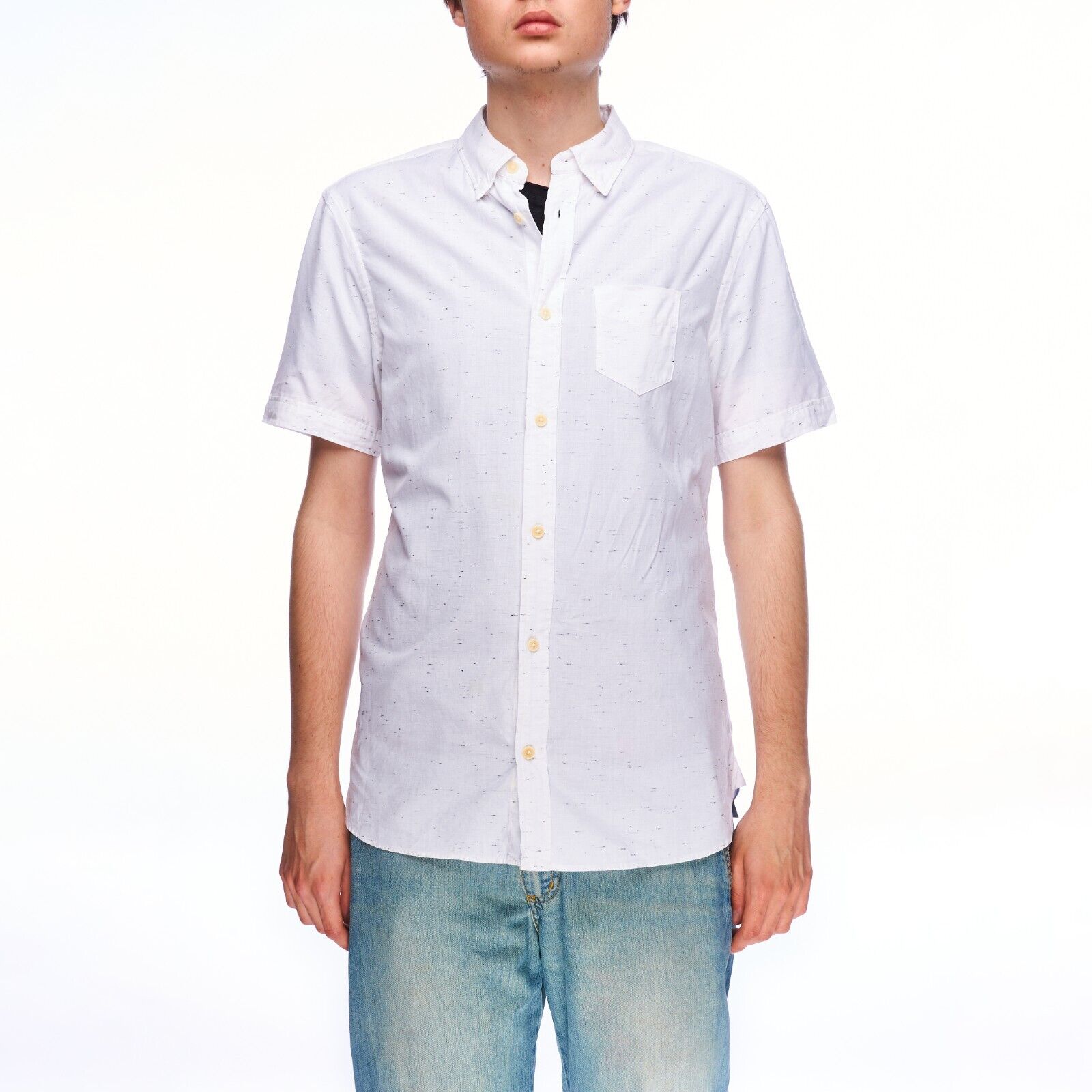 Men's ALL SAINTS White Cotton Dashed Lines Hermann Short Sleeve Shirt Size S MK-002784 Please, check the measurements: back: 29"/ 73 cm sleeve length (from shoulder to cuff) : 9"/ 22 cm sleeve length (from pit to cuff) : 4"/ 10 cm pit to pit: 20"/ 50 cm shoulders: 18"/ 45 cm (all our items are measured laying flat) Hermann Short Sleeve Shirt white, dashed lines pattern 100% cotton short sleeve shirt point collar front button fastening 1 patch pocket Please check all Photos, let us know if you need any other ones. For any further information on this item please contact us and we will be glad to assist you. On 11-Aug-21 at 07:12:55 BST, seller added the following information: