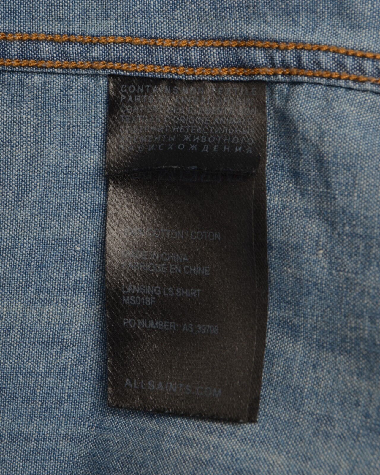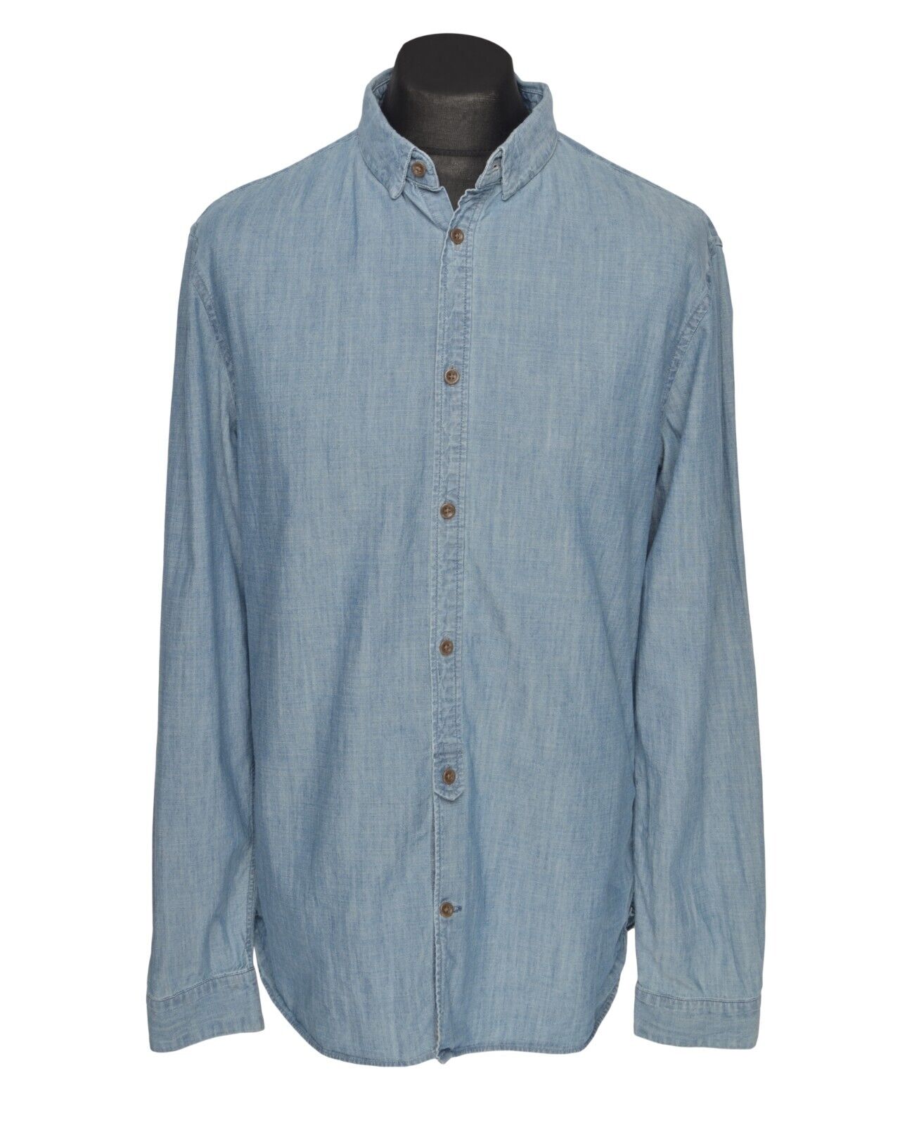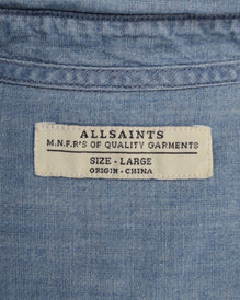 ALLSAINTS Lansing Shirt Blue Denim Cotton Men's Button Up Size L
