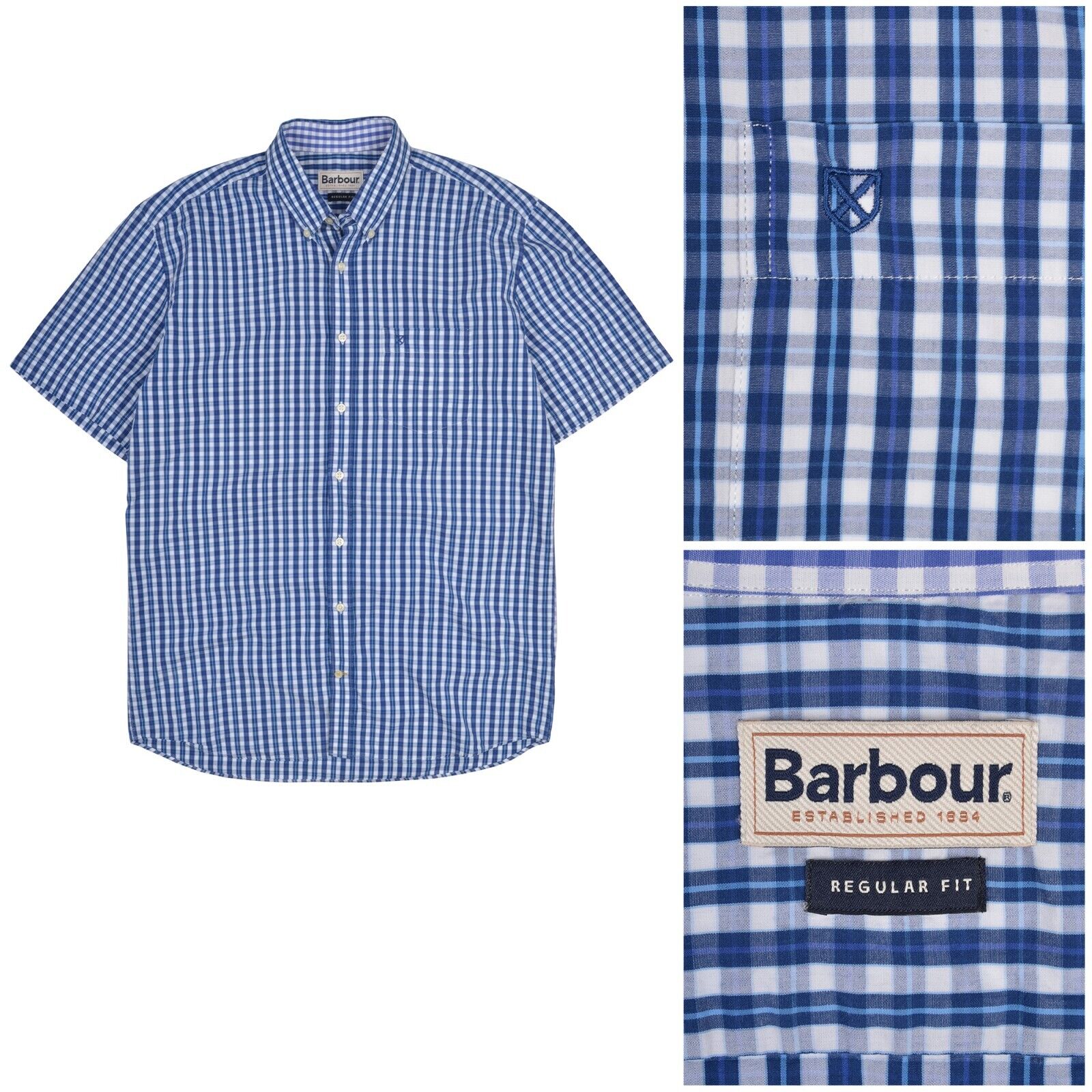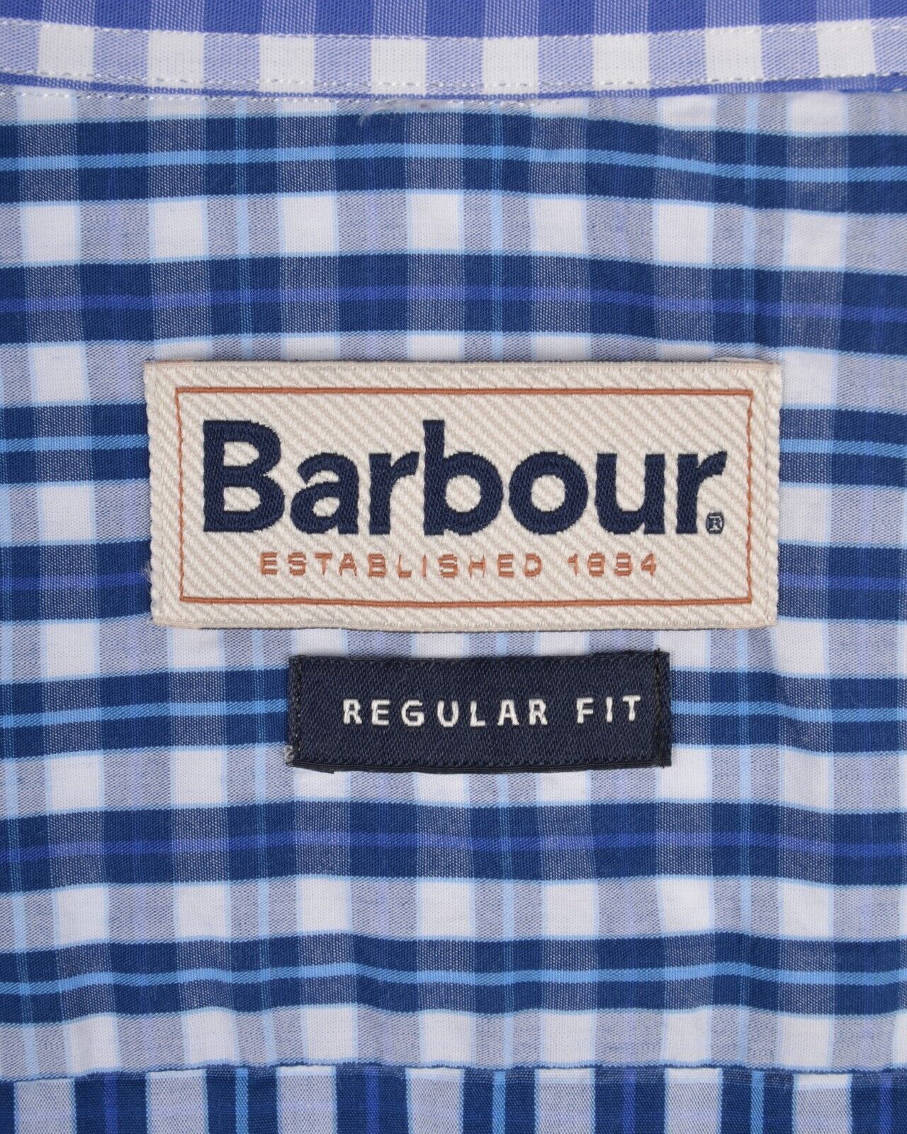 BARBOUR Braystone Shirt White Blue Check Cotton Men's Button Down Regular Size L
