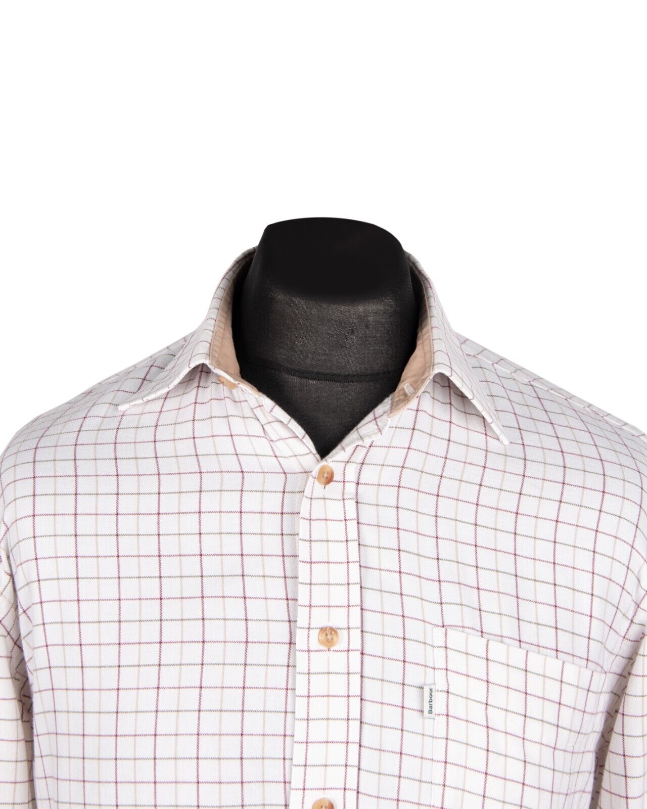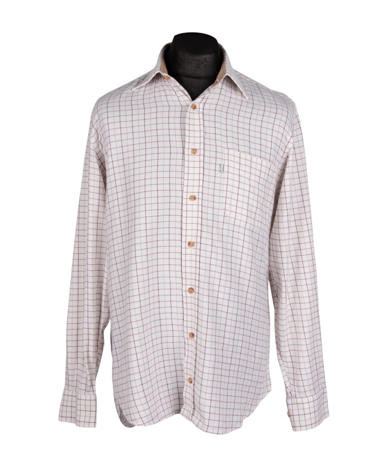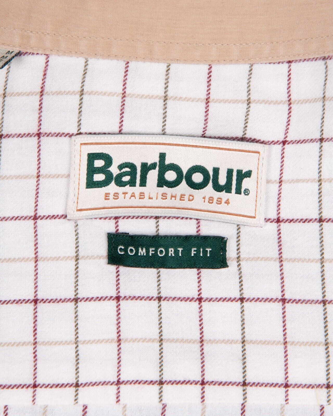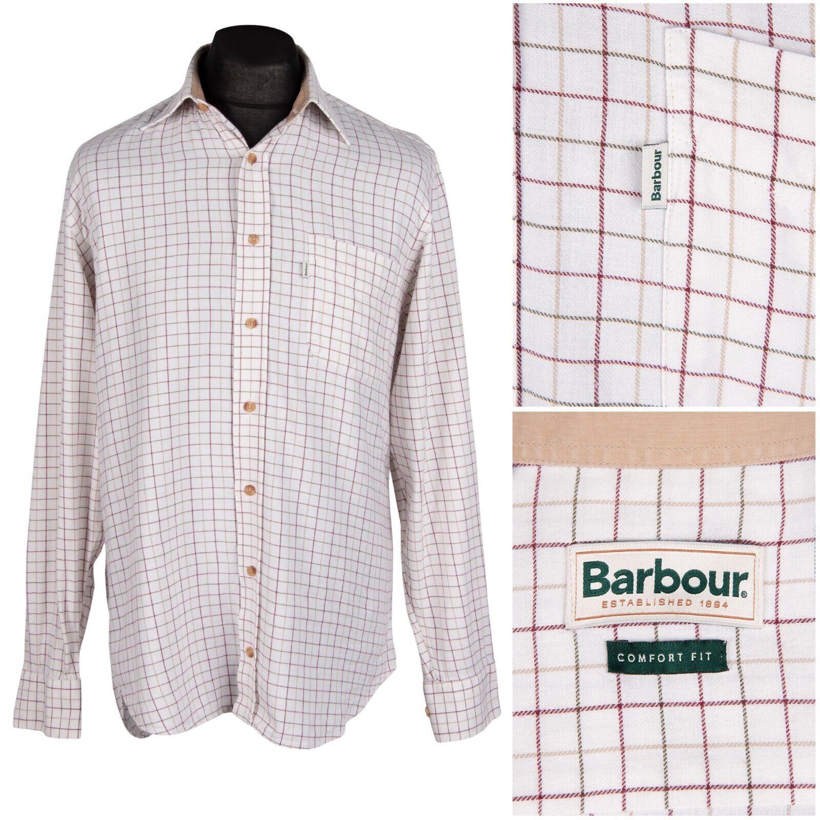 BARBOUR Shirt Ivory Check Cotton Comfort Fit Men's Size M