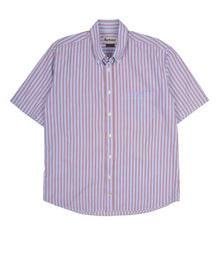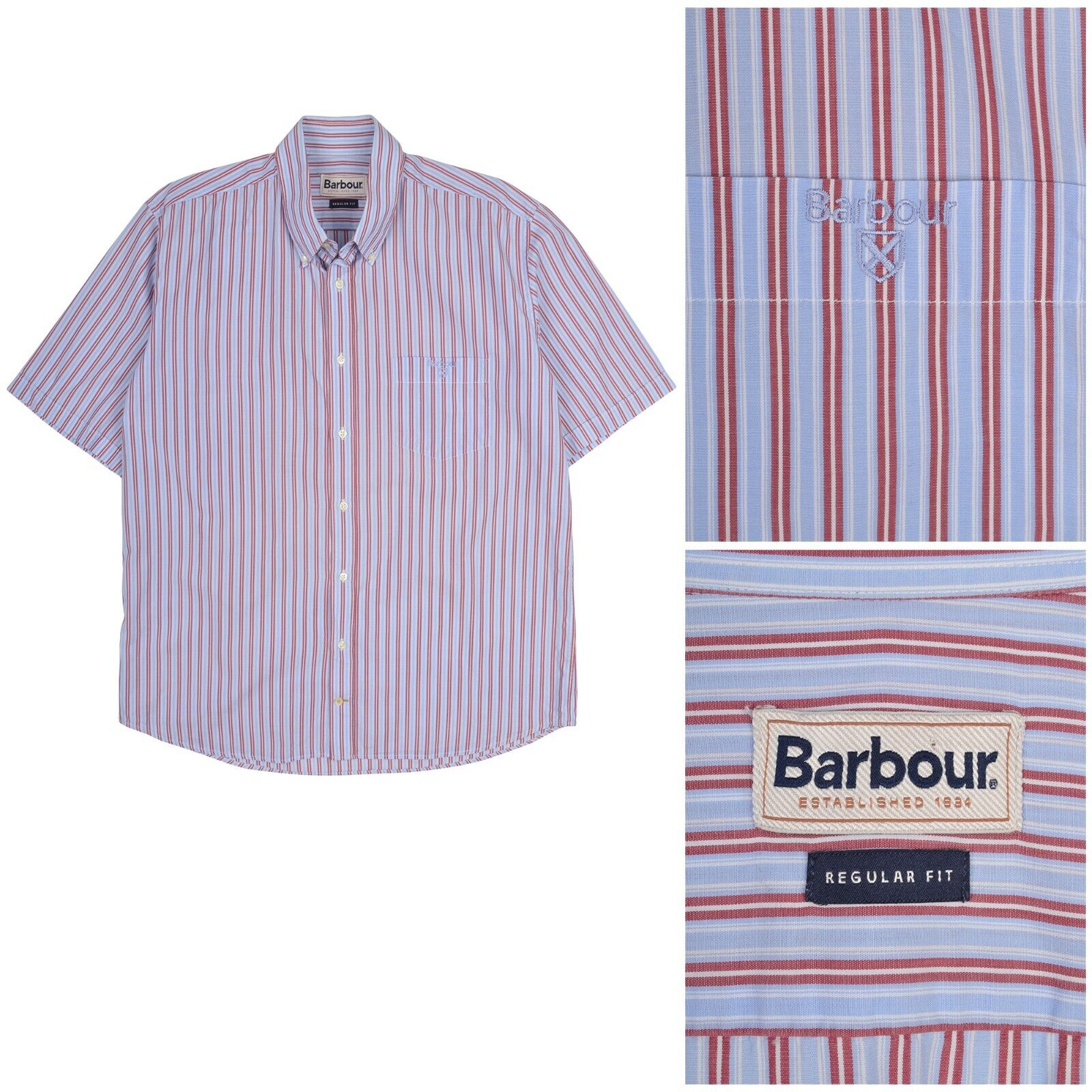 BARBOUR Shirt Red Blue Stripes Cotton Men's Button Down Regular Fit Size L