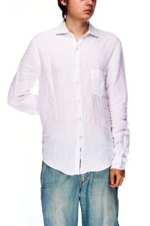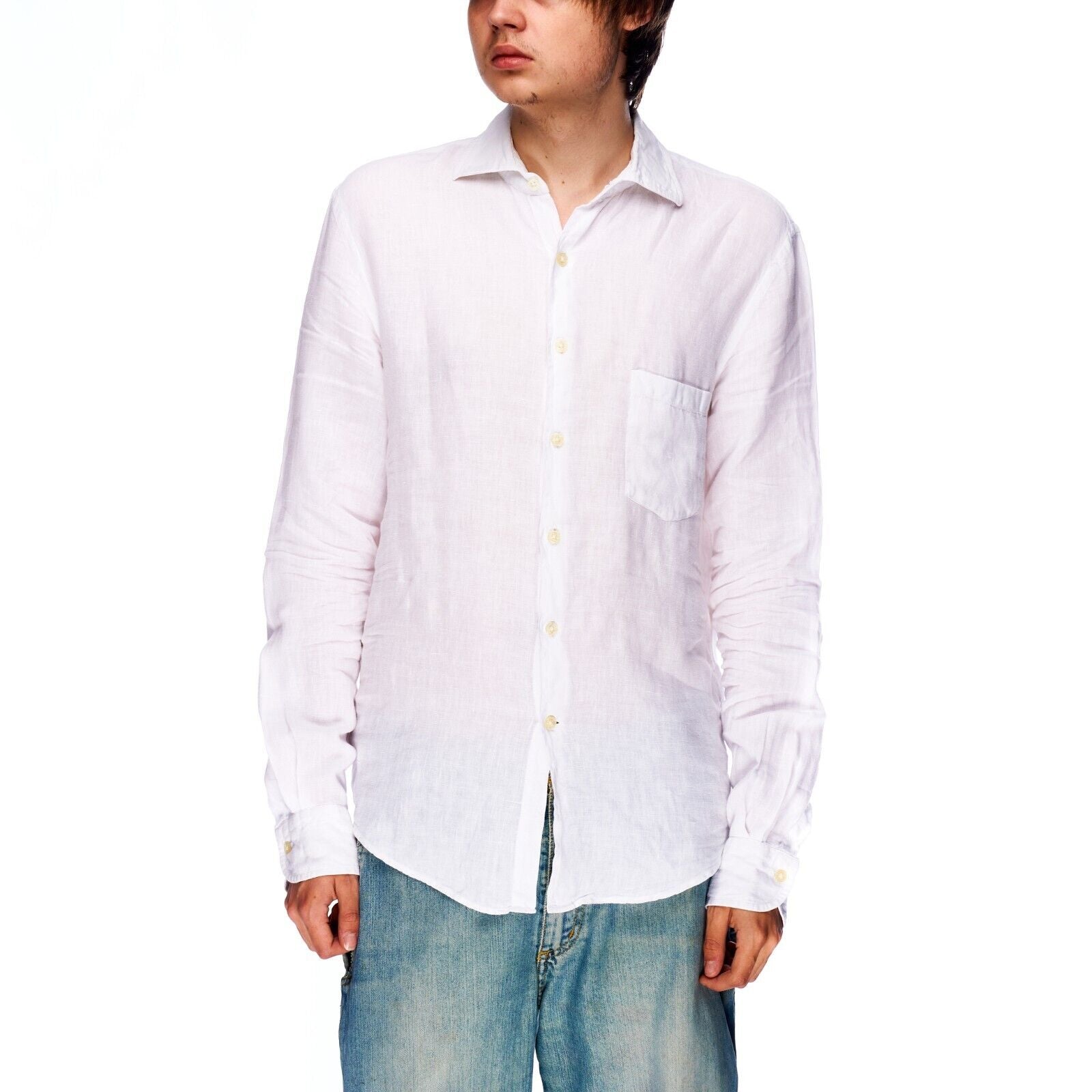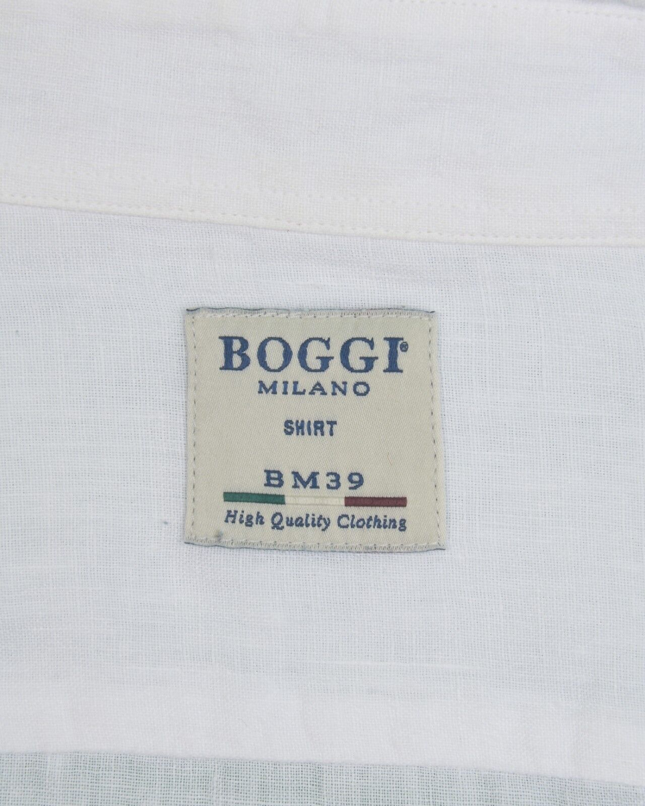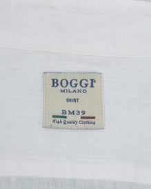 BOGGI Milano Shirt White Linen Men's Regular Fit Button Up Size M