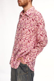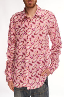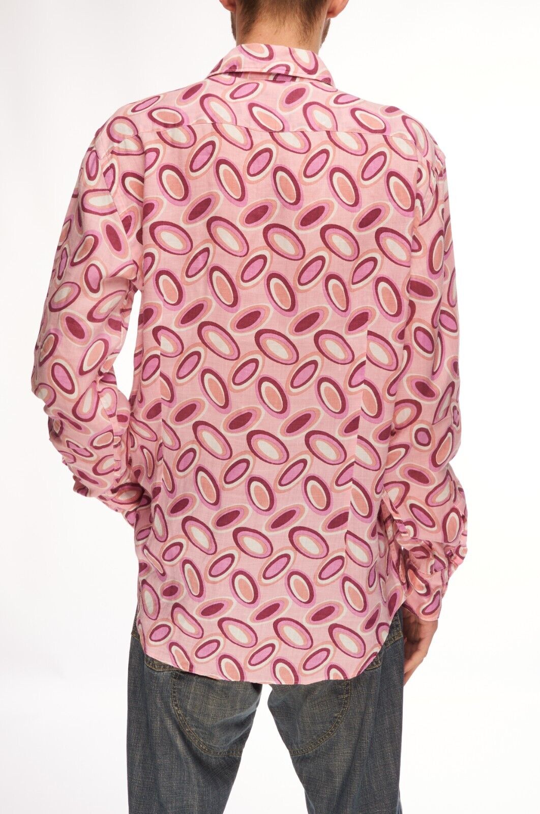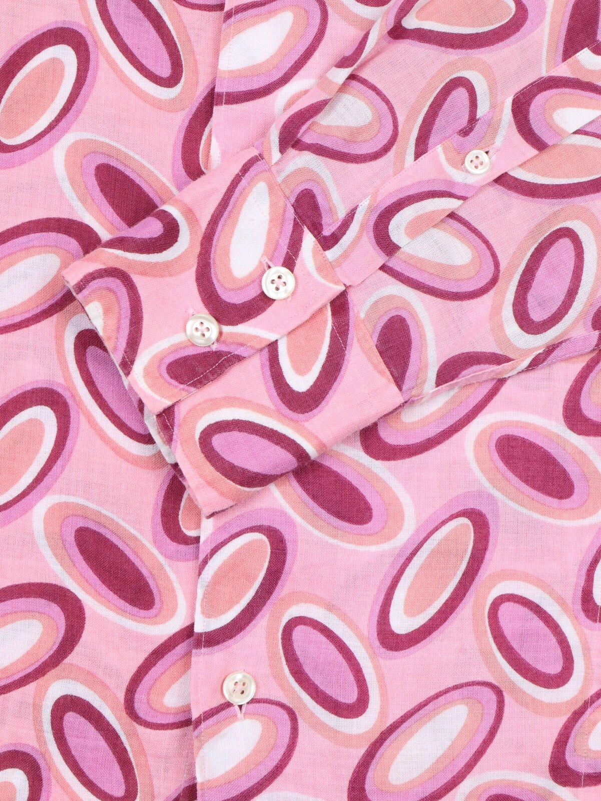 CORNELIANI Italy Shirt Pink Geometric Pattern Ramie Men's Size M