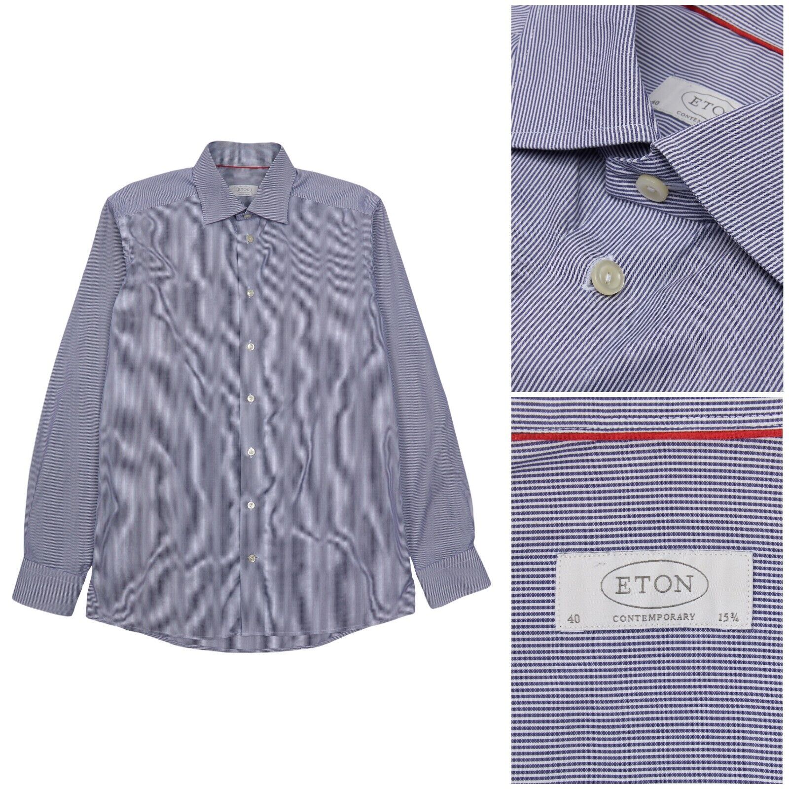 ETON Dress Shirt Blue Striped Cotton Men's Slim Fit Size 40 / 15.5
