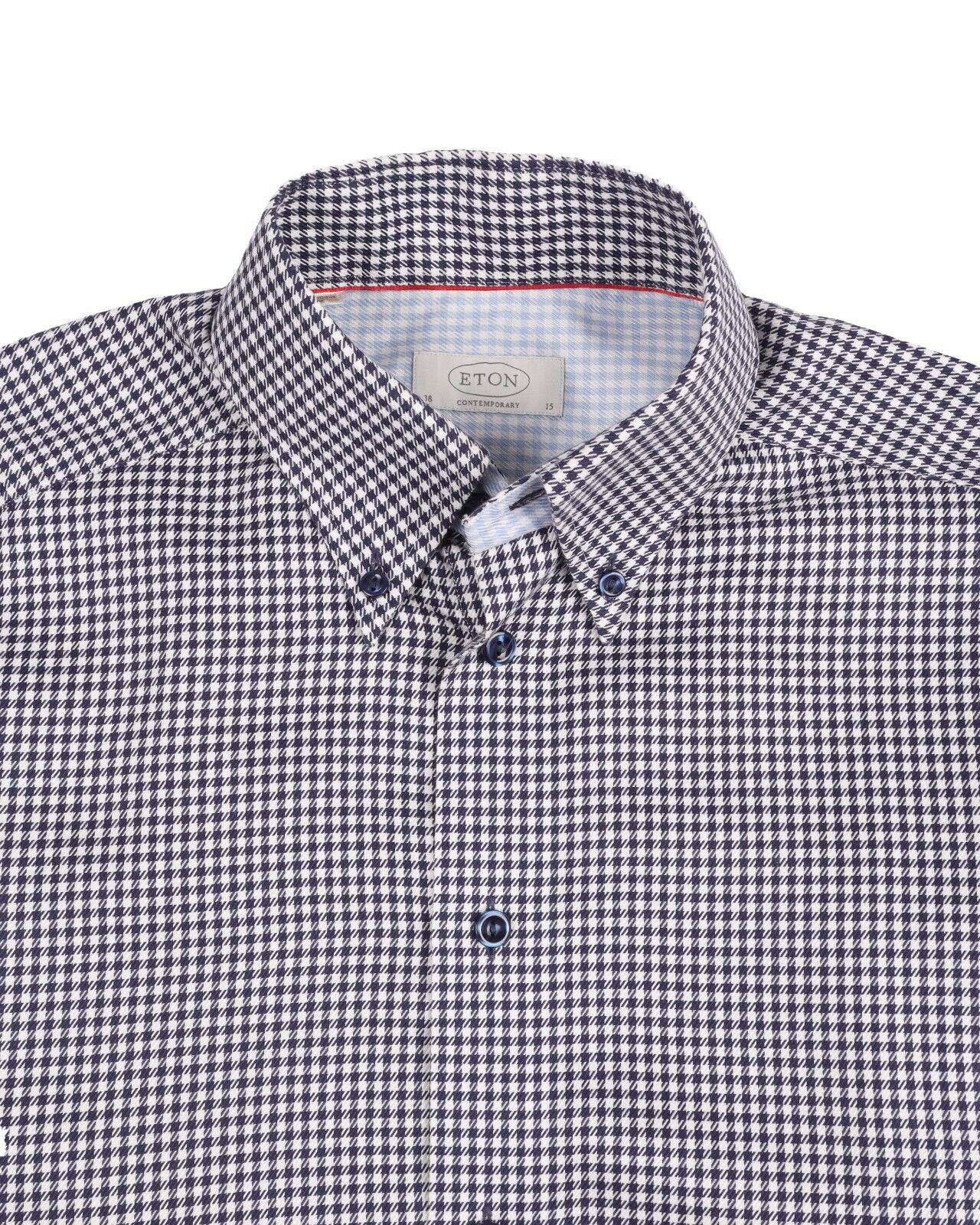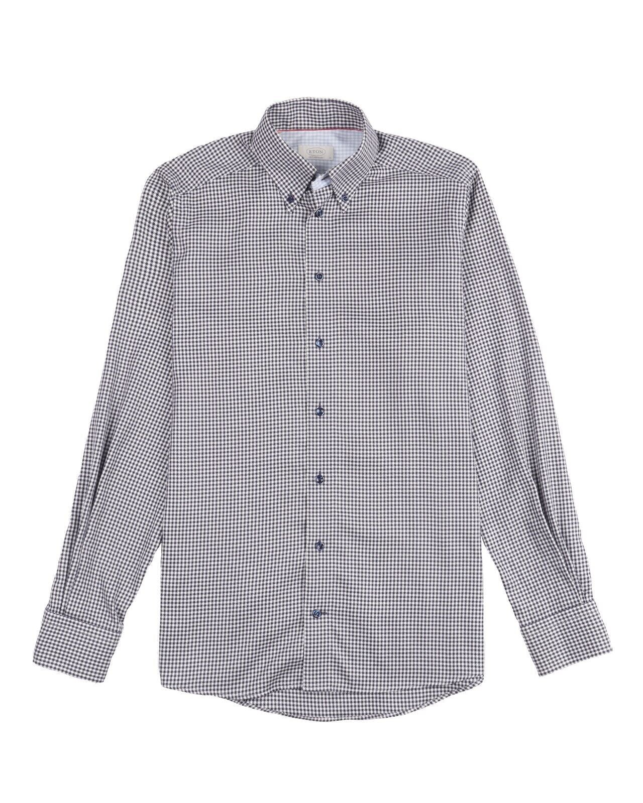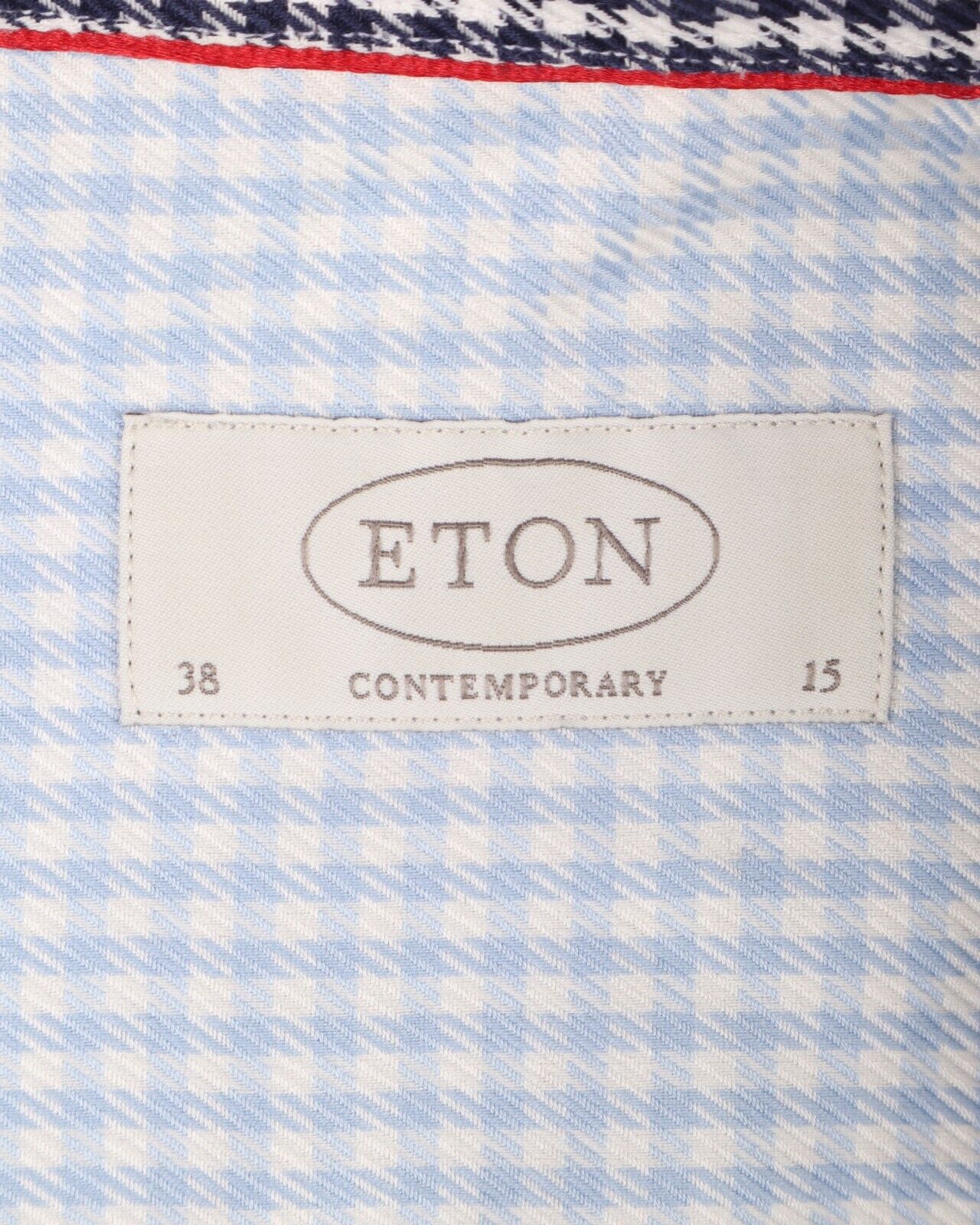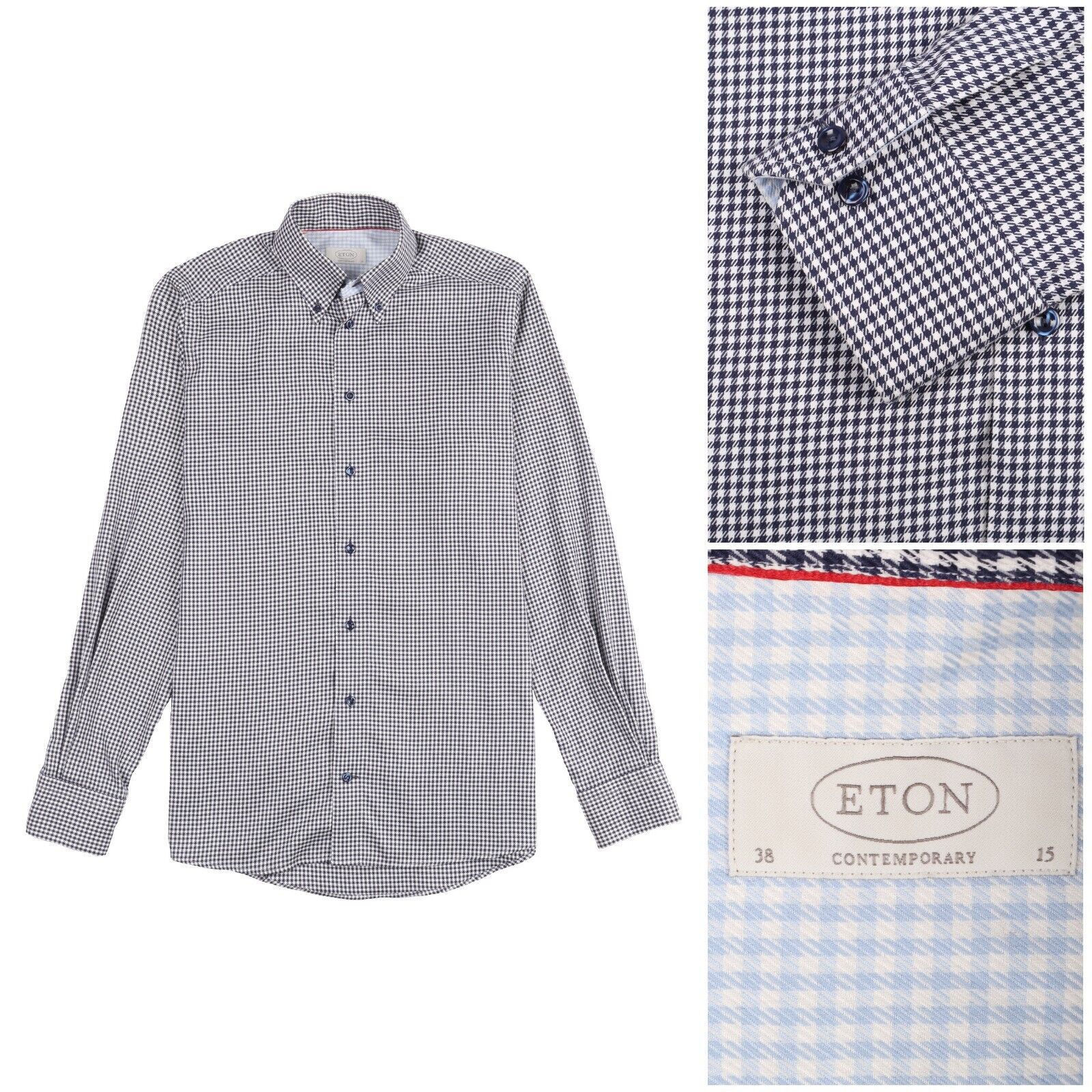 ETON Contemporary Dress Shirt White Navy Check Cotton Men's Button Down Size 38 / 15