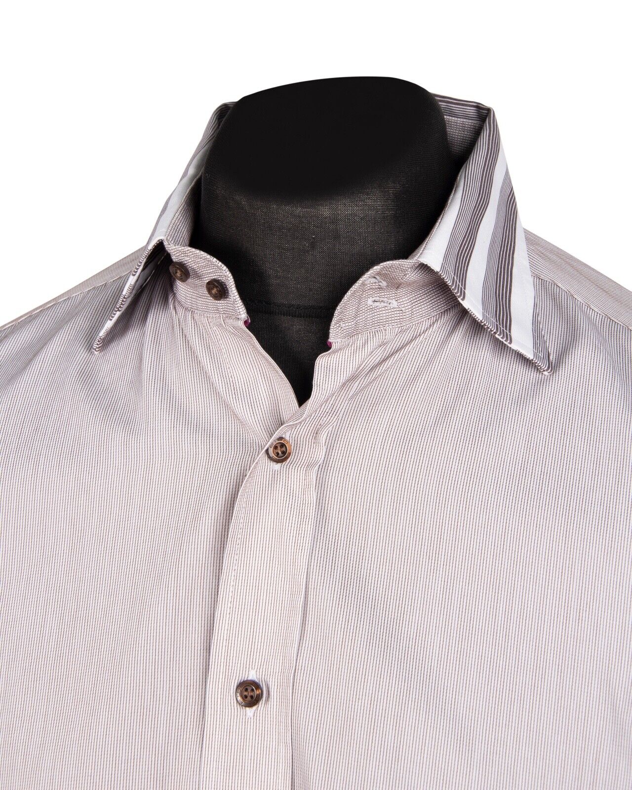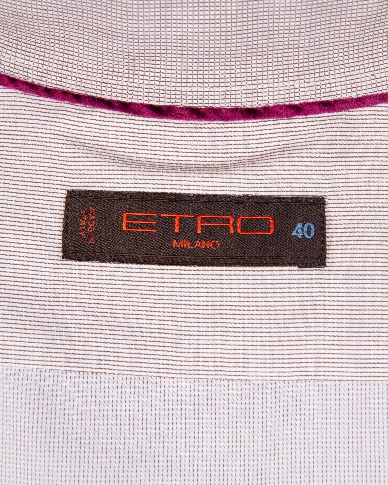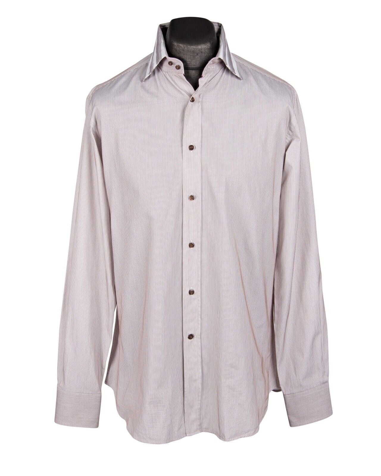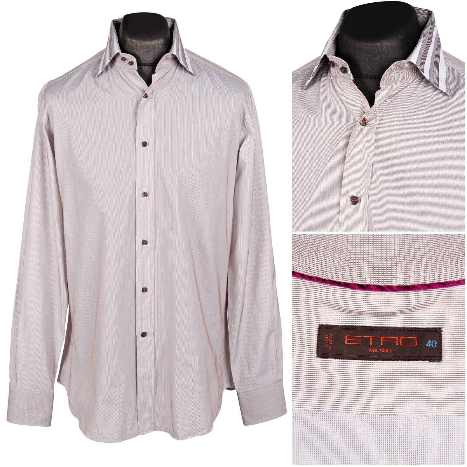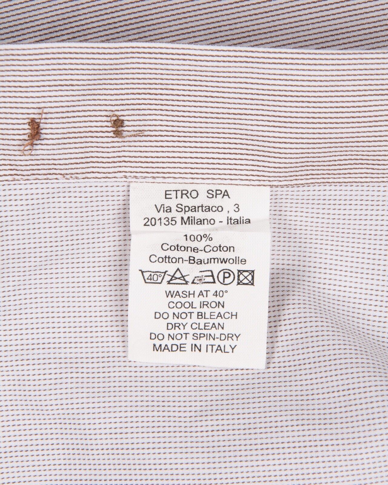 ETRO Milano Shirt White Brown Striped Cotton Men's Size 40