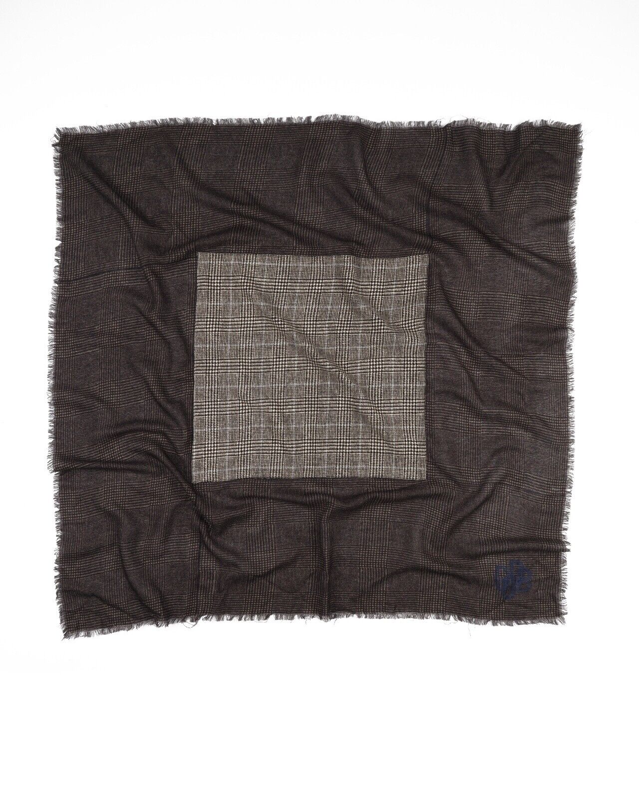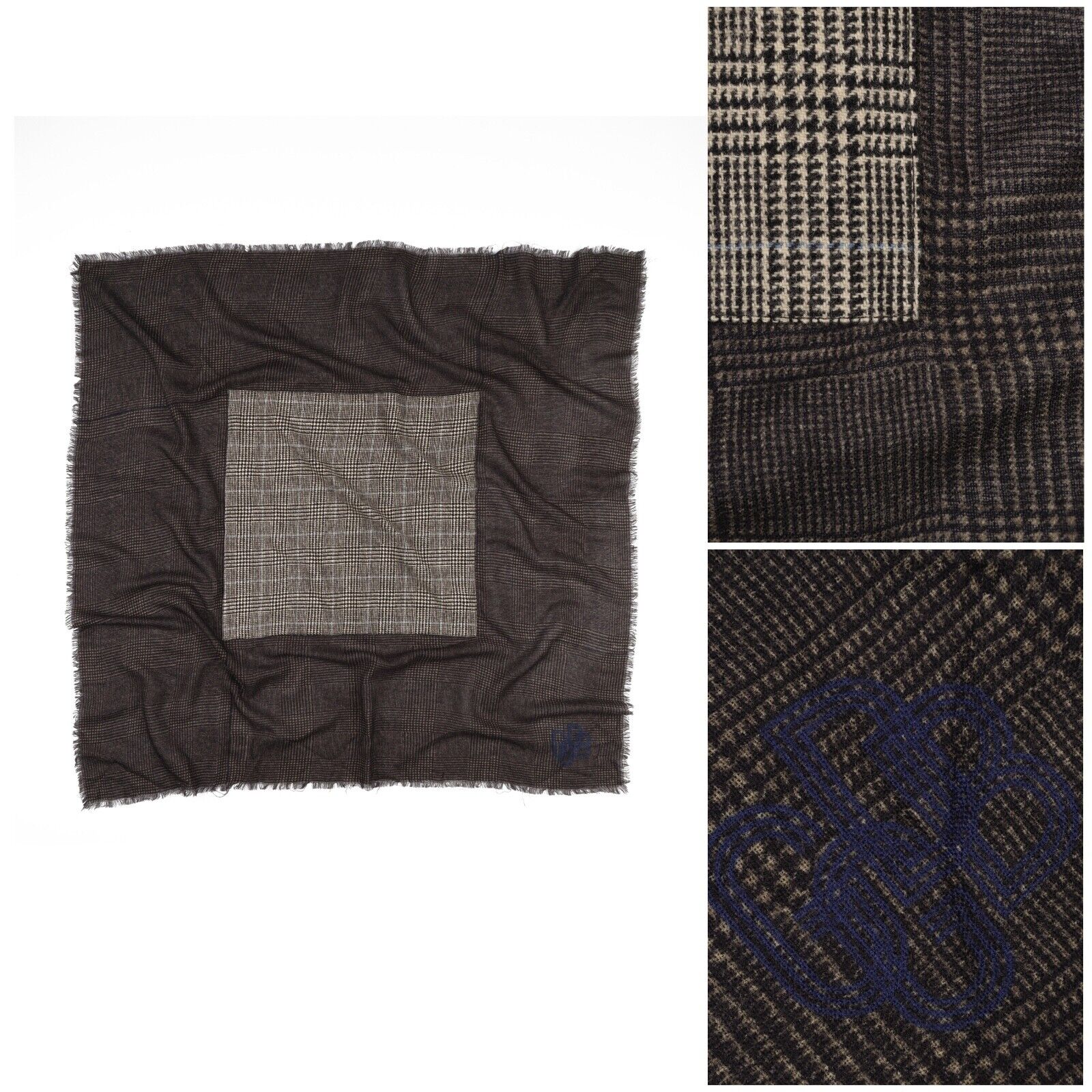 GOLDEN GOOSE GGDB Square Scarf Brown Check Wool Logo Men's