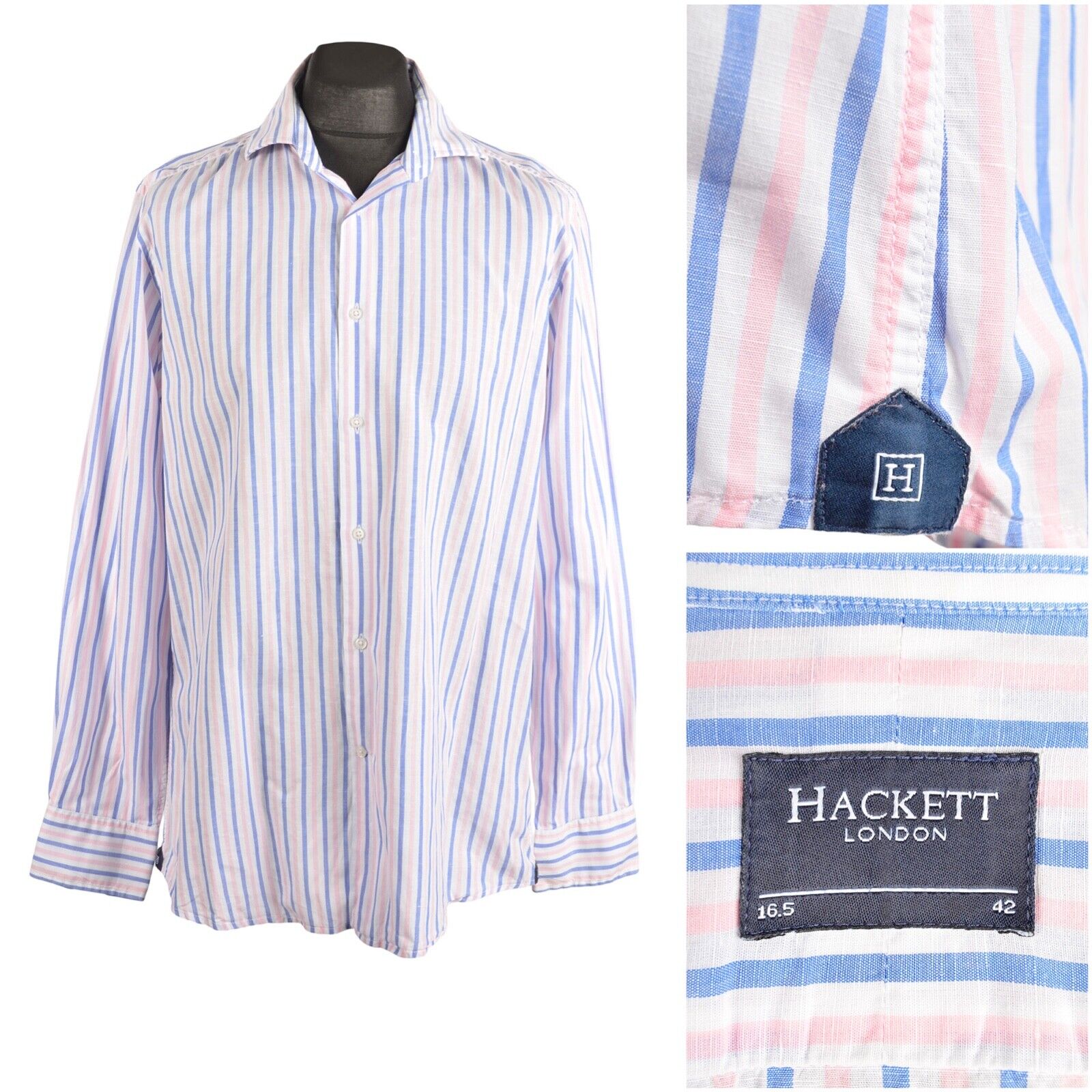 HACKETT London White Striped Men's Cotton Linen Shirt Size 16.5 / 42