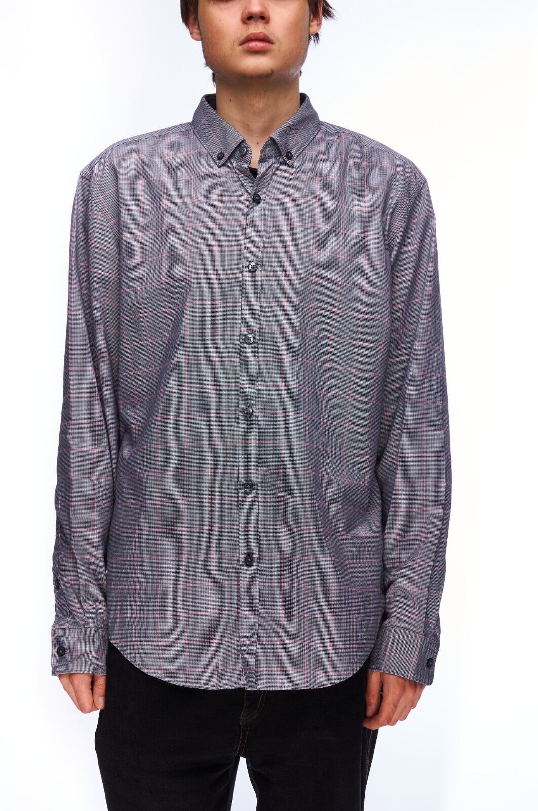 HUGO BOSS Shirt Gray Check Cotton Men's Button Down Size XL