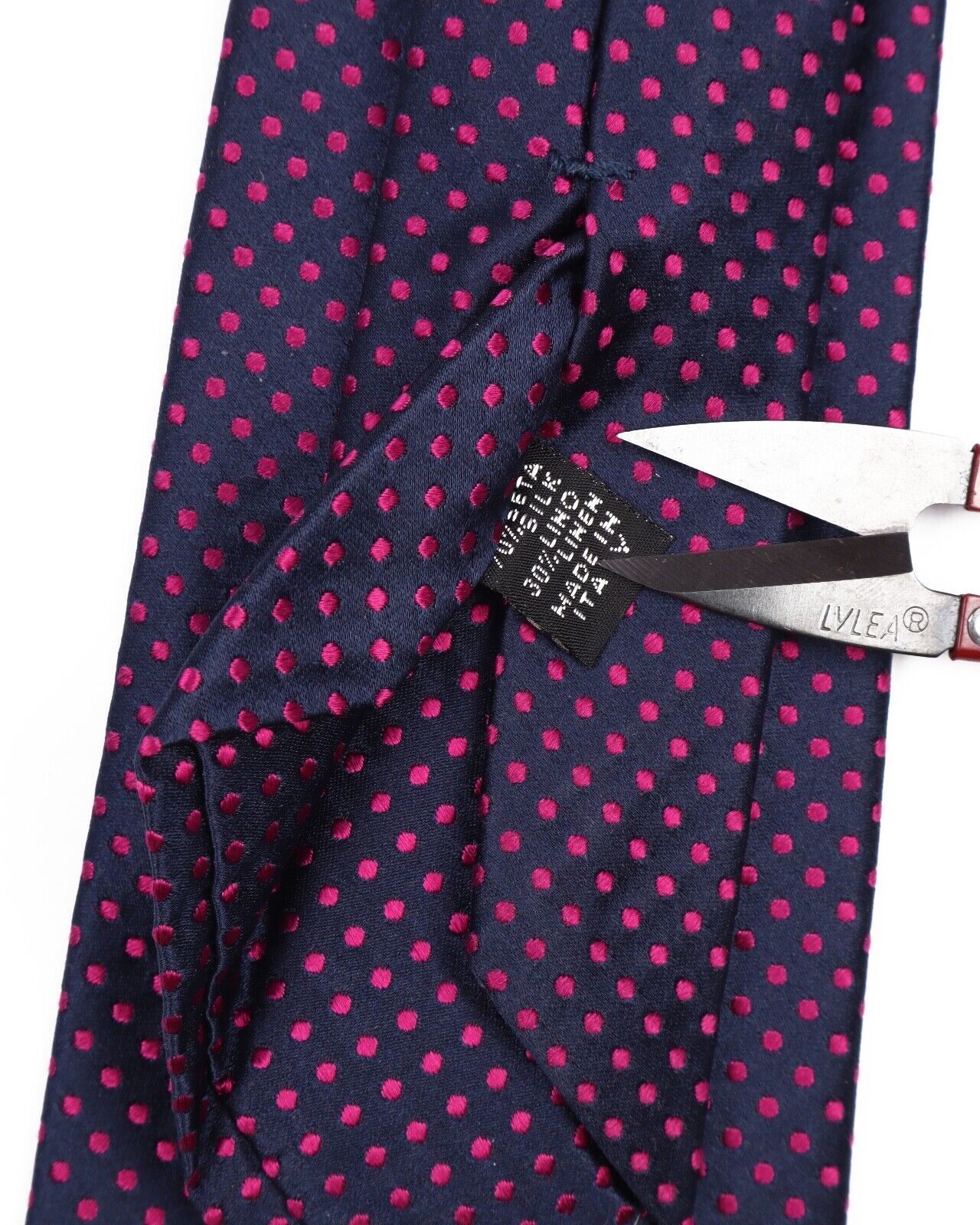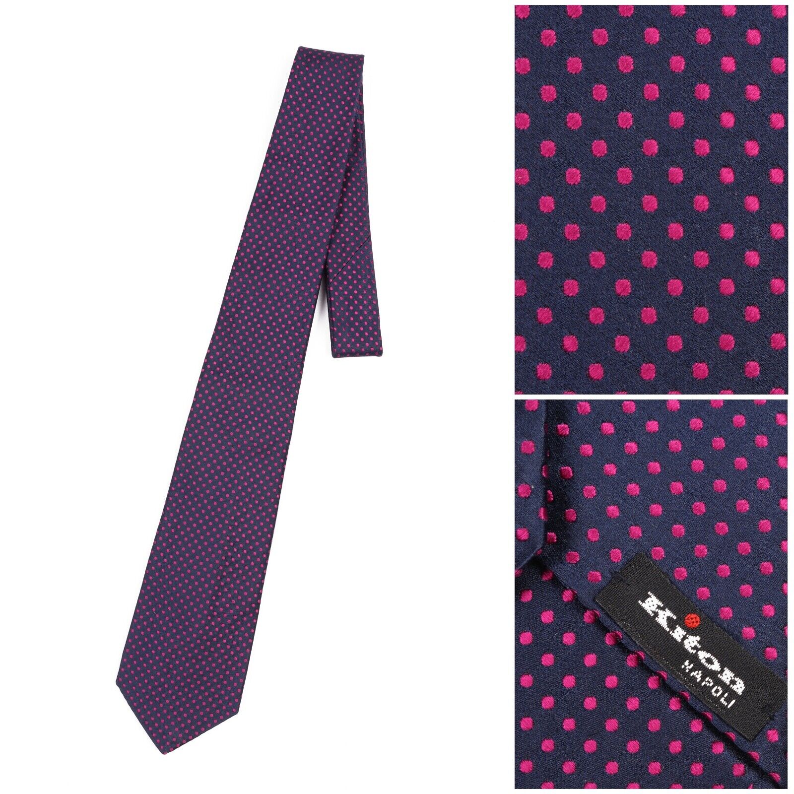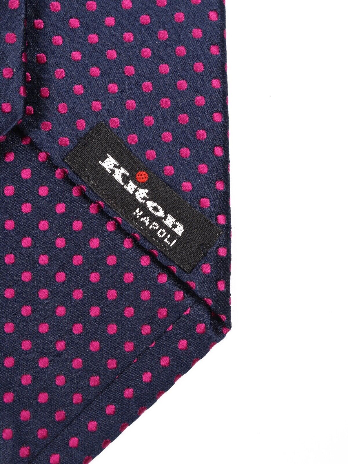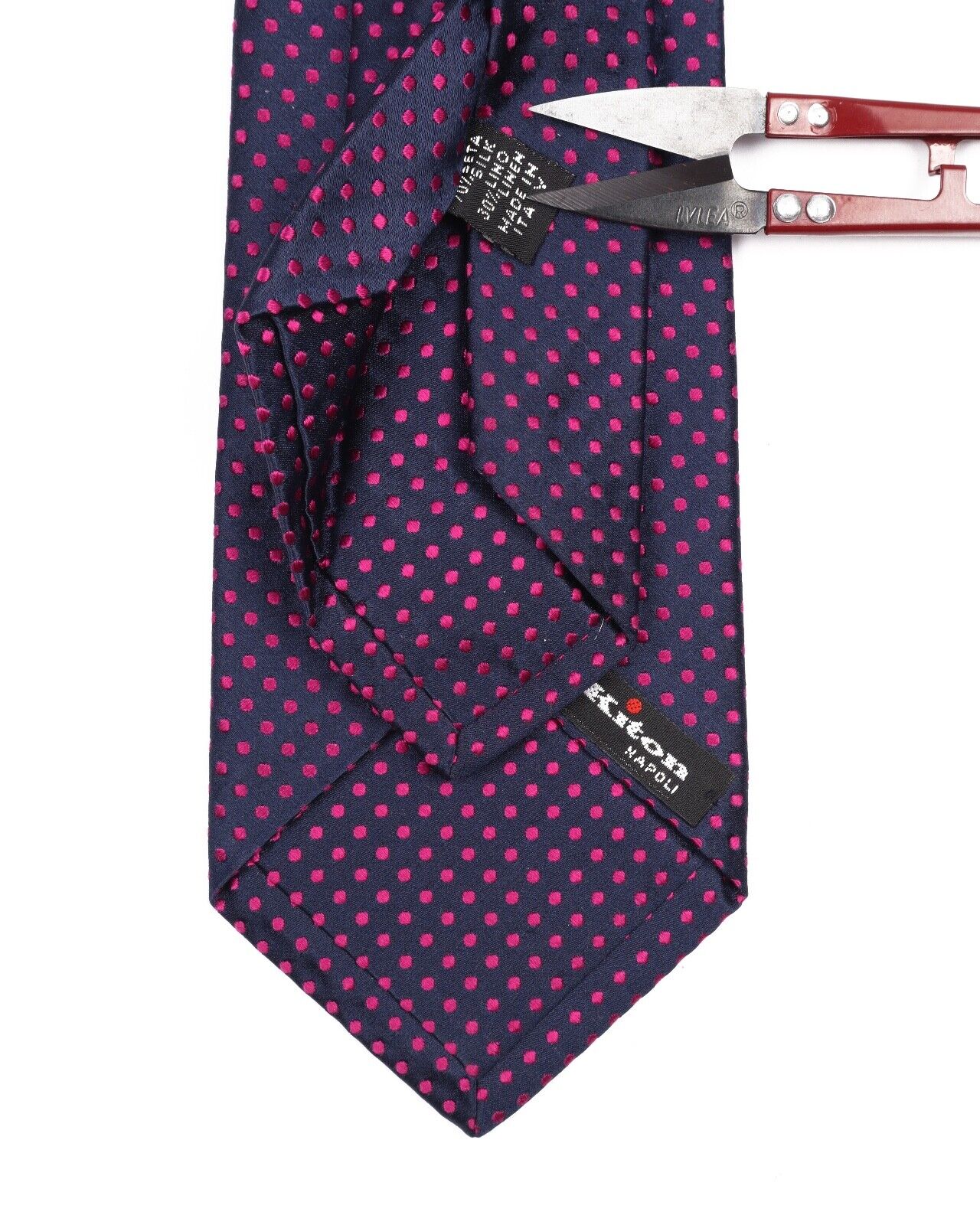 KITON NAPOLI Tie Navy Blue Silk Polka Dot Men's 7 Fold Necktie