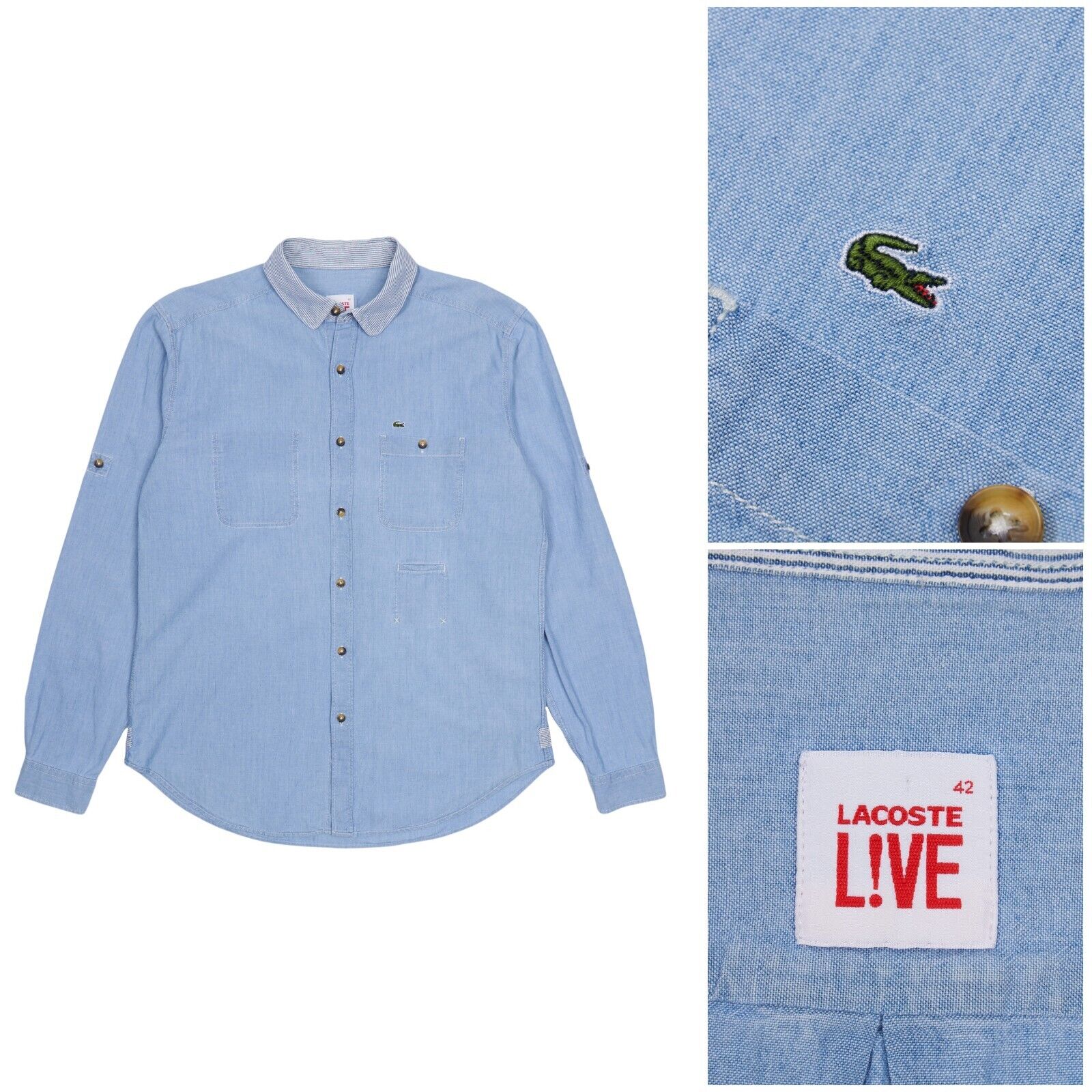 LACOSTE LIVE! Shirt Blue Chambray Cotton Men's Longsleeve Sleeve Size 42