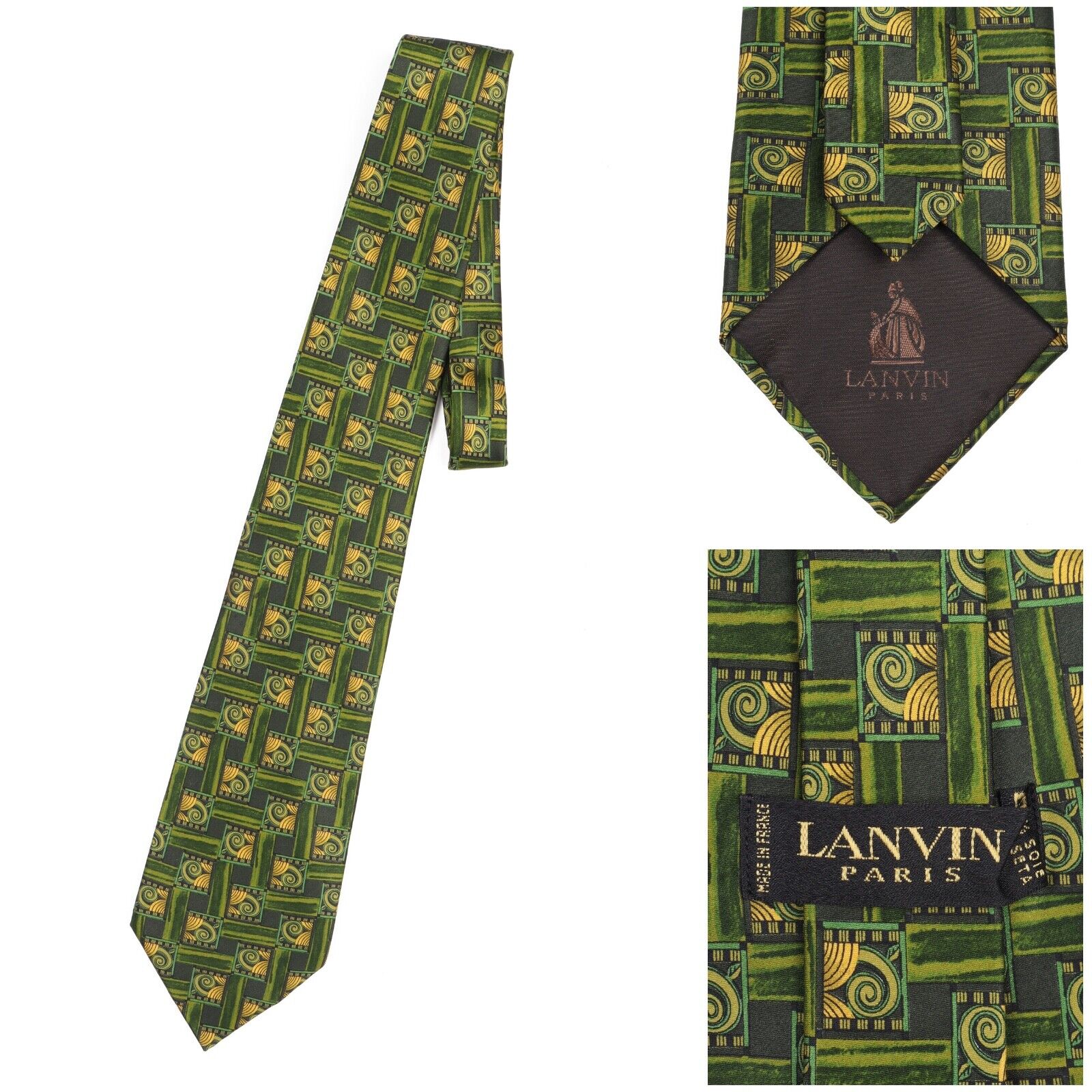 LANVIN Tie Green Pattern Silk Men's Woven Necktie