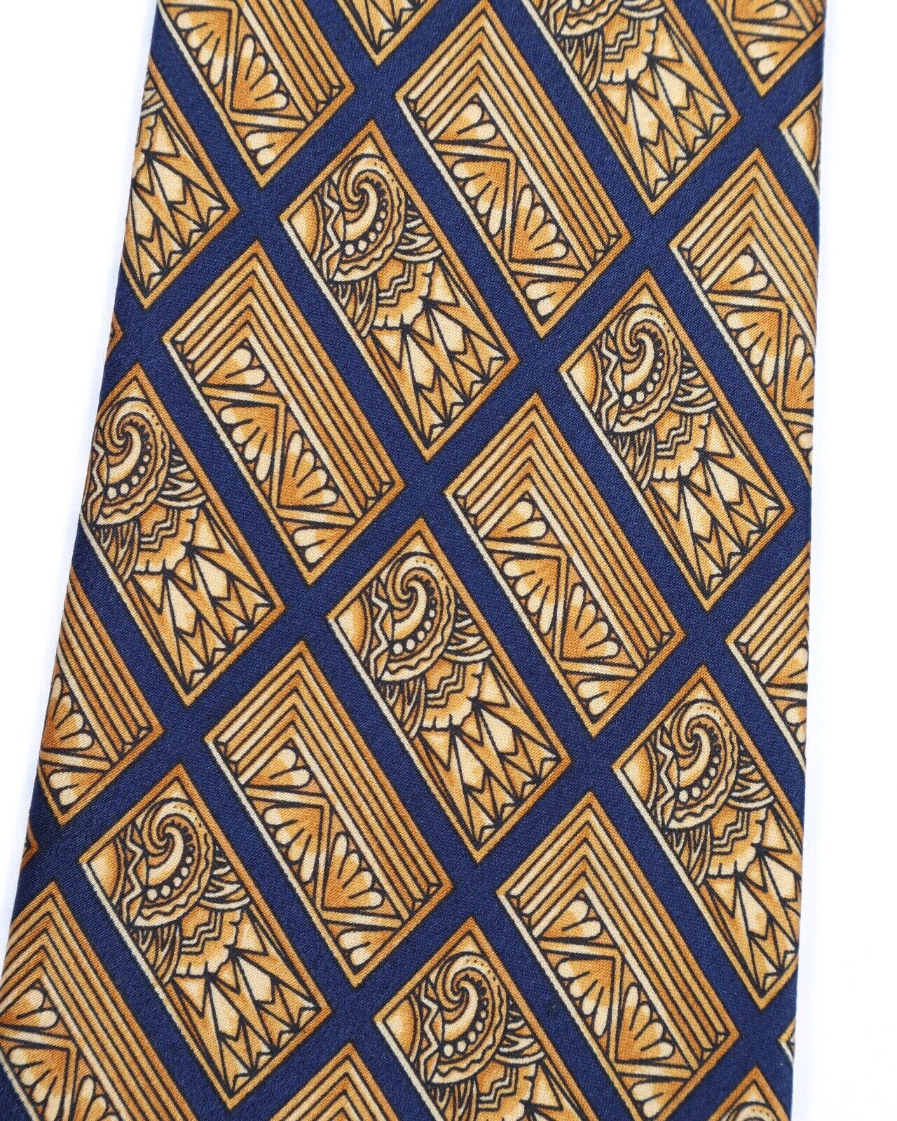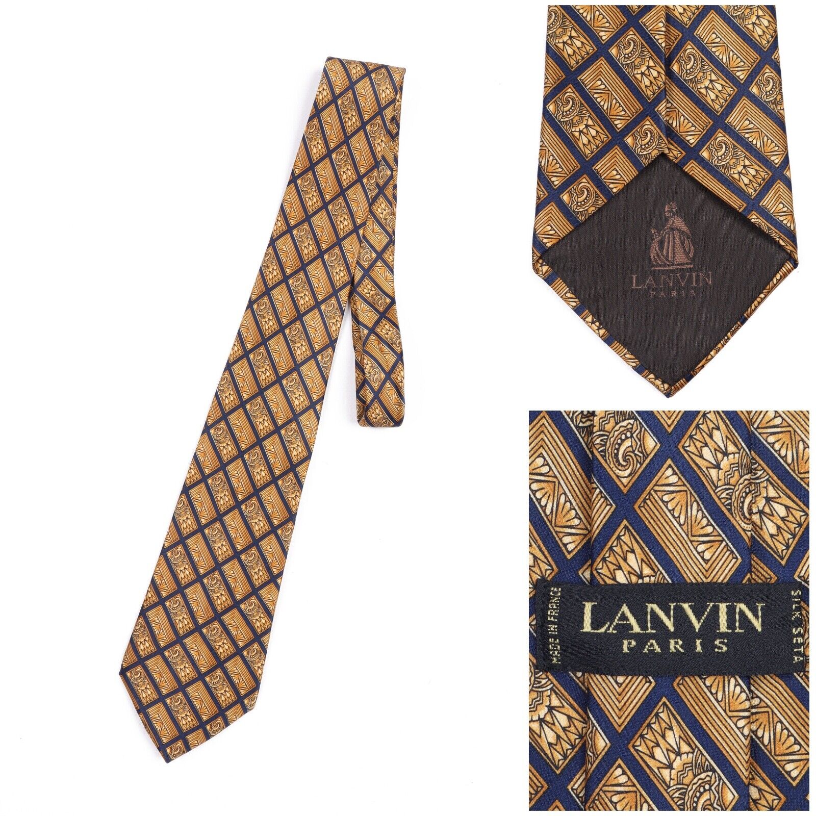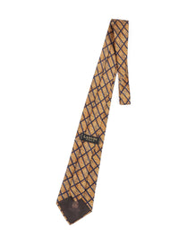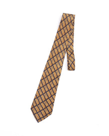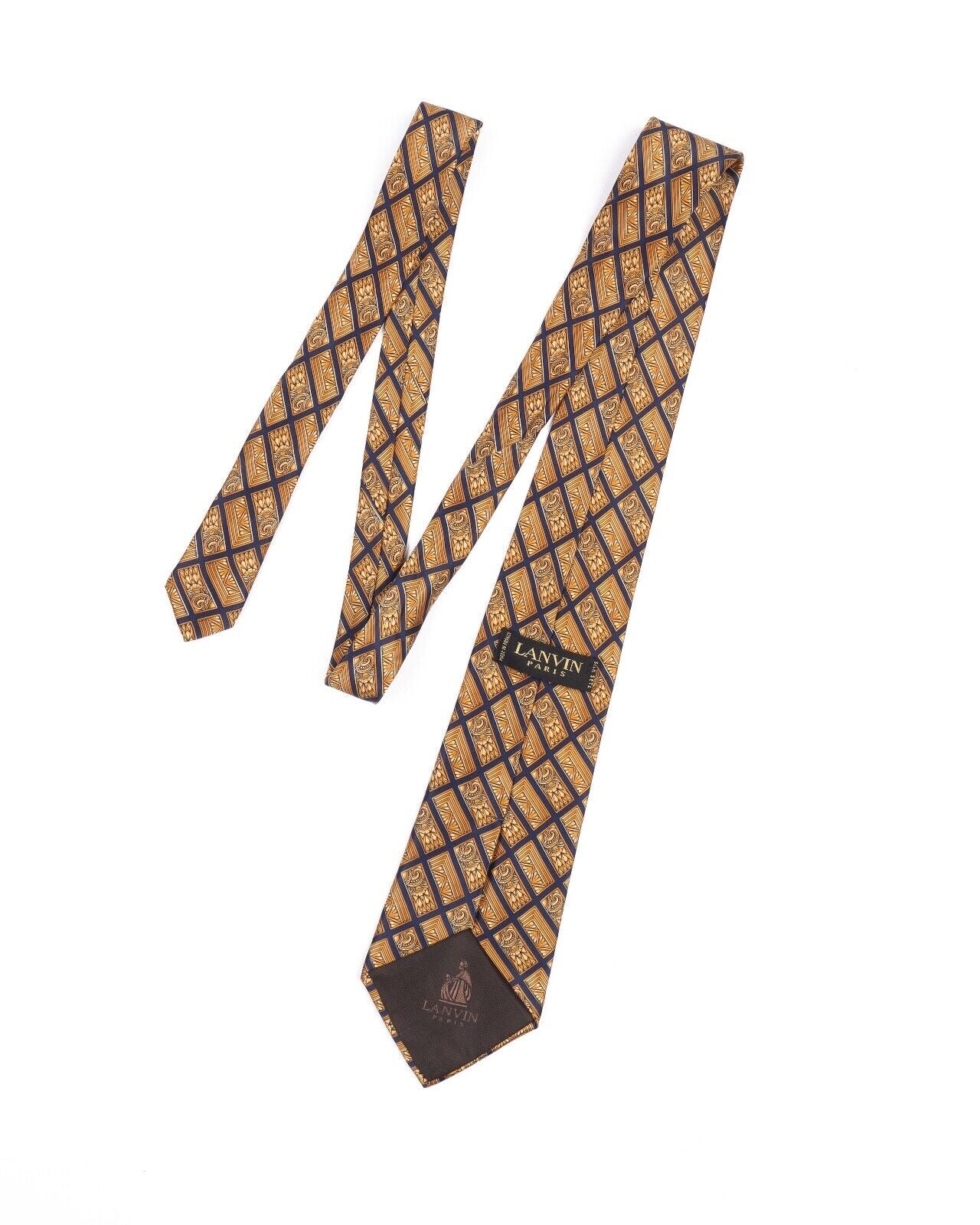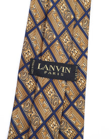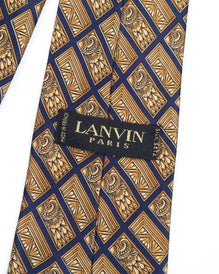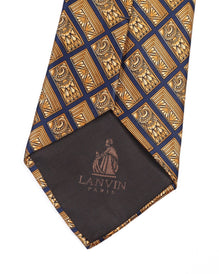 LANVIN Tie Yellow Check Floral Print Silk Men's Woven Necktie