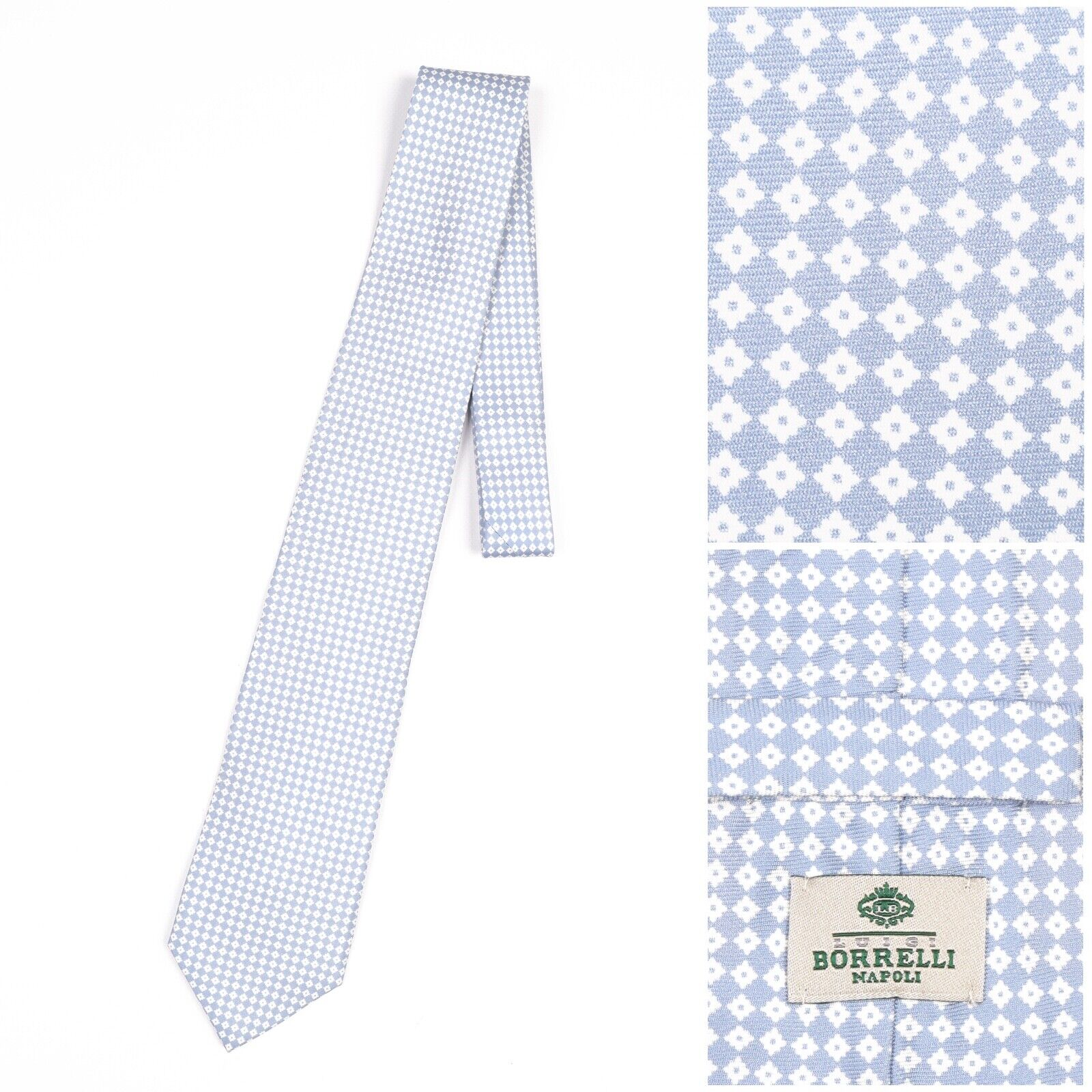 LUIGI BORRELLI Napoli Tie Blue Diamond Silk Men's Woven Necktie