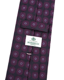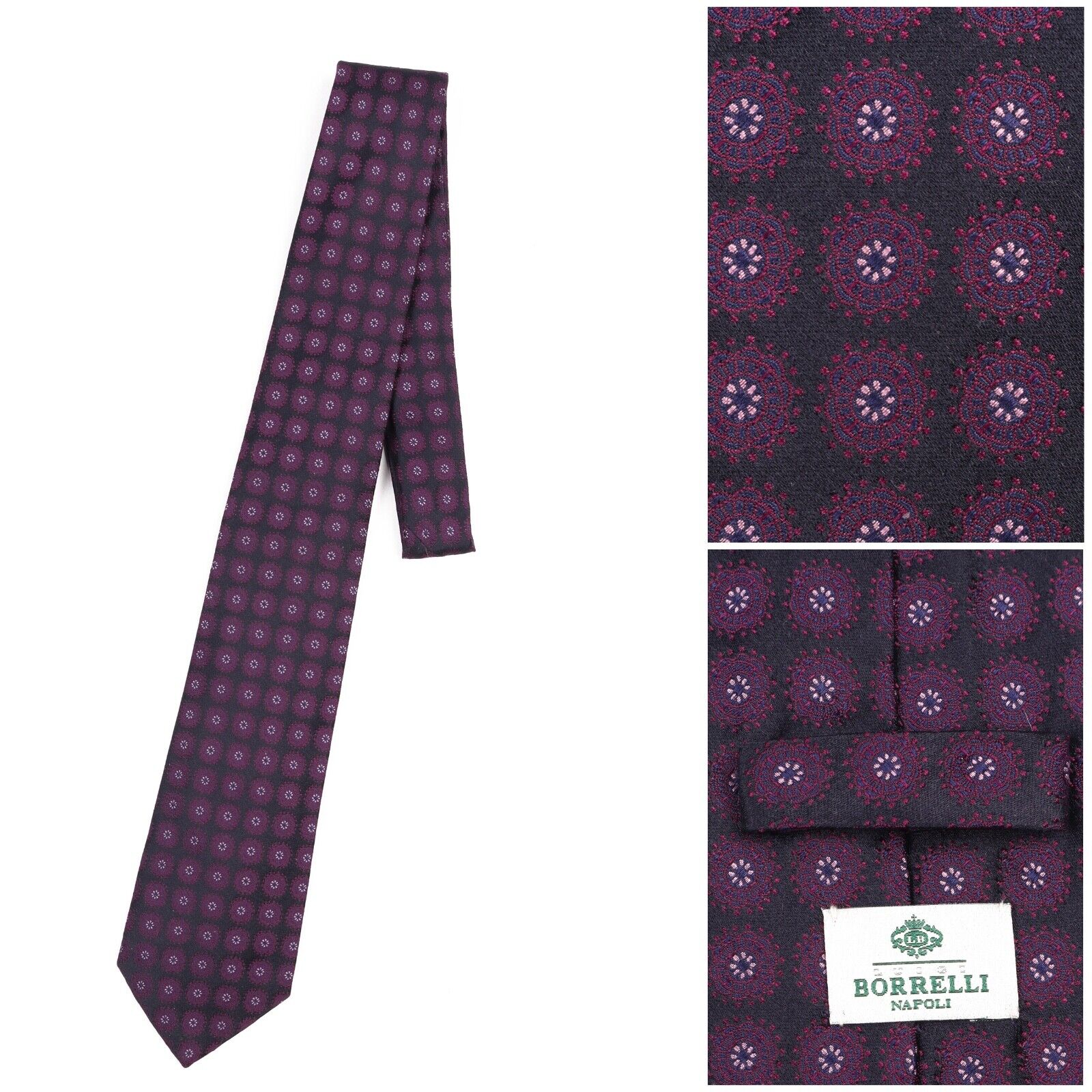 LUIGI BORRELLI Napoli Tie Bordeaux Red Floral Silk Men's Woven Necktie