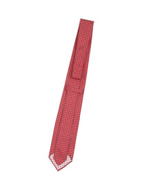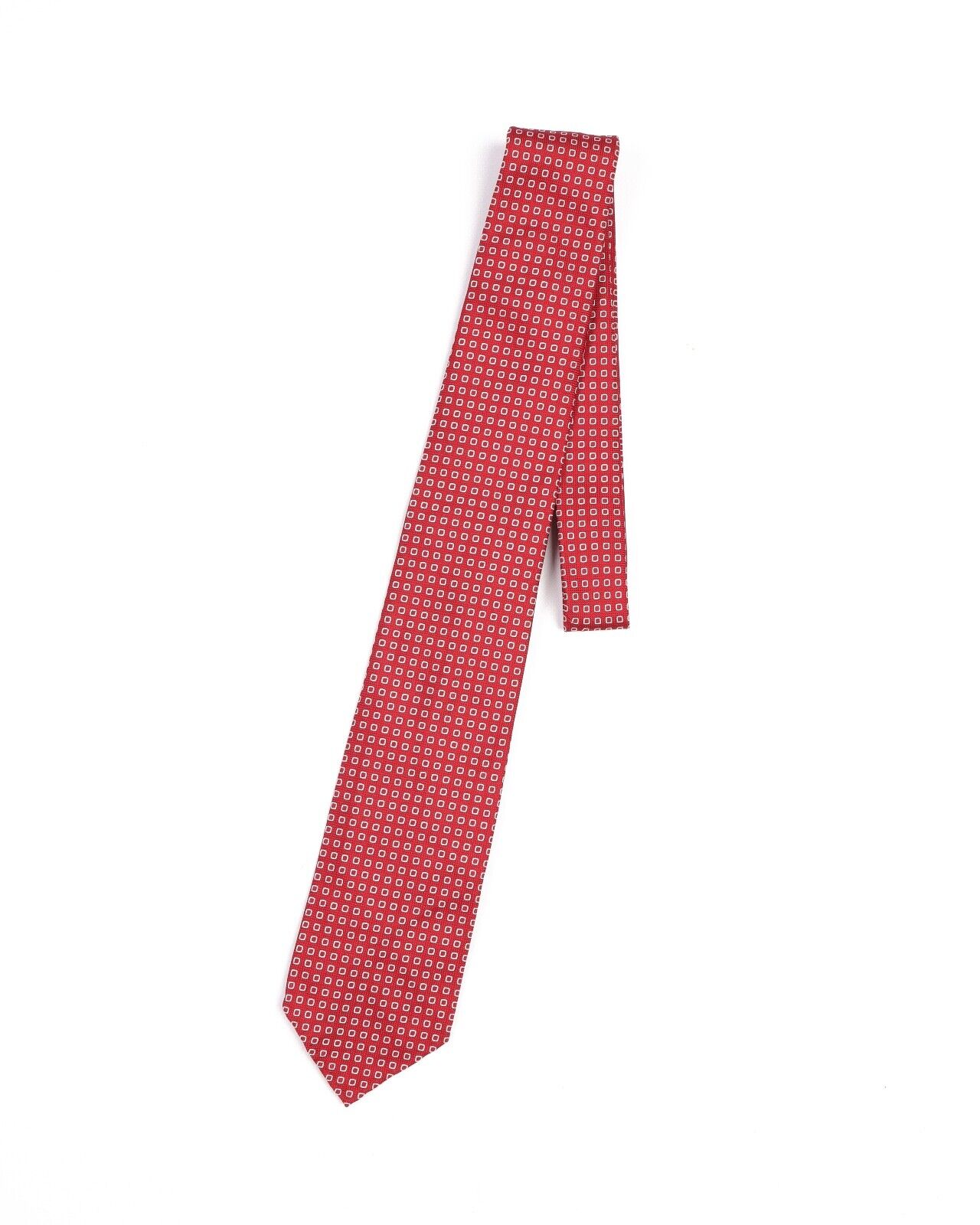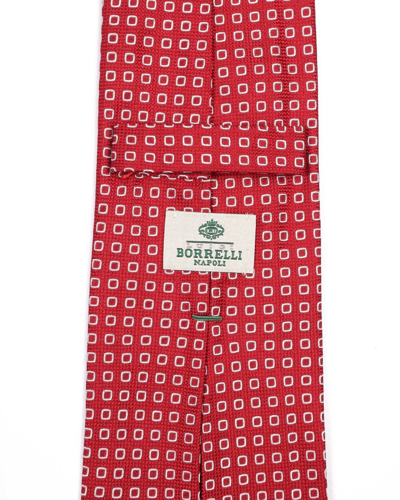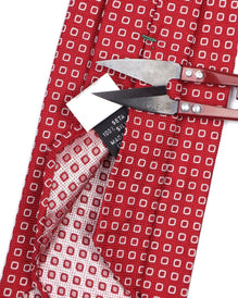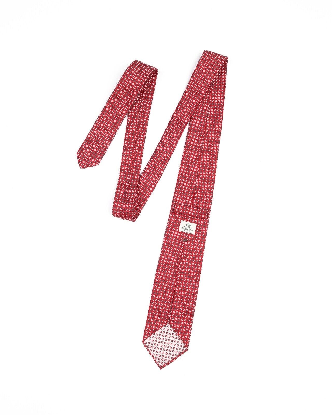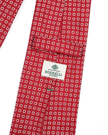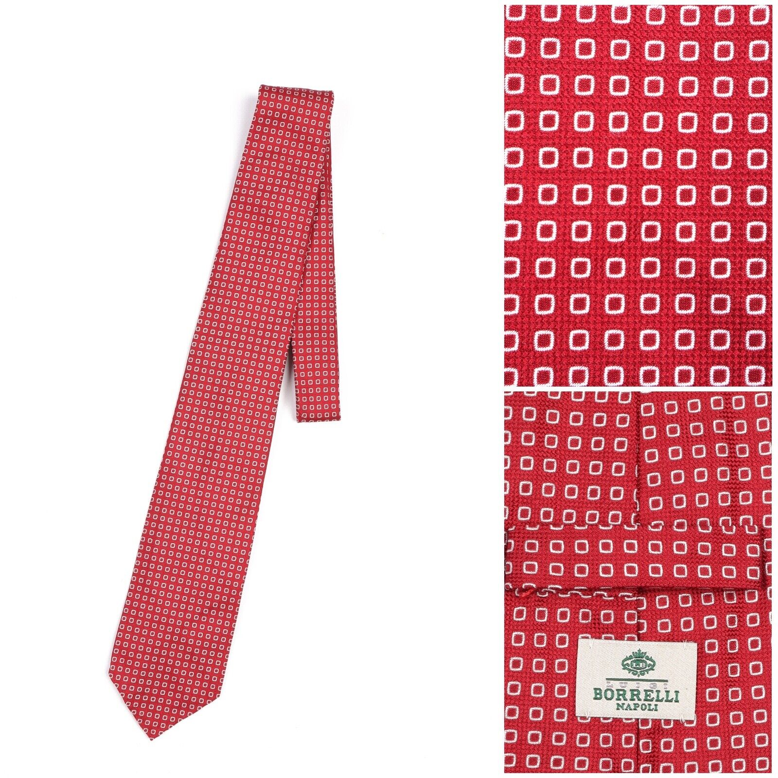 LUIGI BORRELLI Napoli Tie Red White Squares Silk Men's Woven Necktie