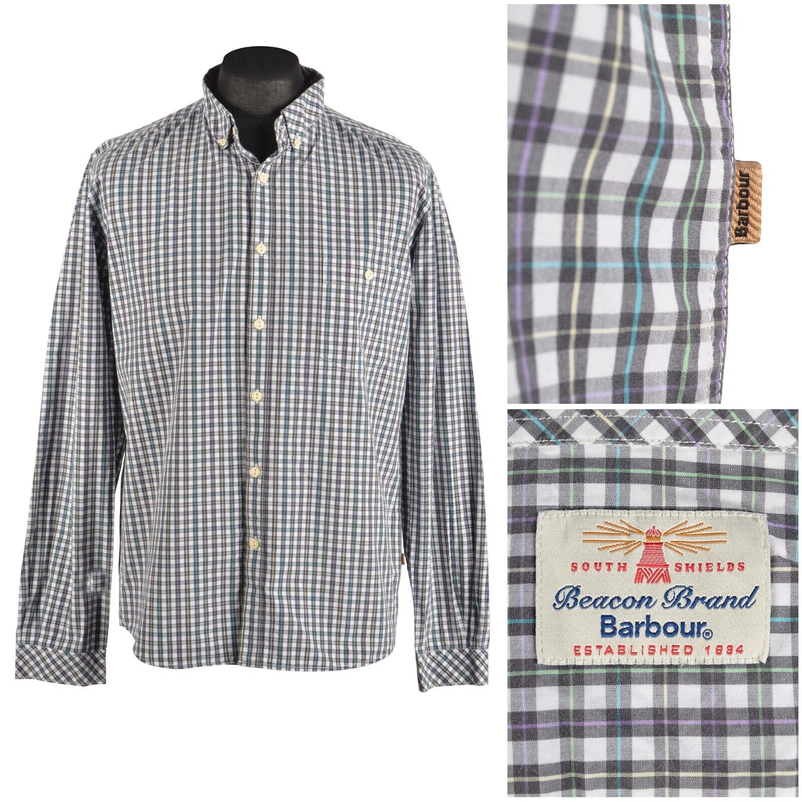 Men's BARBOUR Gray Check Cotton LS Shirt Size L