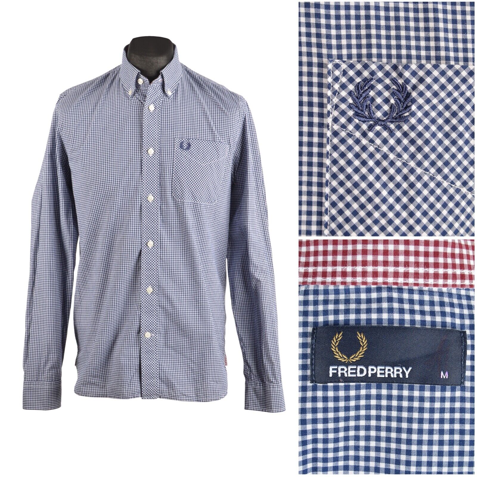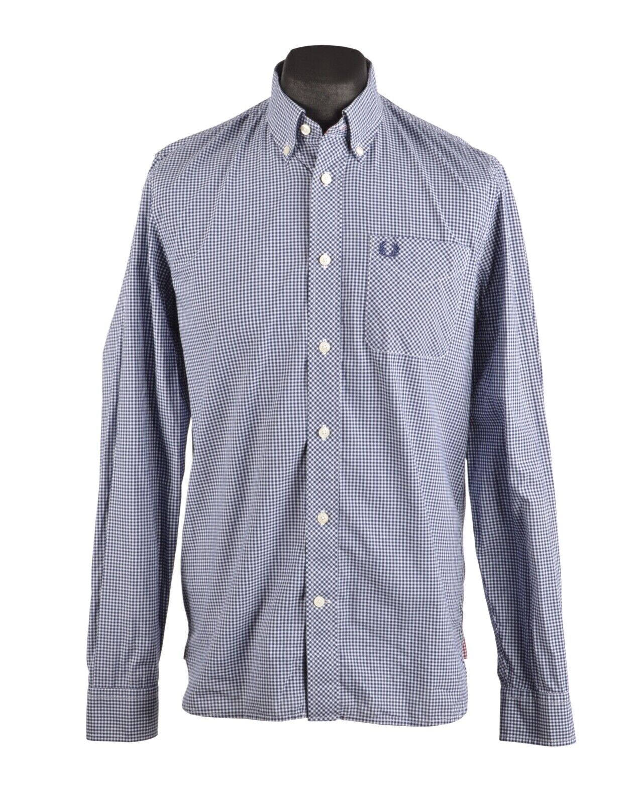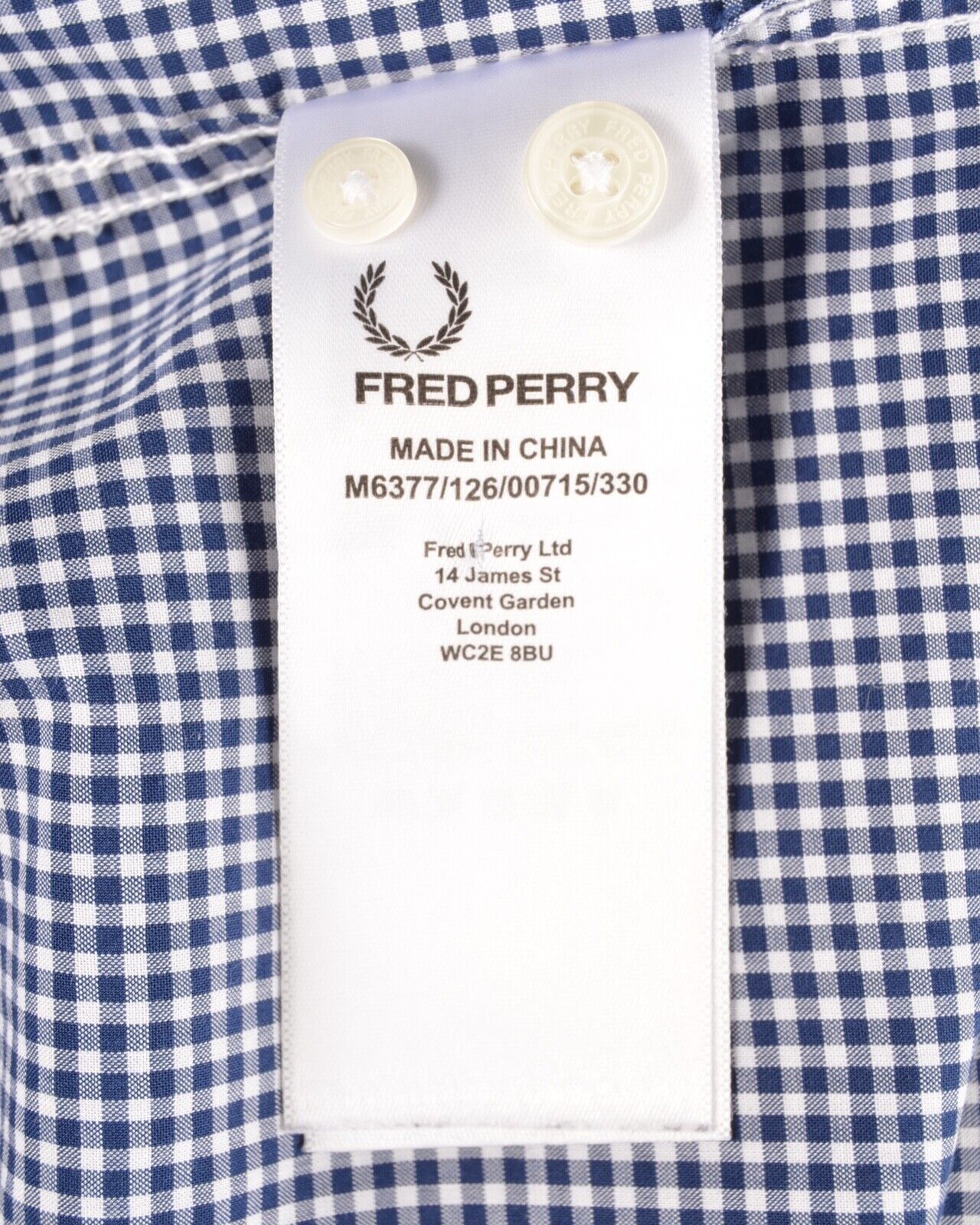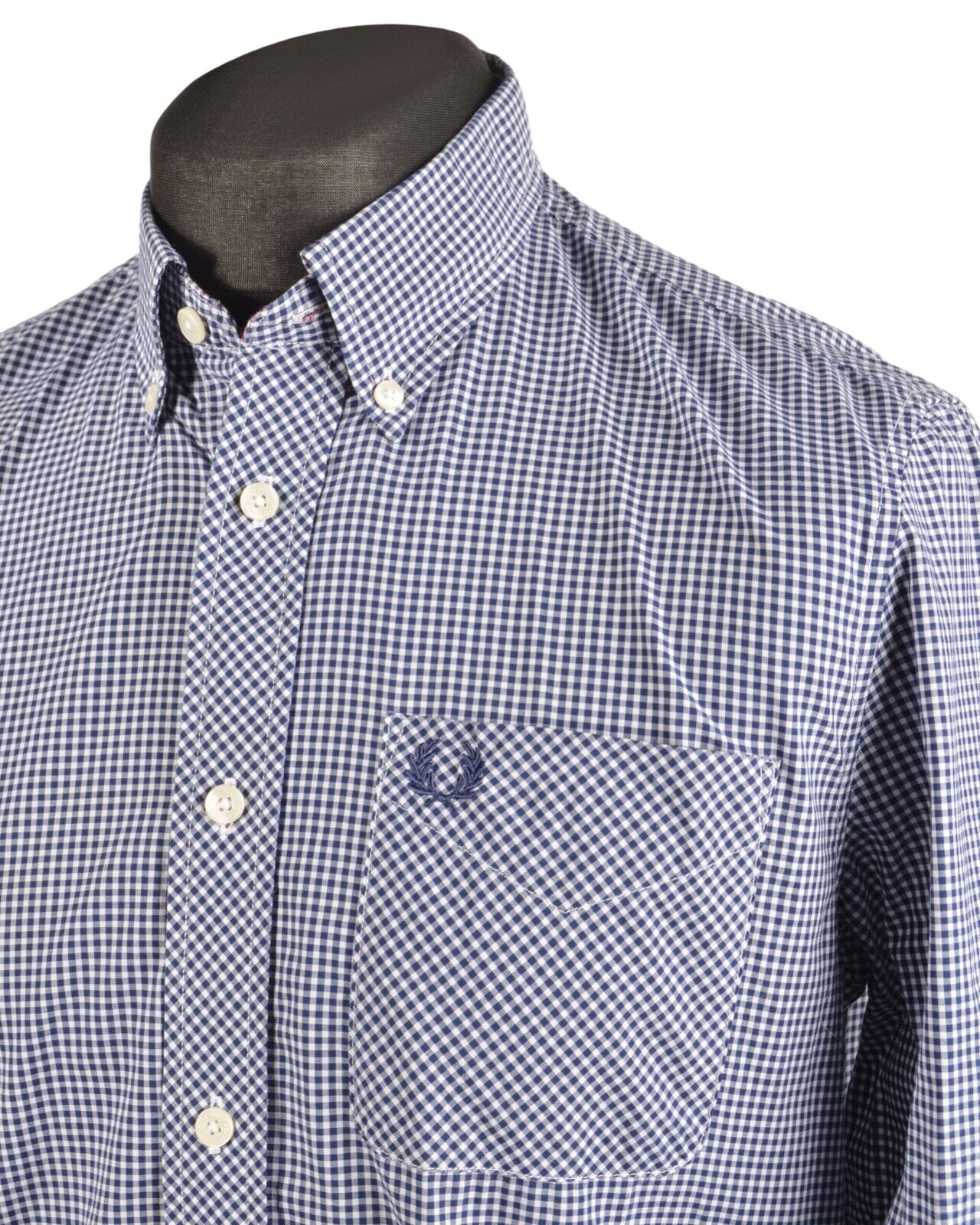 Men's FRED PERRY Blue Gingham Check Cotton Shirt Size M