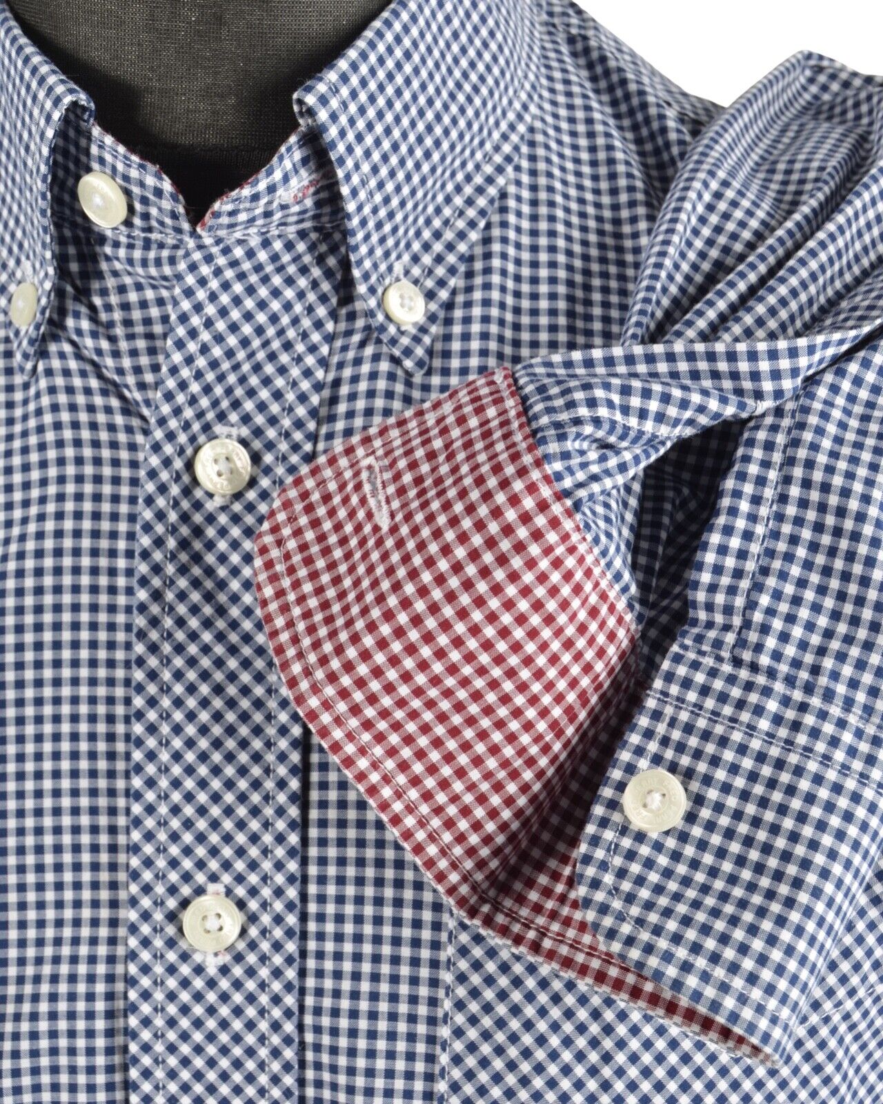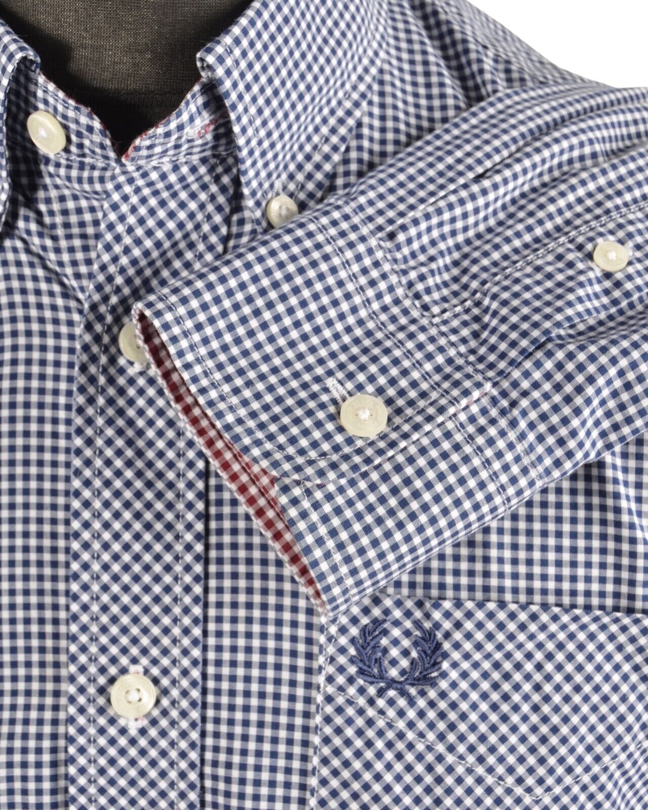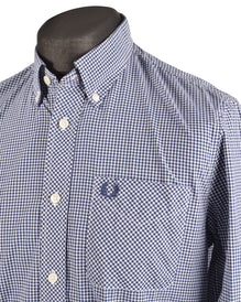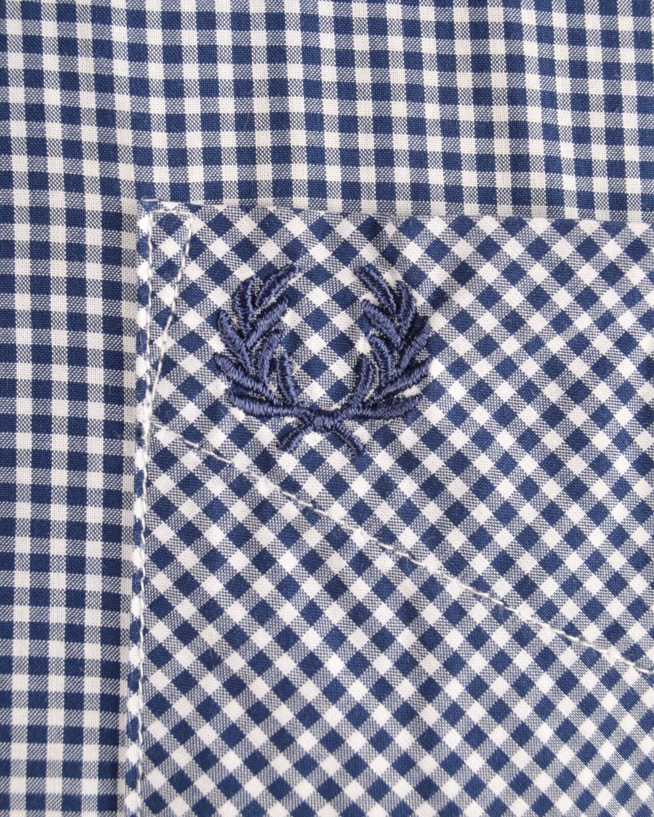 Men's FRED PERRY Blue Gingham Check Cotton Shirt Size M