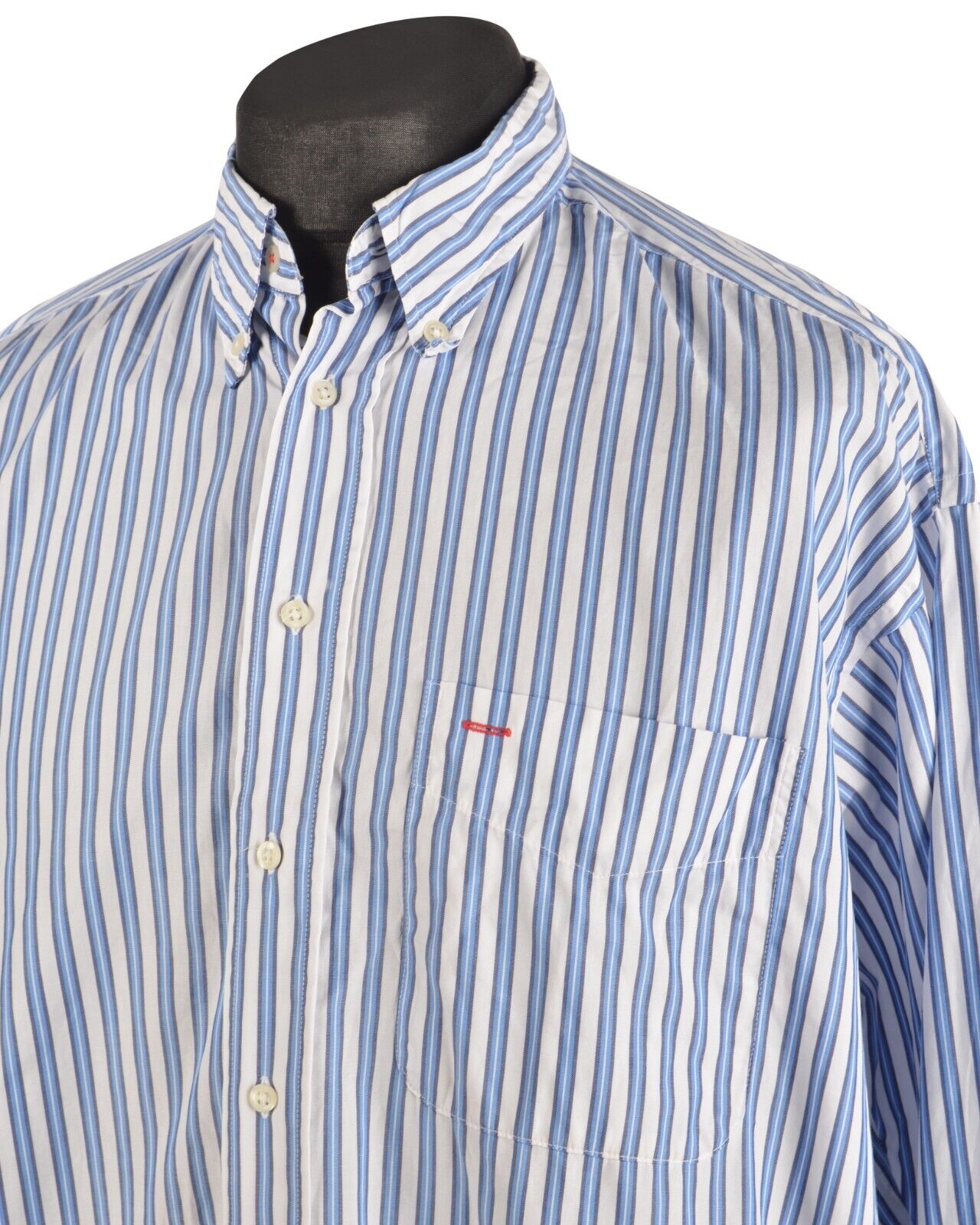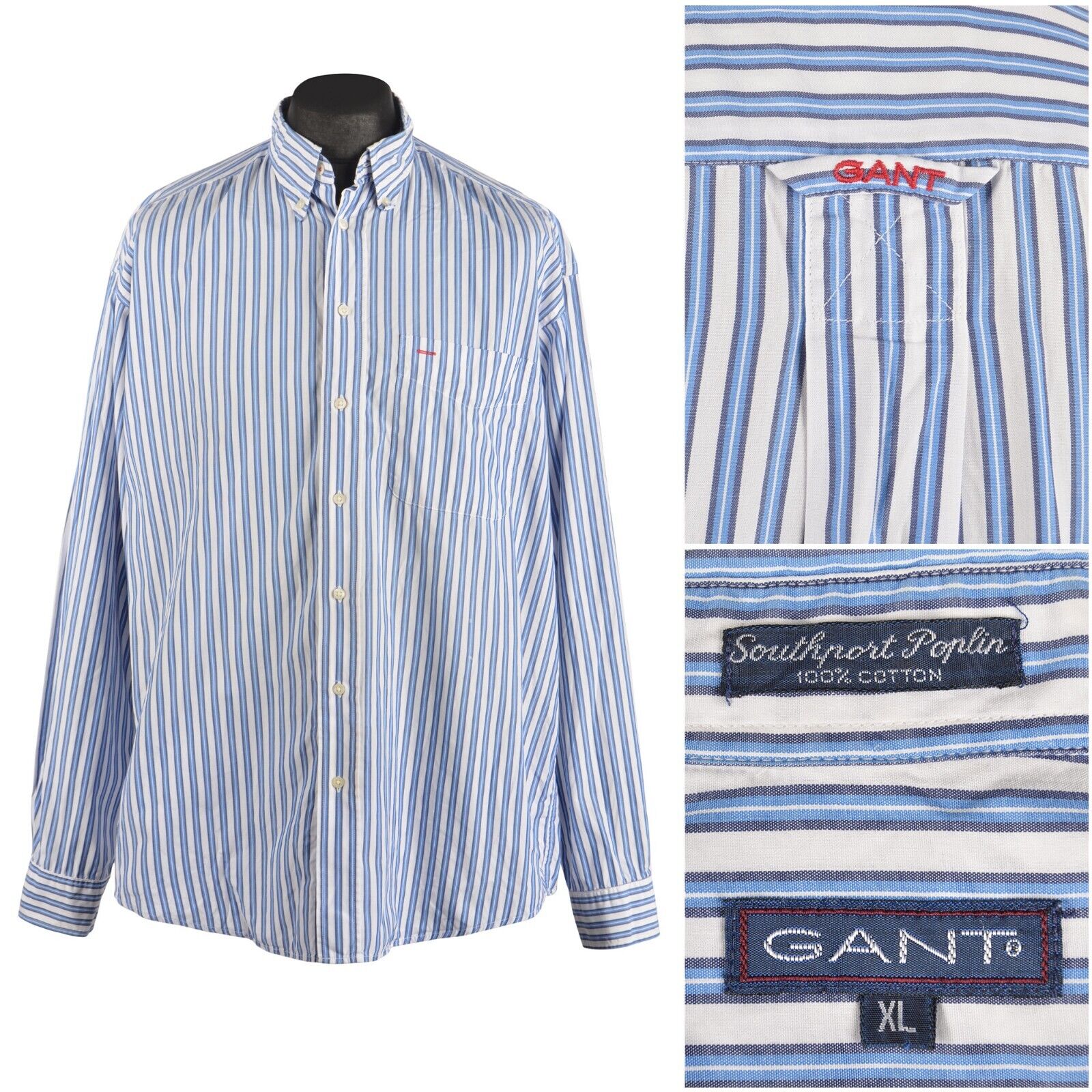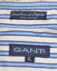 Men's GANT Blue Striped Cotton LS Southport Poplin Shirt Size XL