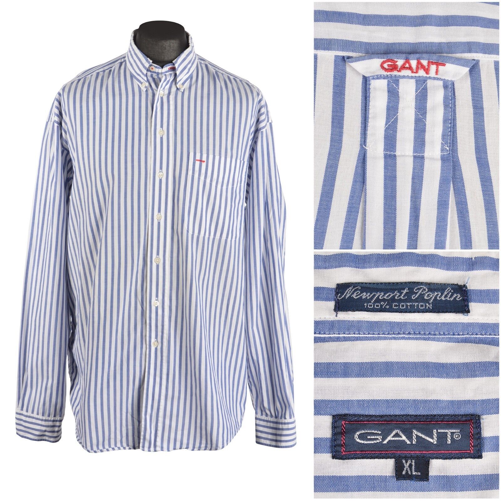 Men's Vintage GANT Blue Striped Cotton LS Southport Poplin Shirt Size XL