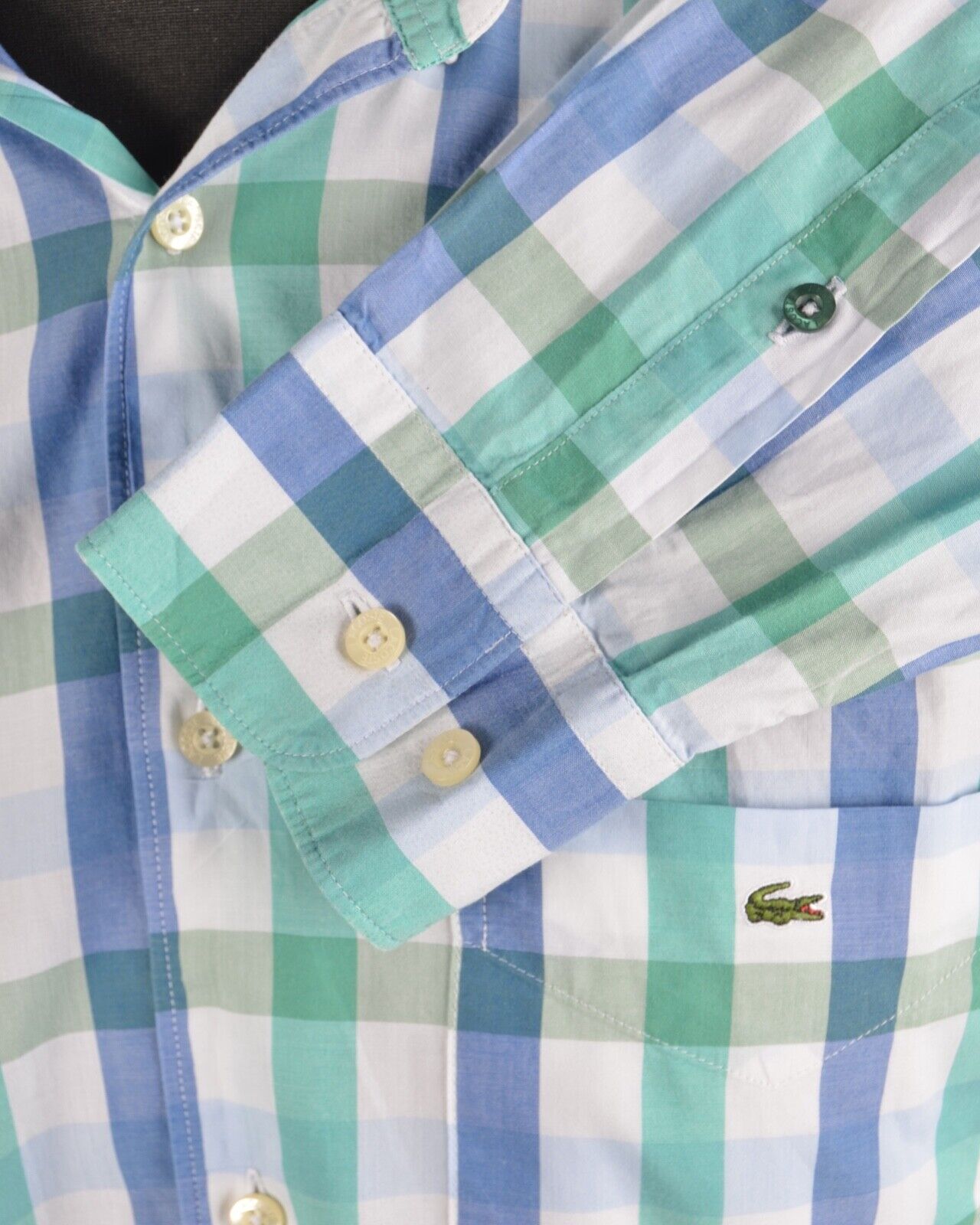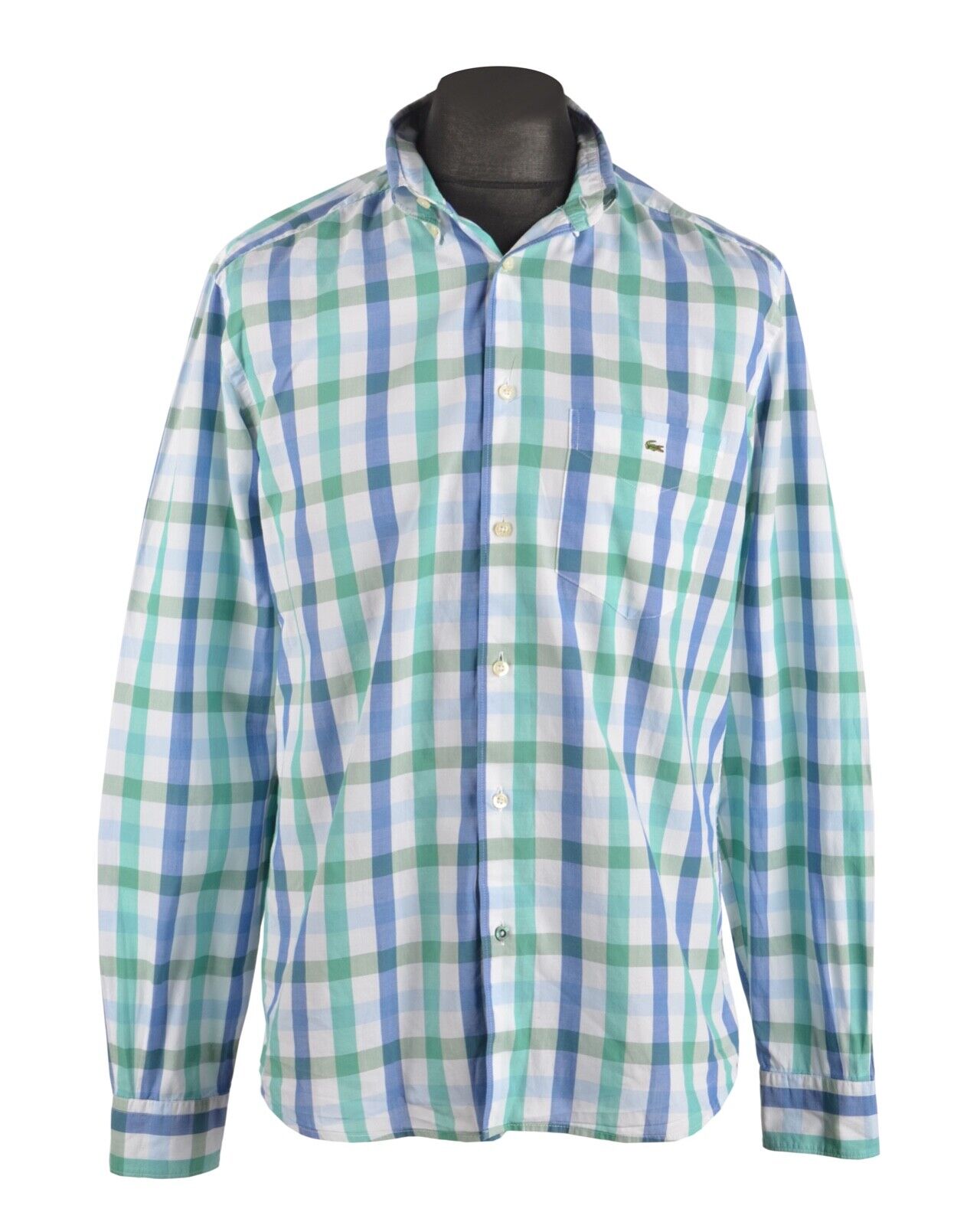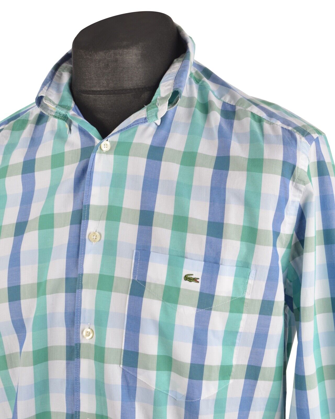Men's LACOSTE Blue Green Check Cotton Shirt Size 41