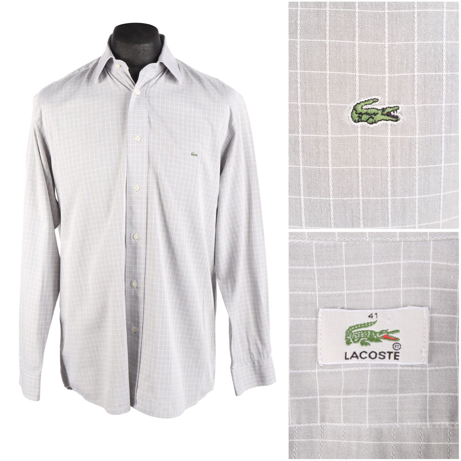 Men's LACOSTE Gray Check Cotton Shirt Size 41