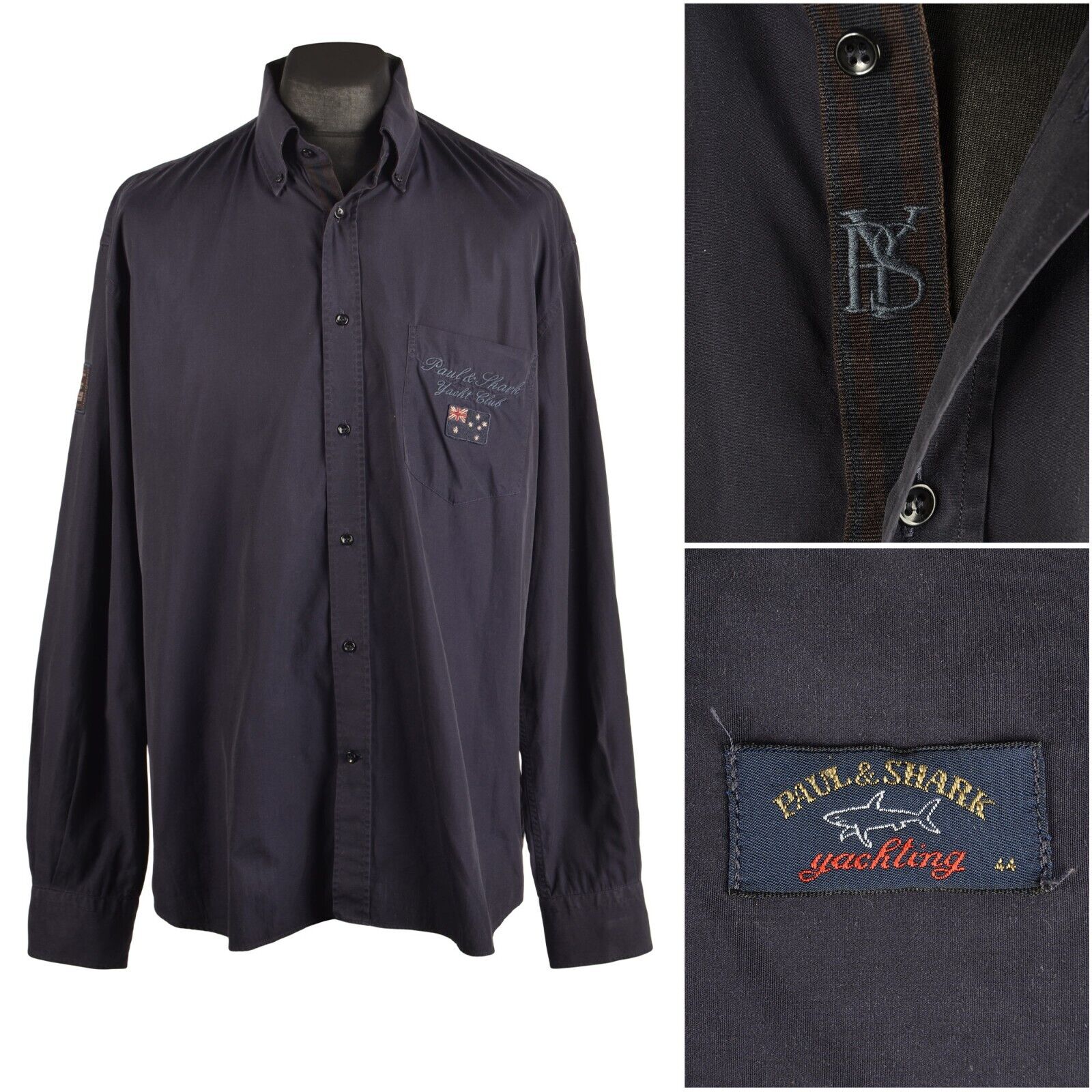 Men's PAUL & SHARK Navy Blue Cotton LS Shirt Size 44 / XL
