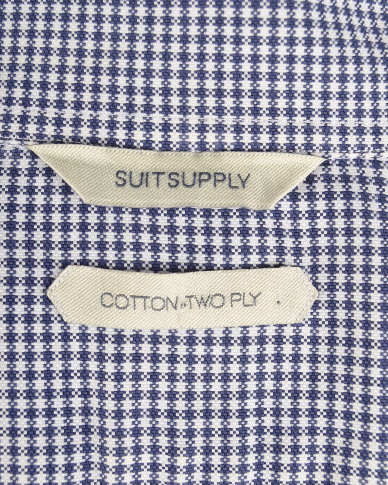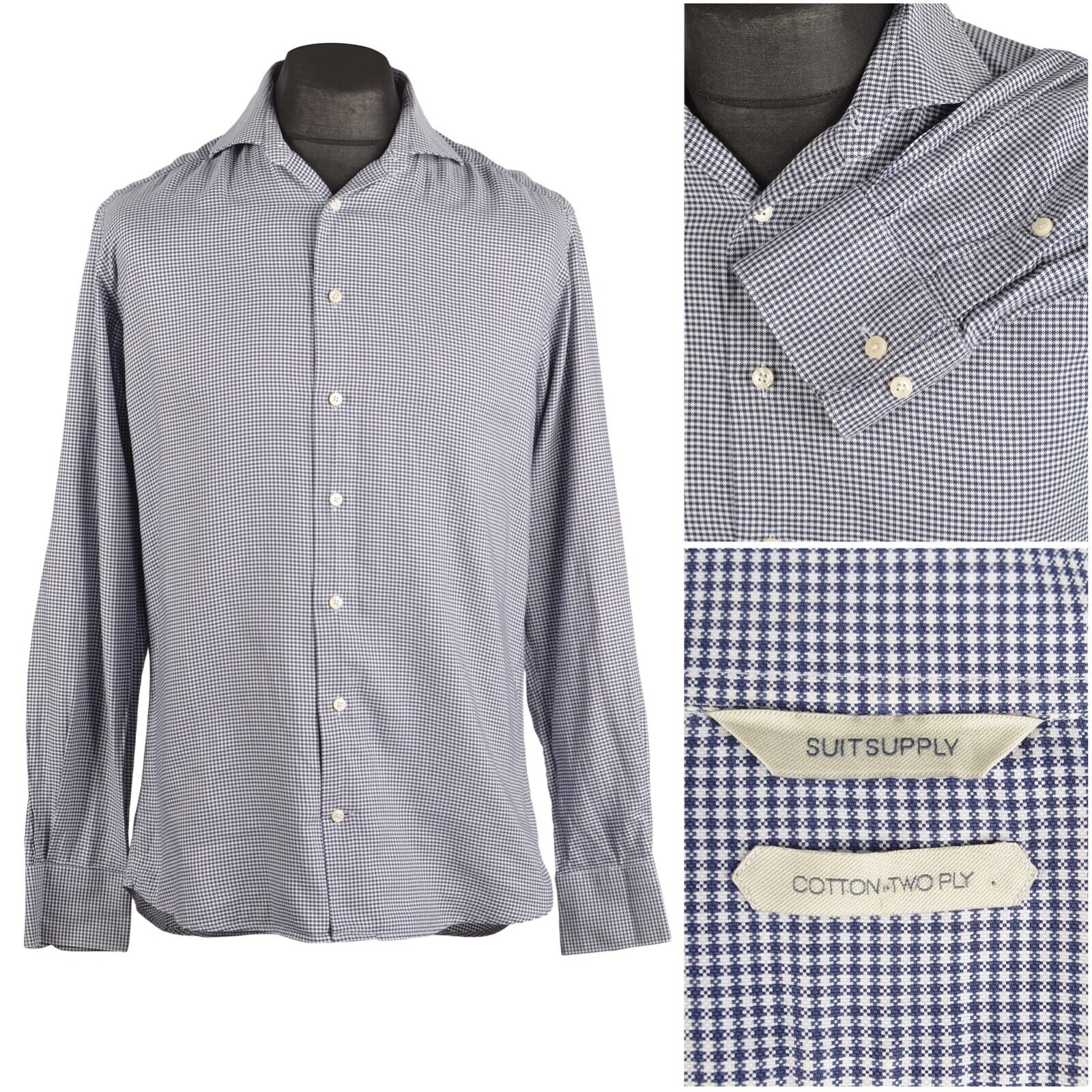 Men's SUITSUPPLY Blue Check 100% Cotton Two Ply LS Shirt Size 40 / 15.75