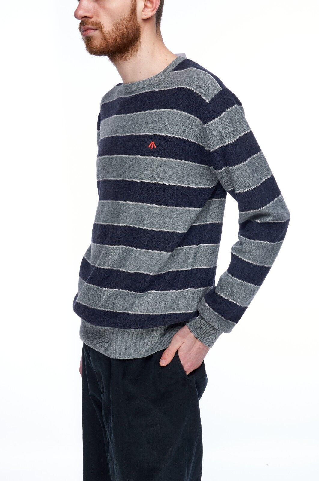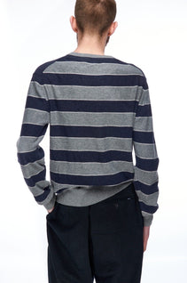 NIGEL CABOURN Crew Neck Sweater Gray Striped Cotton Men's Knit Jumper Size S