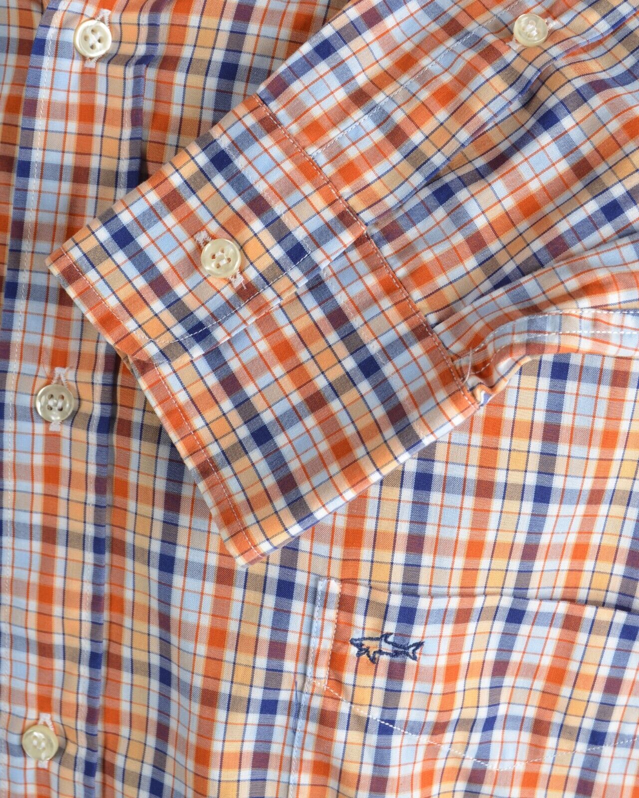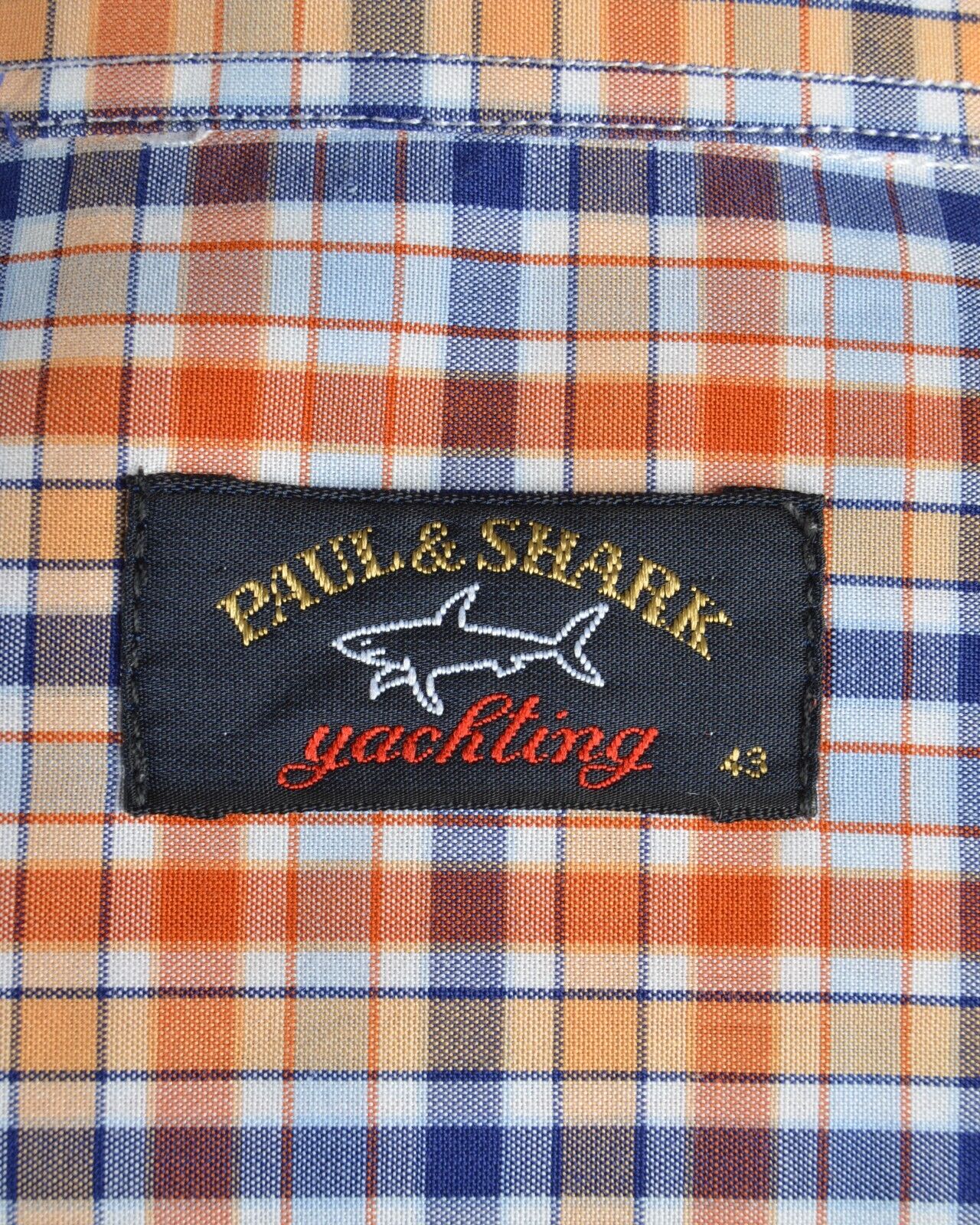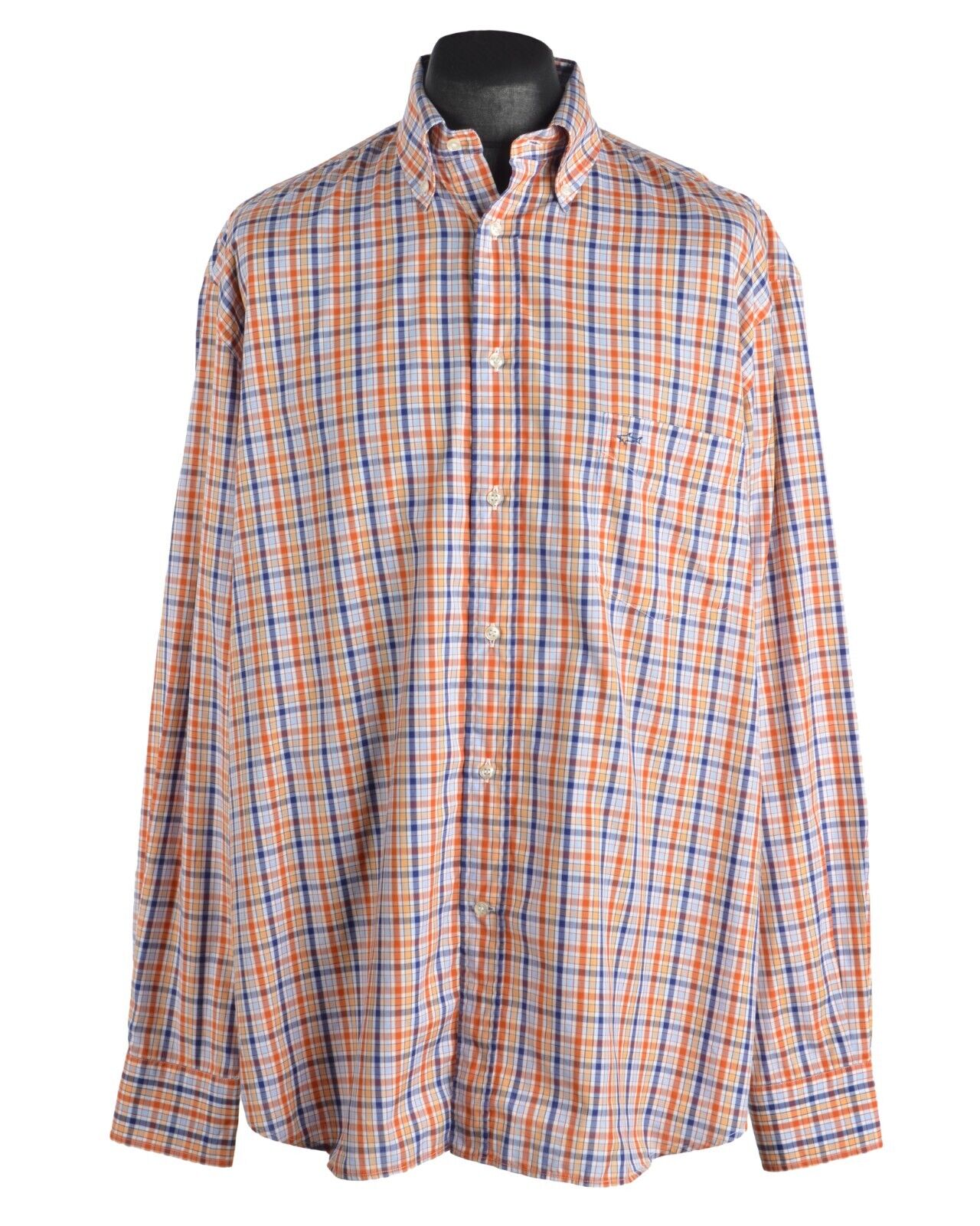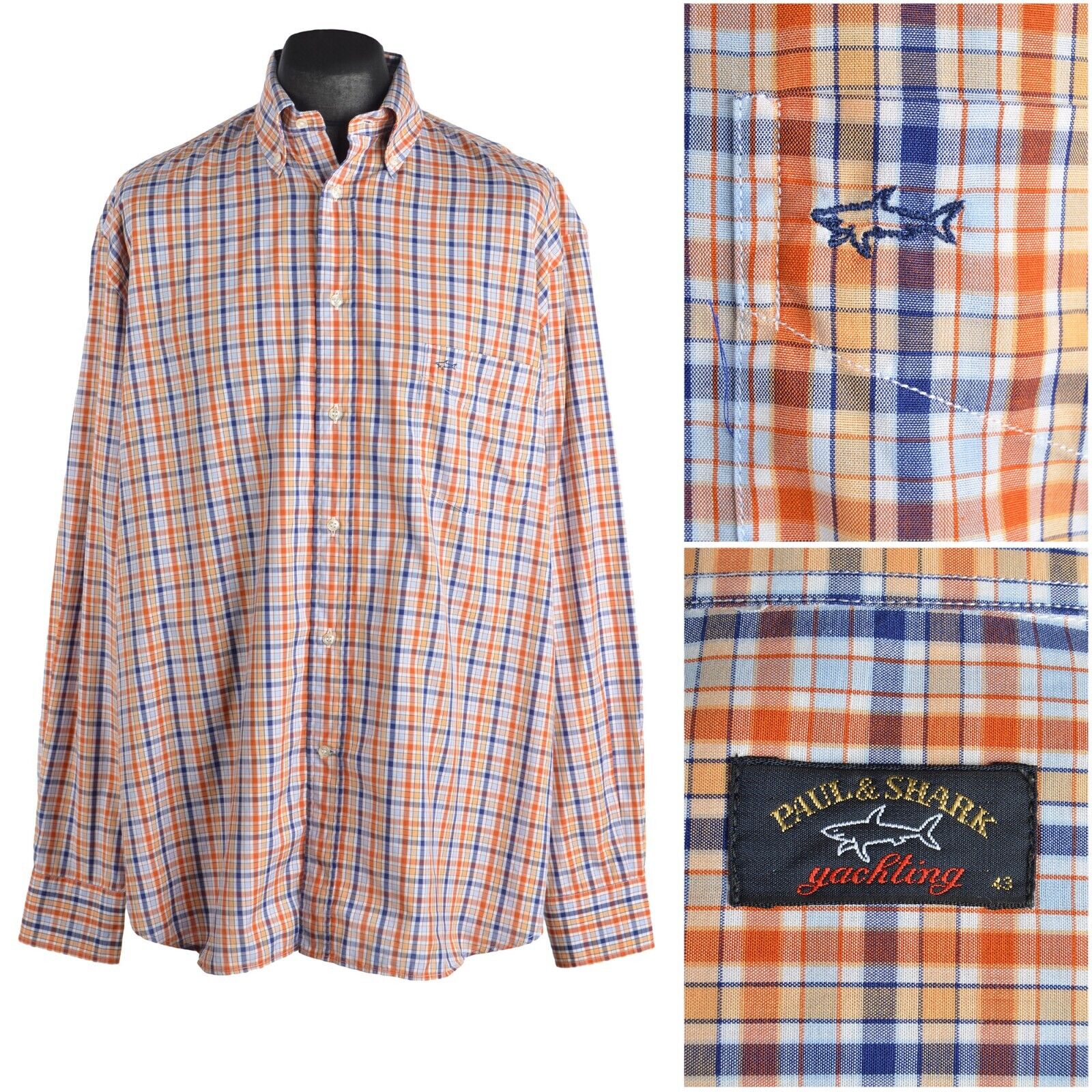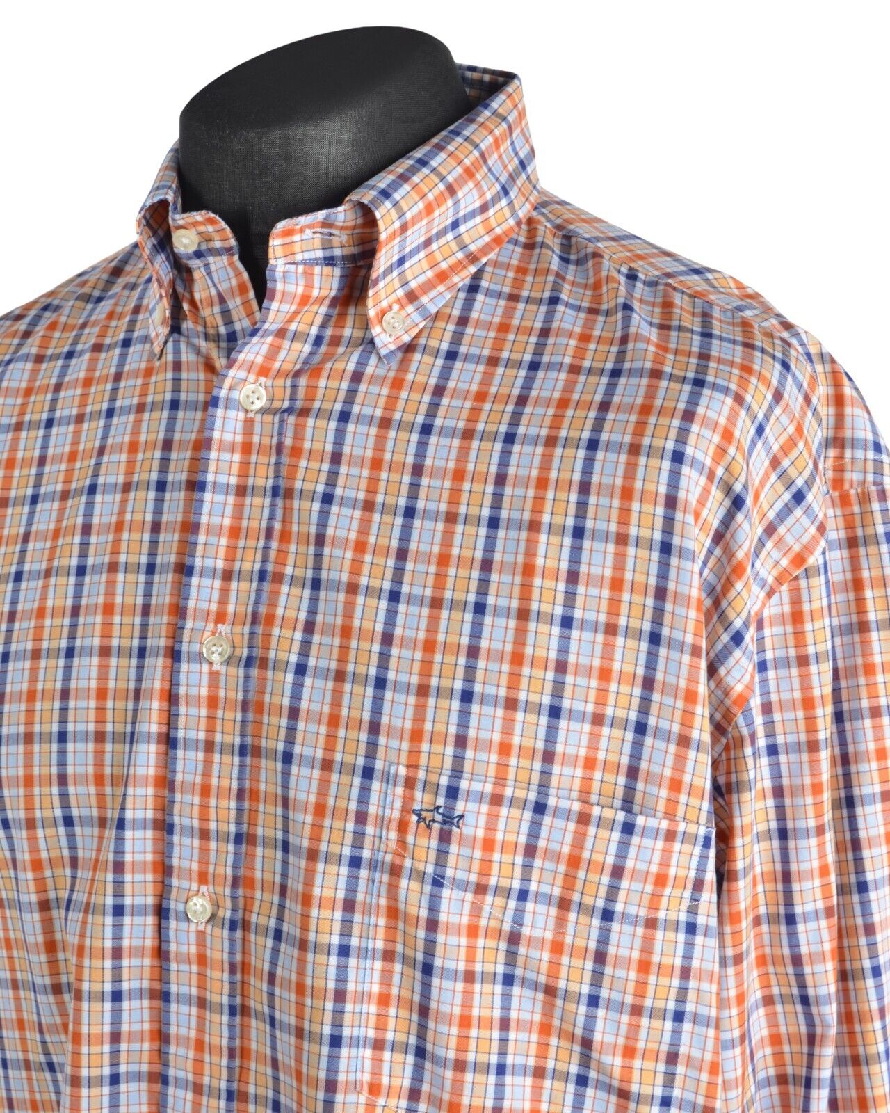PAUL&SHARK Yachting Shirt Blue Orange Check Cotton Men's Button Down Size 43