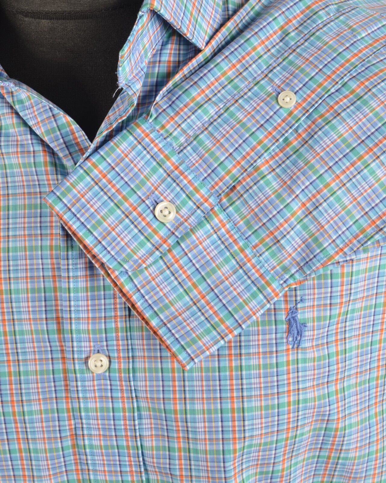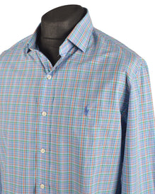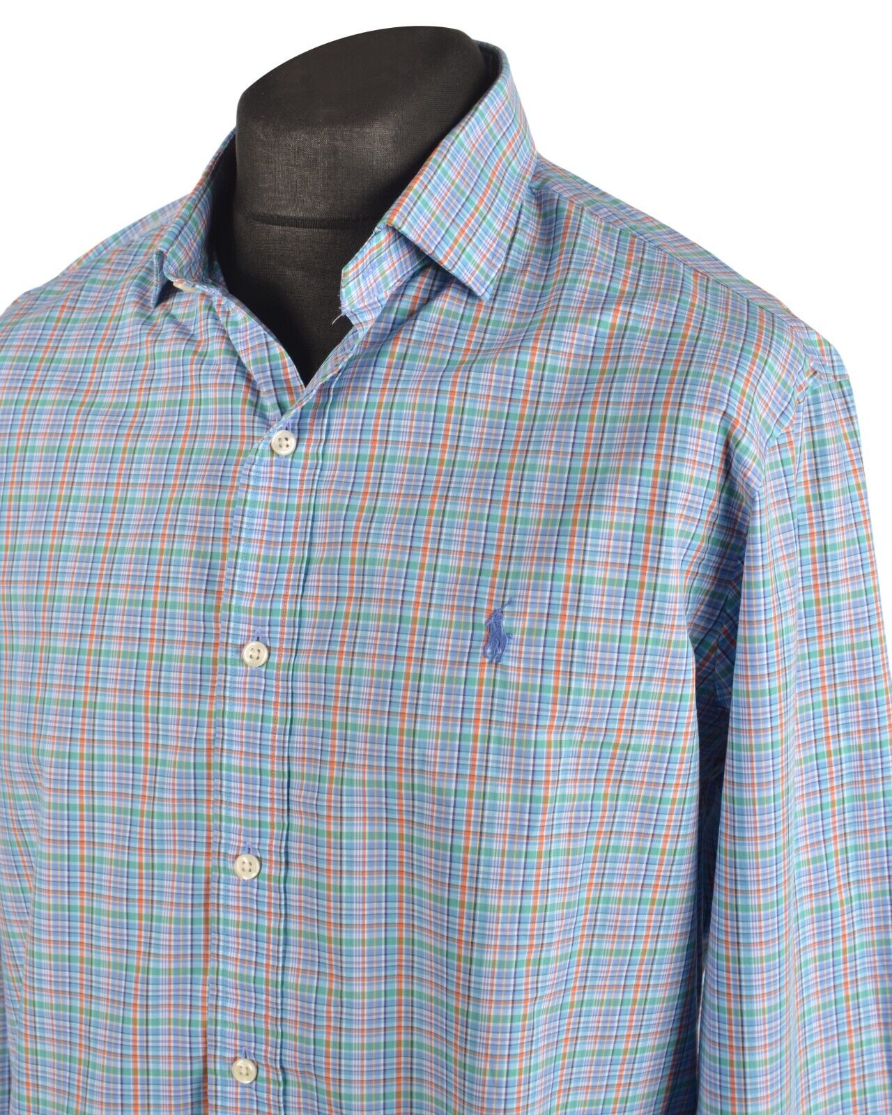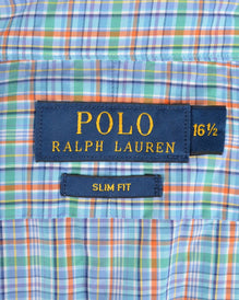POLO RALPH LAUREN Shirt Blue Check Cotton Men's Button Up Slim Fit Size 16.5