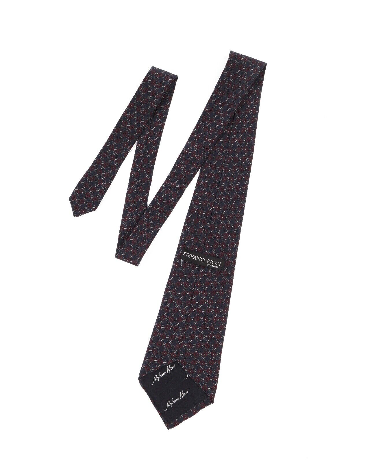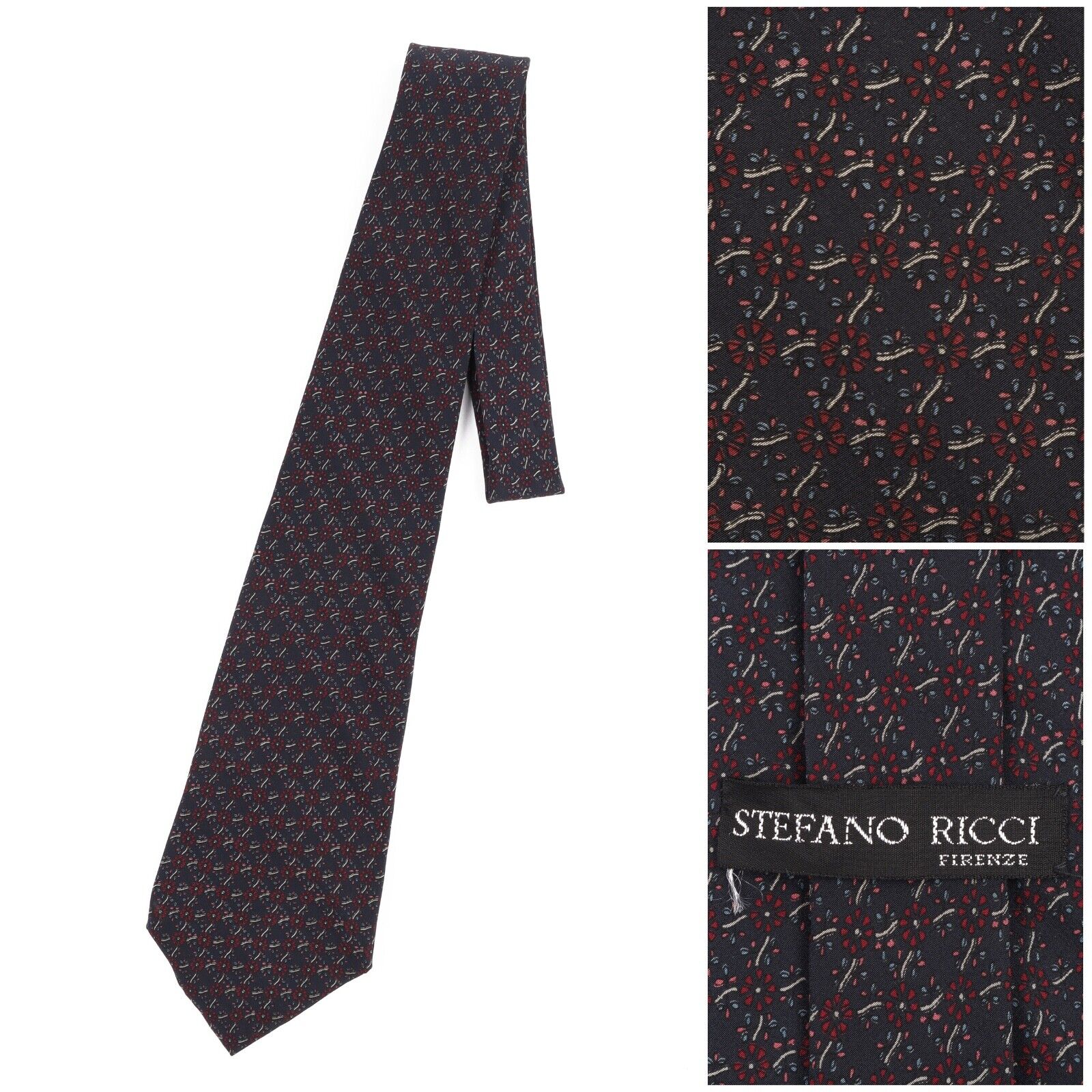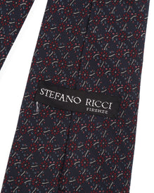 STEFANO RICCI Tie Navy Floral Pattern Silk Men's Woven Necktie