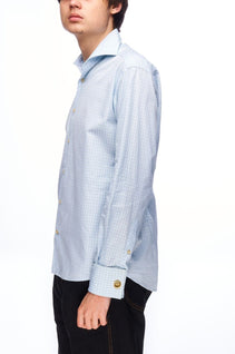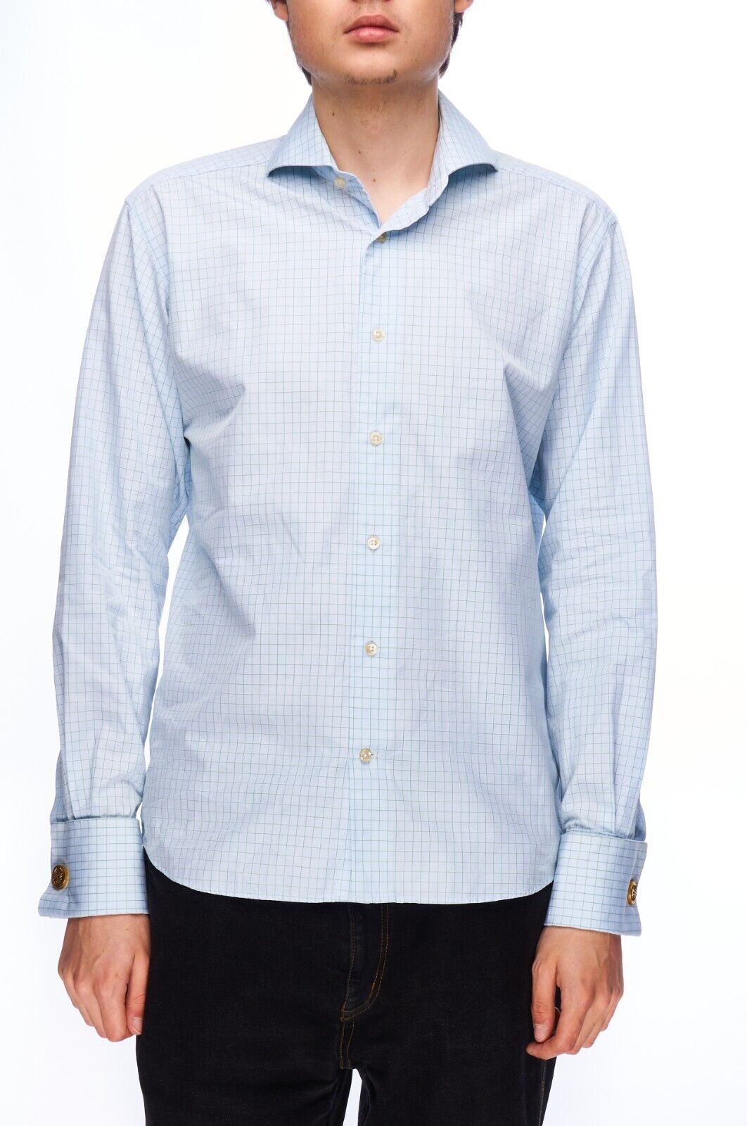 SUITSUPPLY Dress Shirt Blue Check Cotton Men's Button Up Size 37