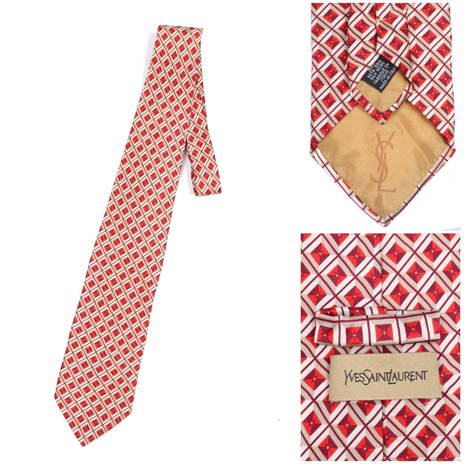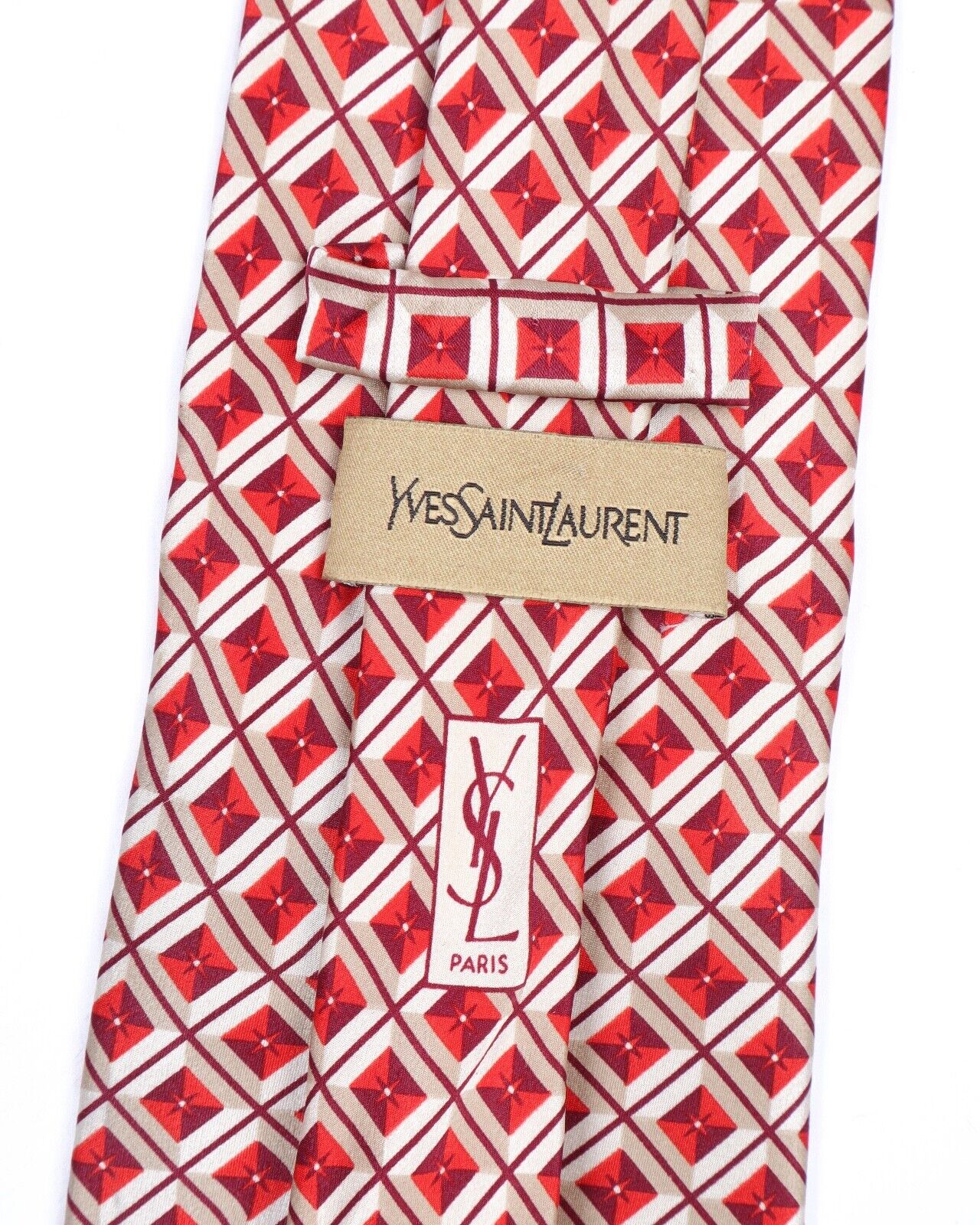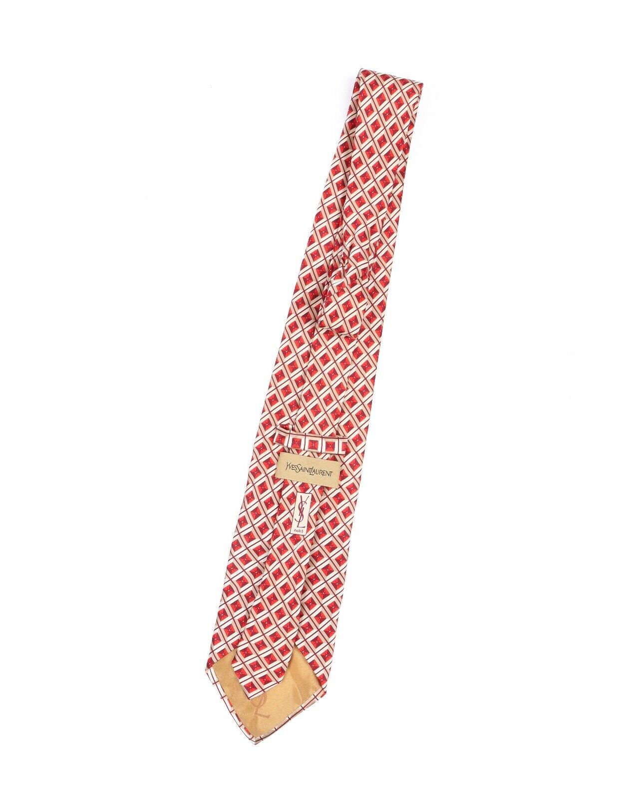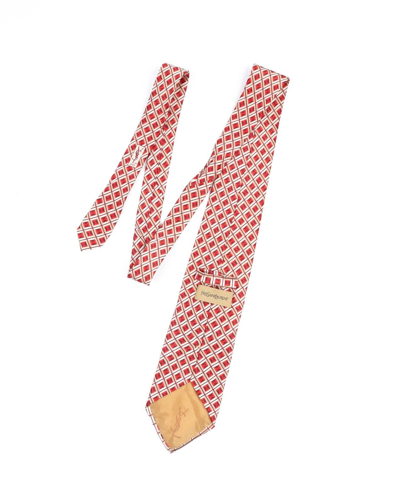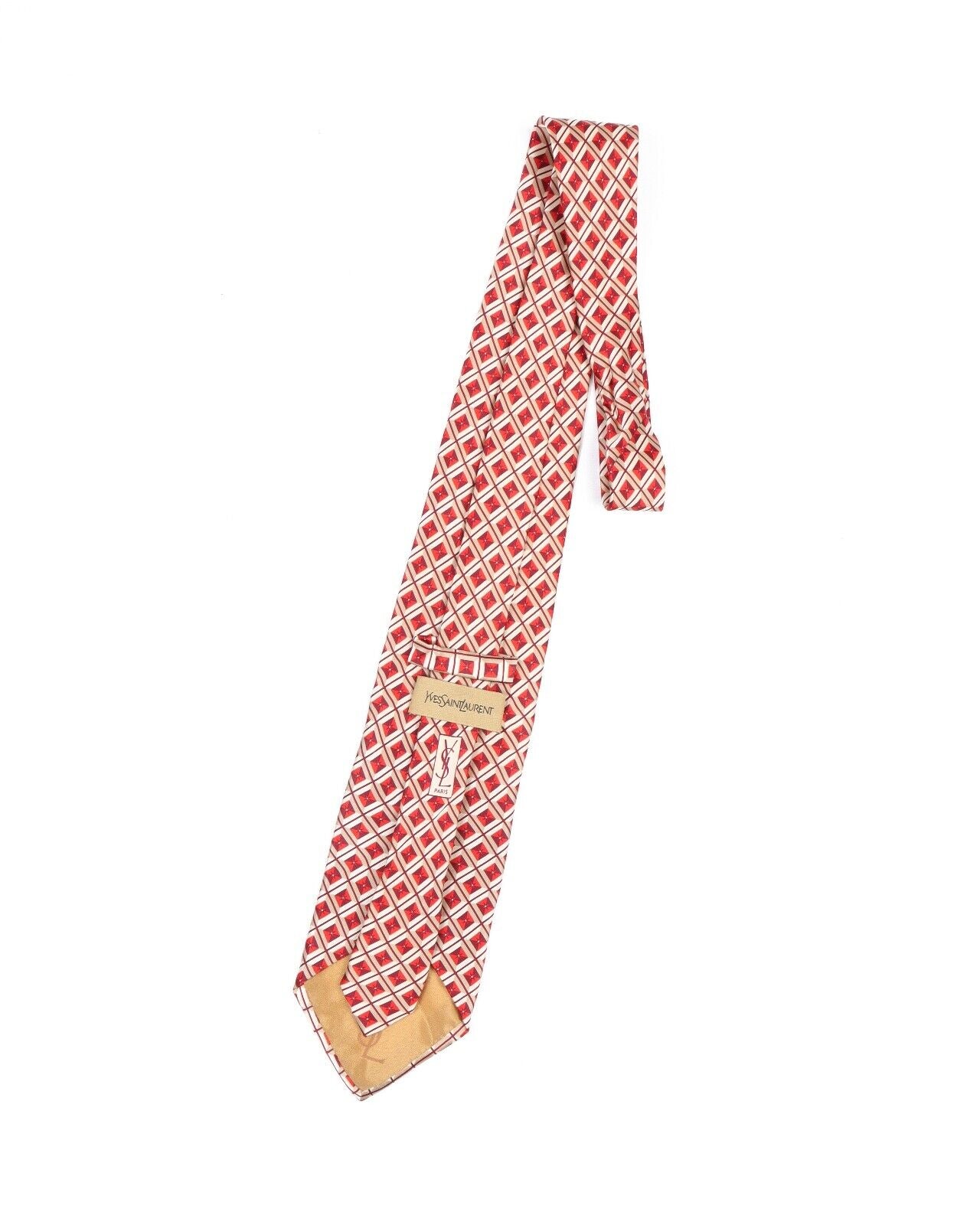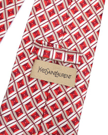 YVES SAINT LAURENT Tie Red Diamond Print Silk Men's Woven Necktie