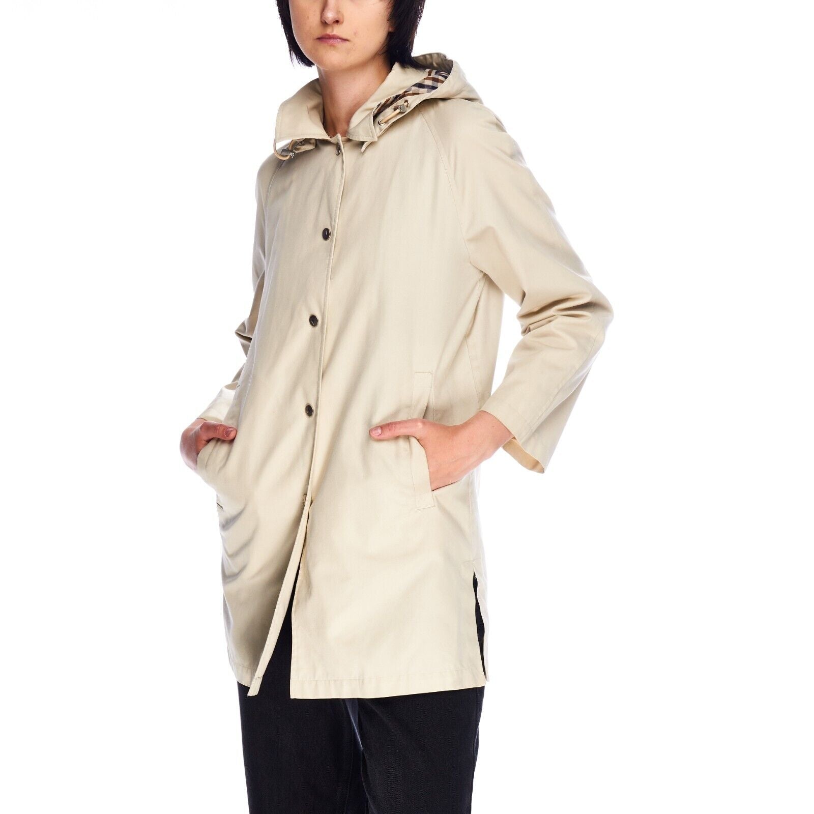 AQUASCUTUM London Hooded Jacket Beige Cotton Women's Snap Coat Size S