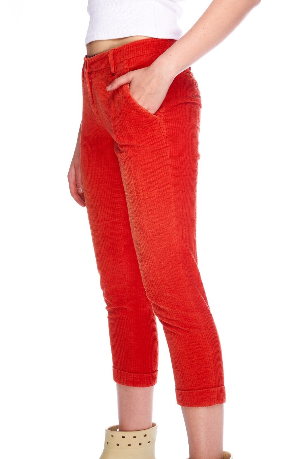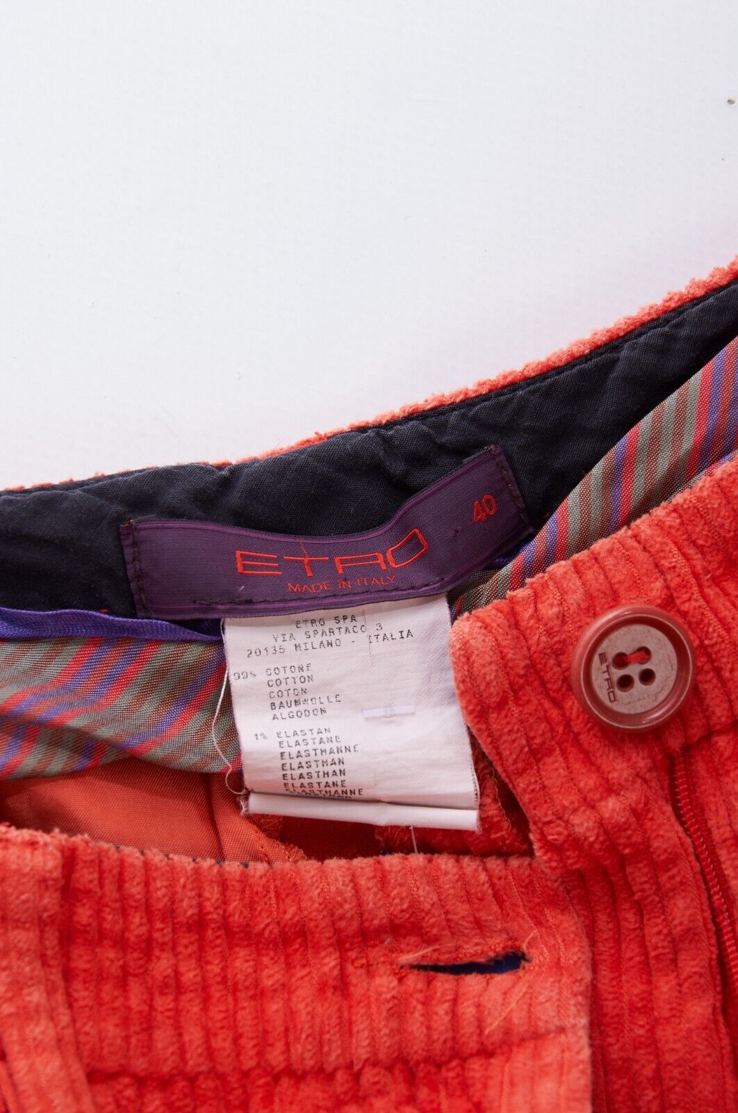 ETRO Pants Orange Corduroy Cotton Women's Skinny Breeches Trousers Size 40