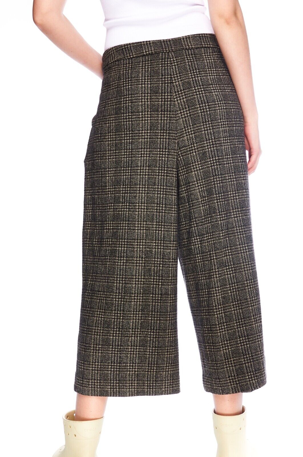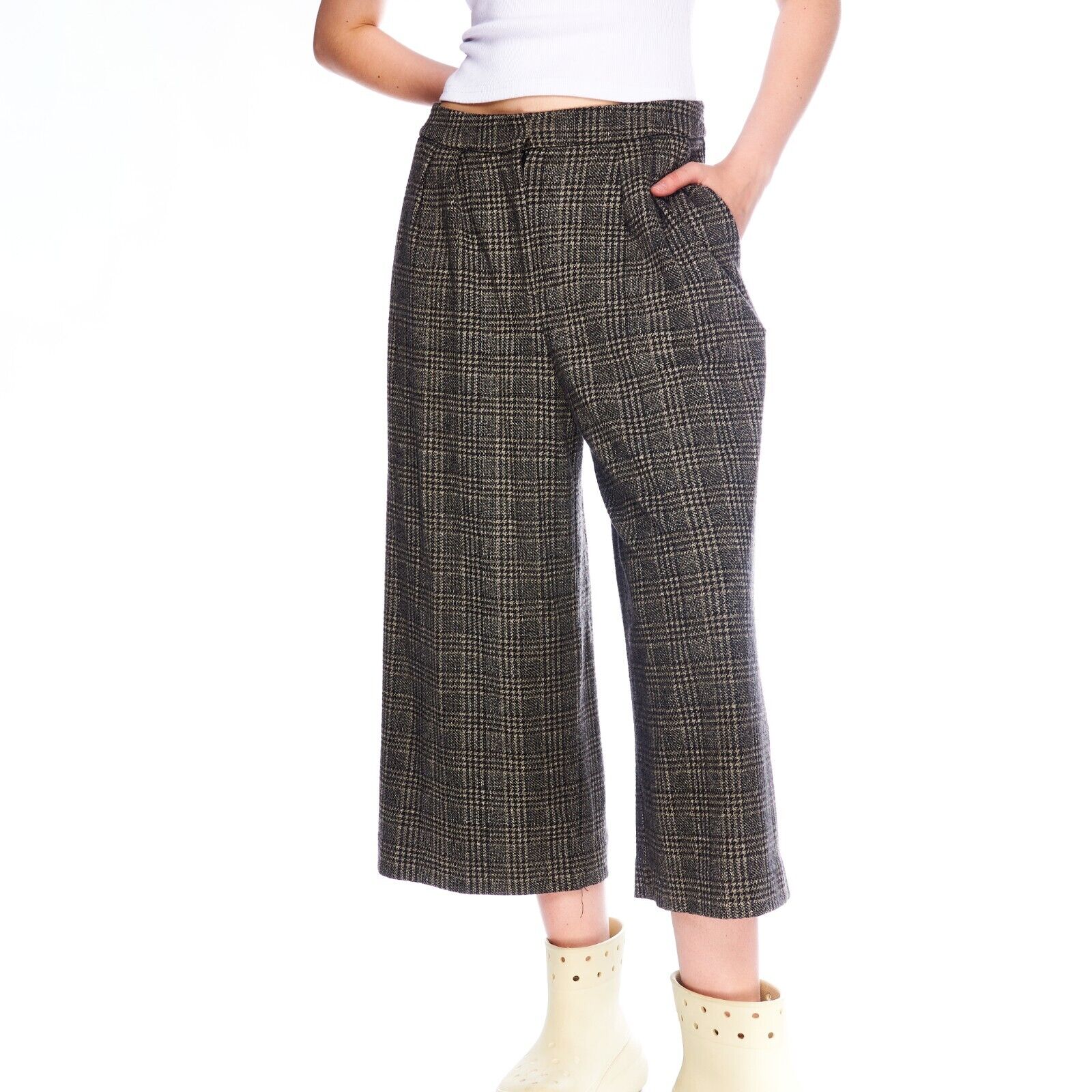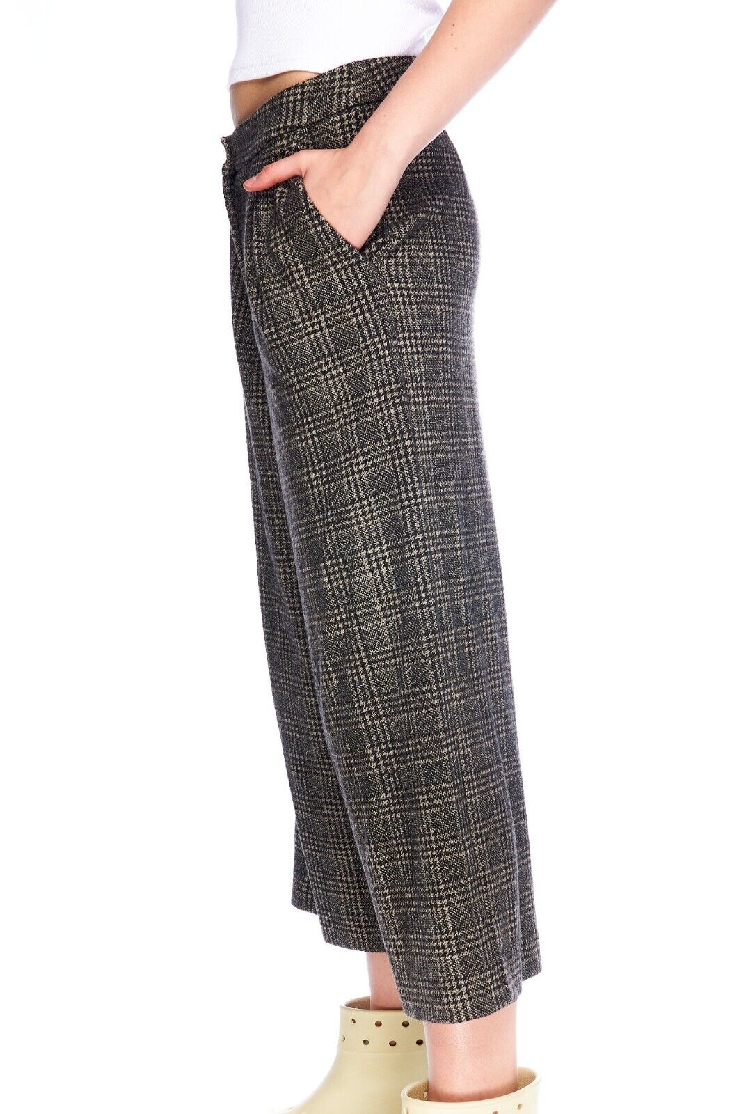LA TRICOT PERUGIA Pants Gray Check Women's Cropped Wide Leg Culottes Size L