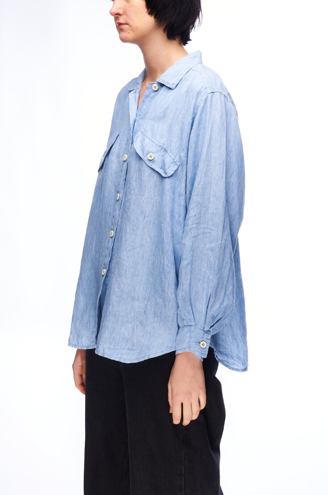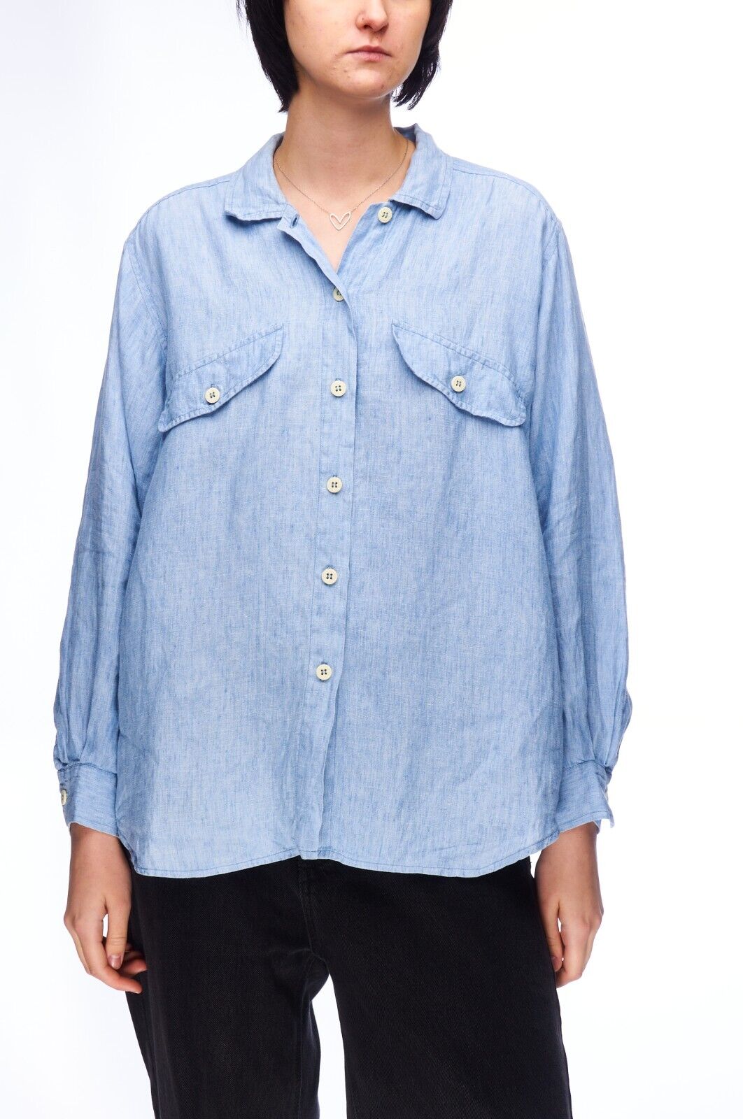 RONALD FERA Shirt Blue Linen Women's Loose Fit Top Size ~L