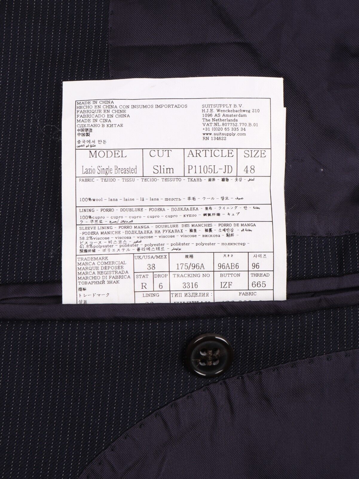 SUIT SUPPLY 3 Piece Suit Navy Blue Striped Wool Mens Size 48 EU / 38 US