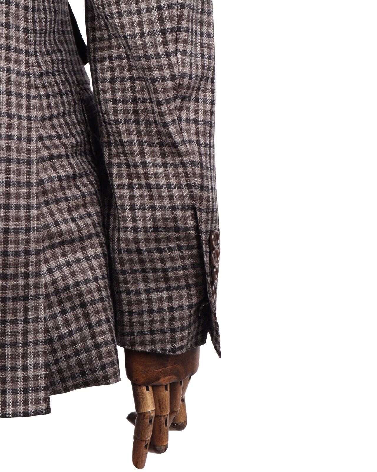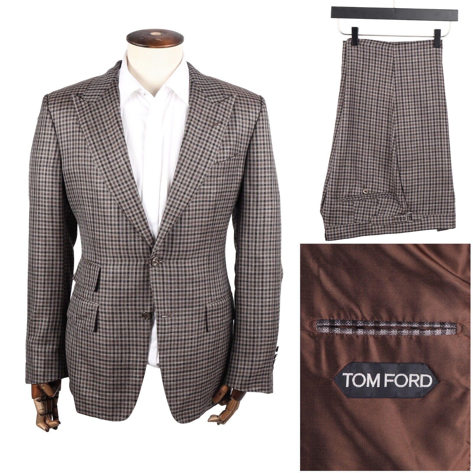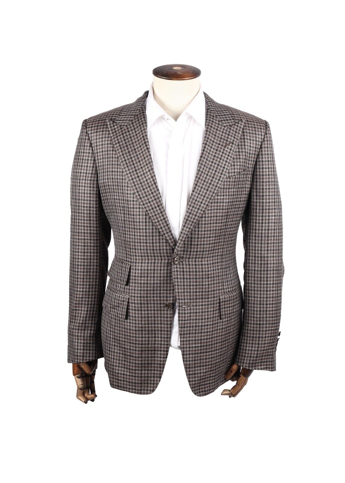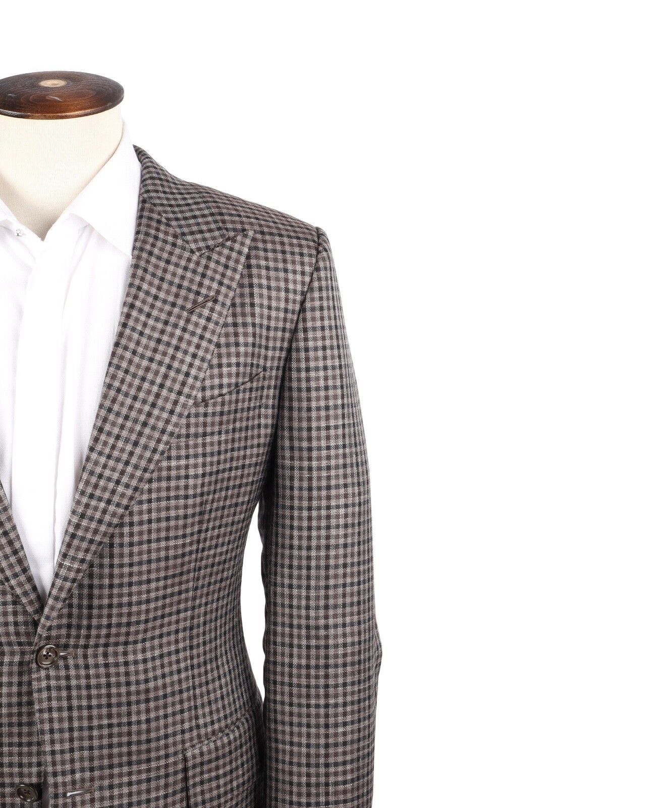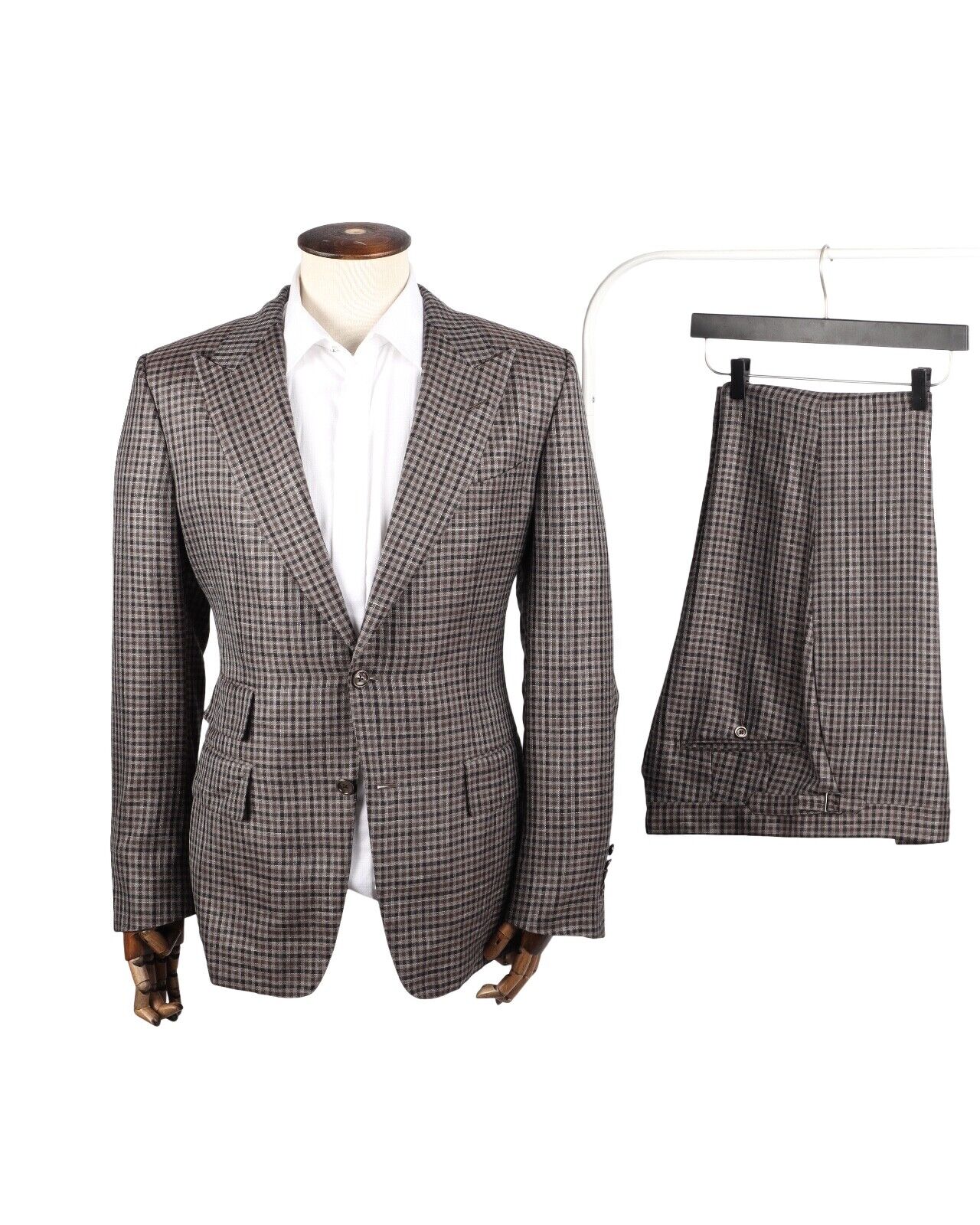 TOM FORD Peak Lapel Suit Brown Check Wool Silk Linen Men's 50 IT / 40 US