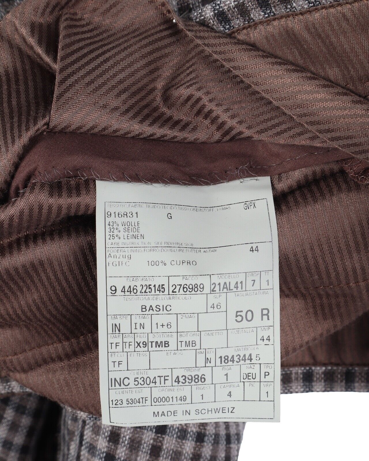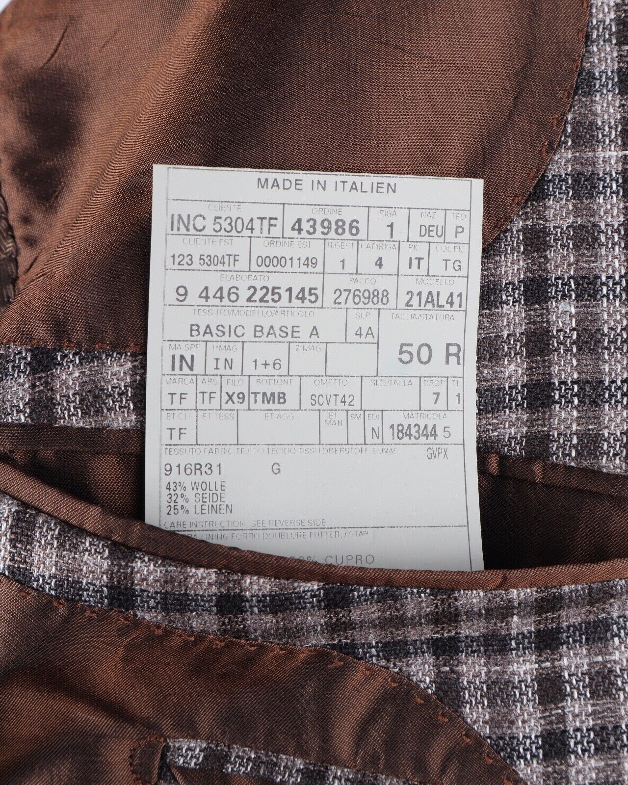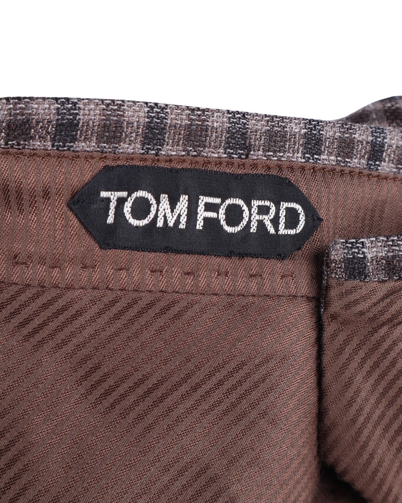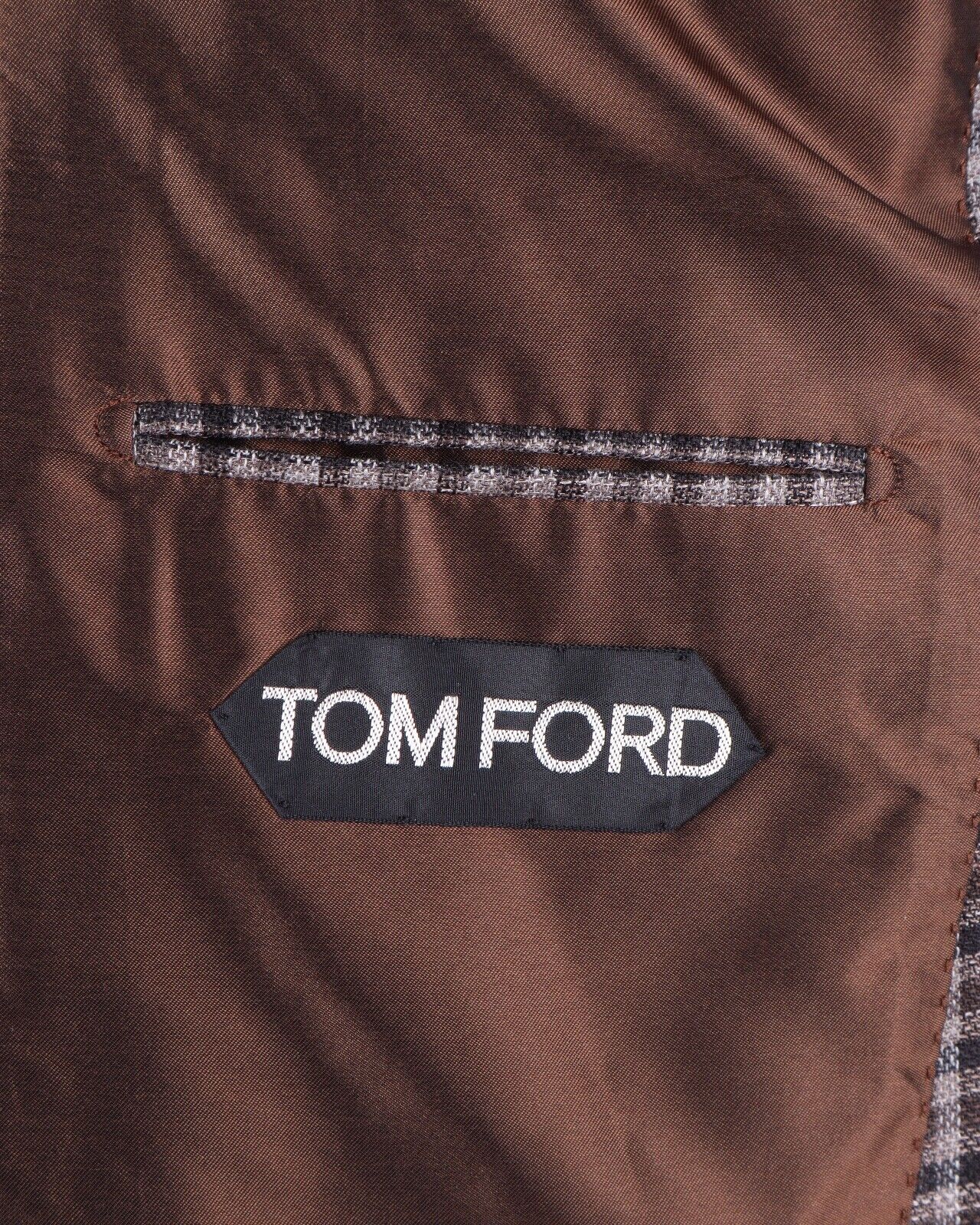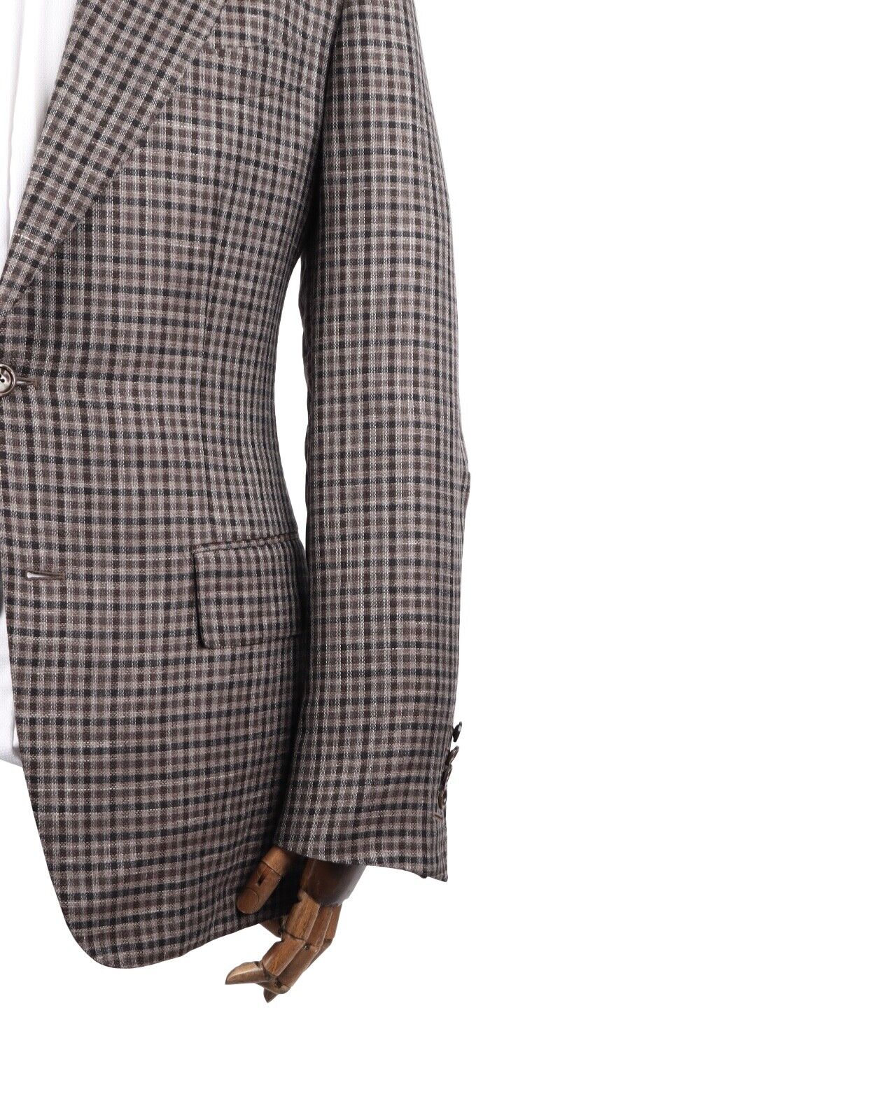 TOM FORD Peak Lapel Suit Brown Check Wool Silk Linen Men's 50 IT / 40 US