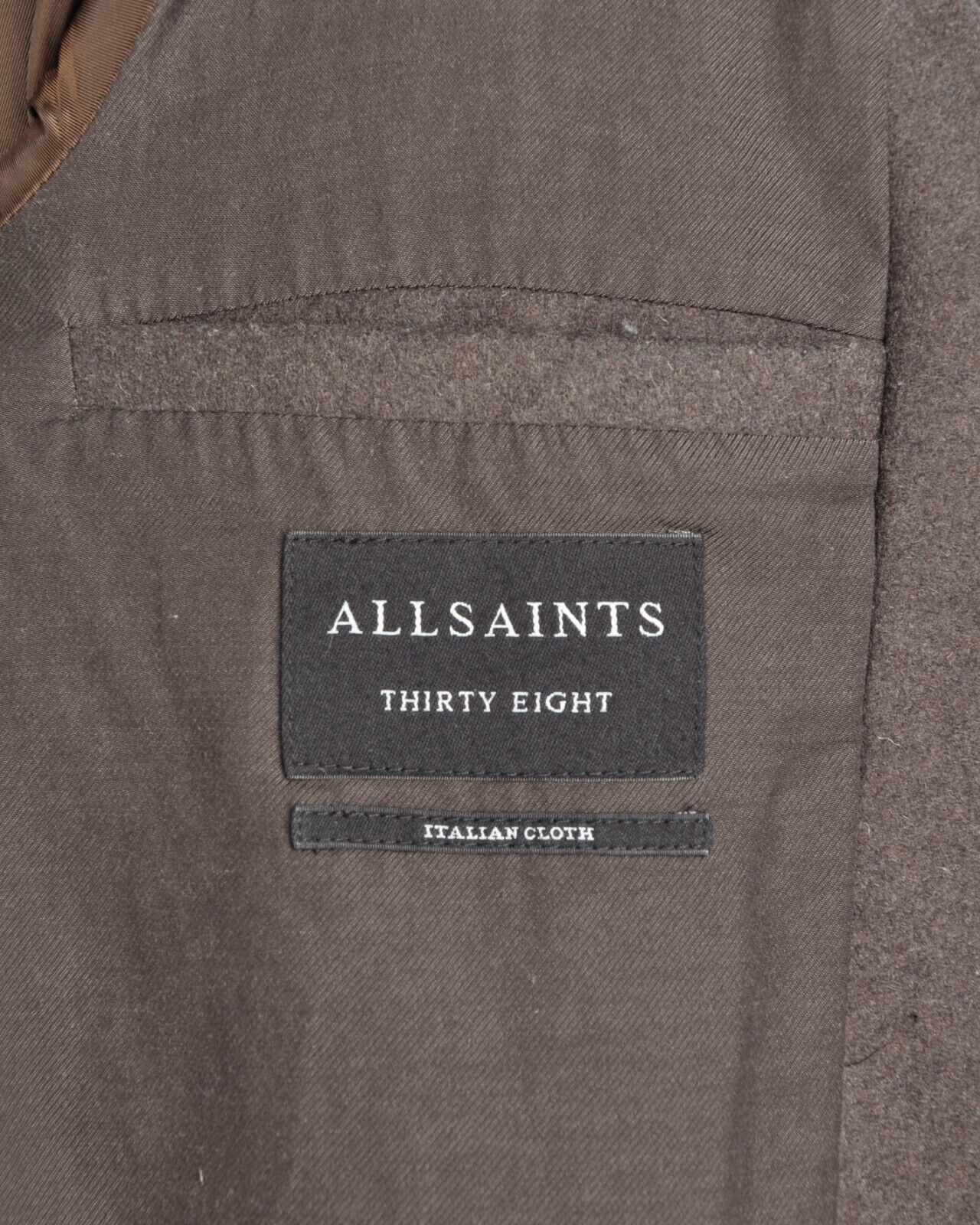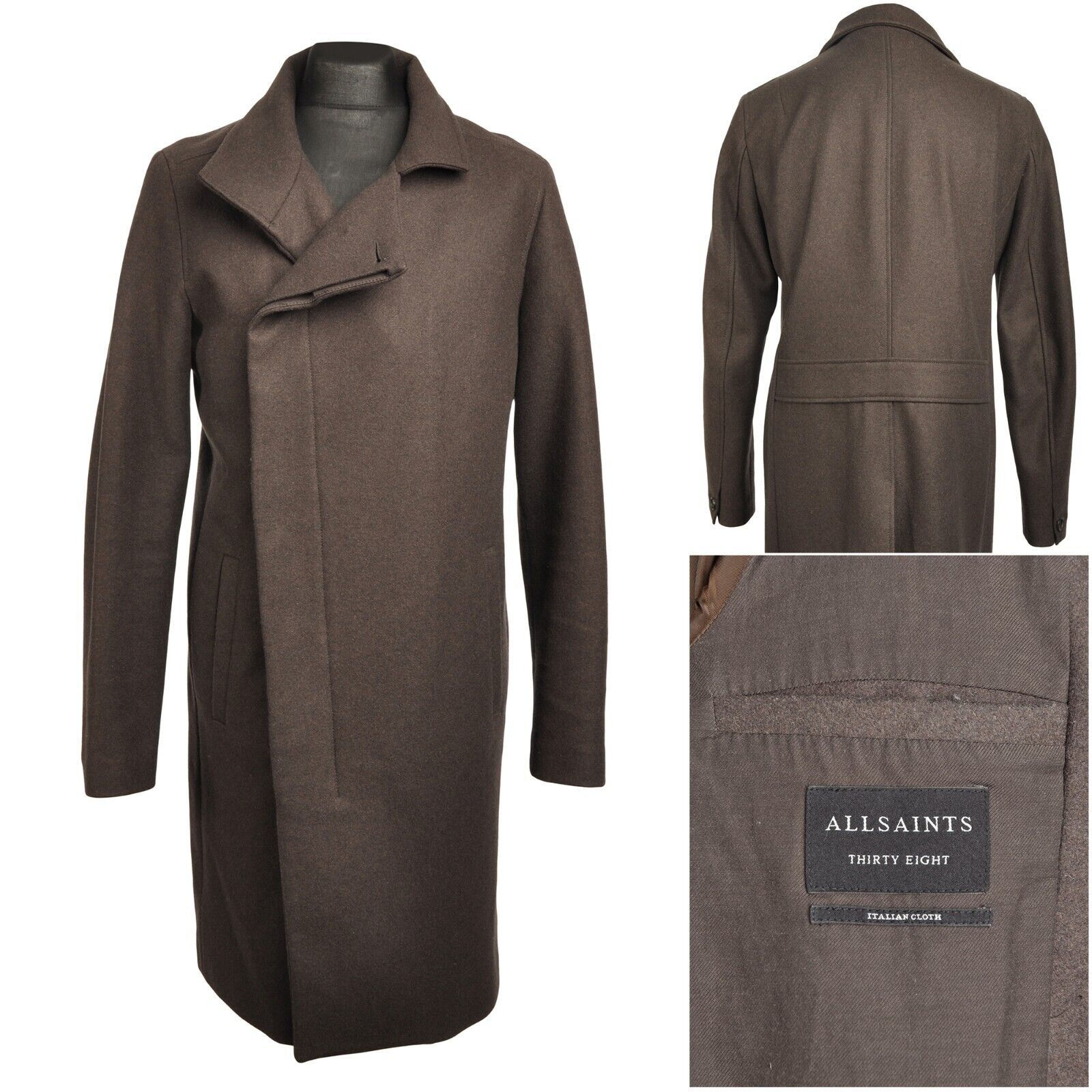 ALLSAINTS Banner Pea Coat Brown Wool Blend Notched Lapel Mens Jacket Size 48