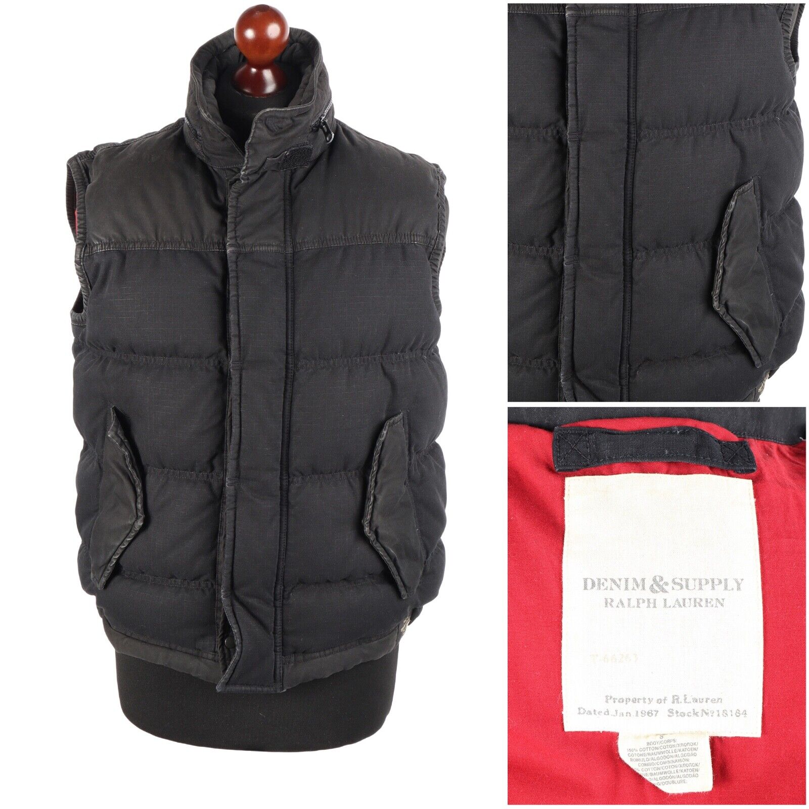 DENIM SUPPLY RALPH LAUREN Vest Black Cotton Puffer Down Men's Waistcoat Size S