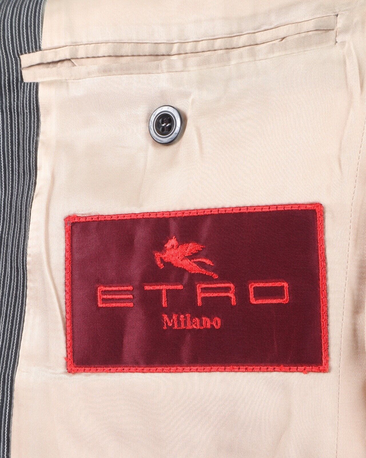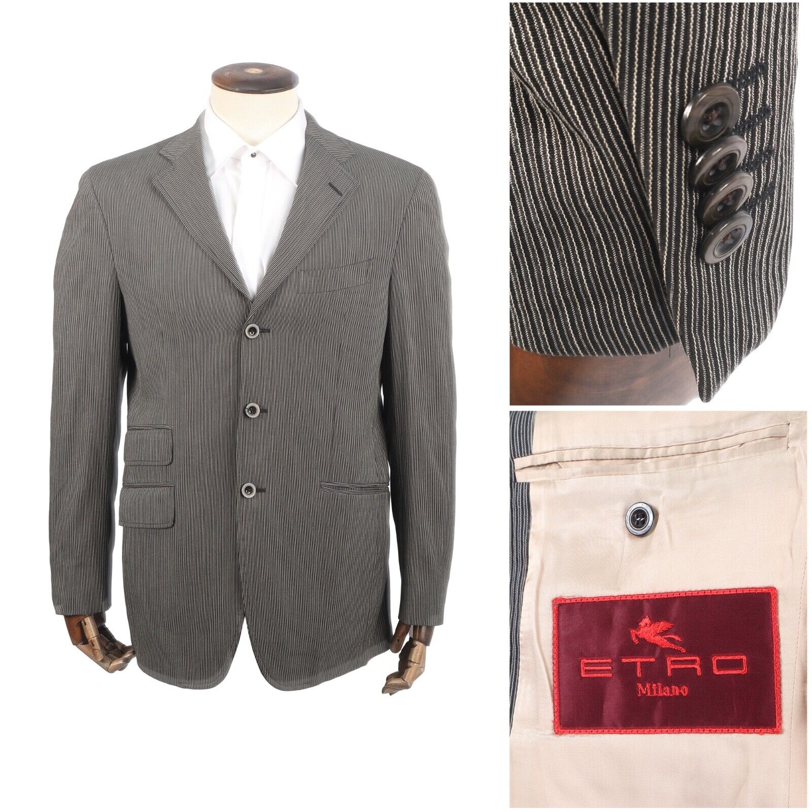 ETRO Milano Blazer Black Striped Cotton Men's Suit Jacket Size 48 IT