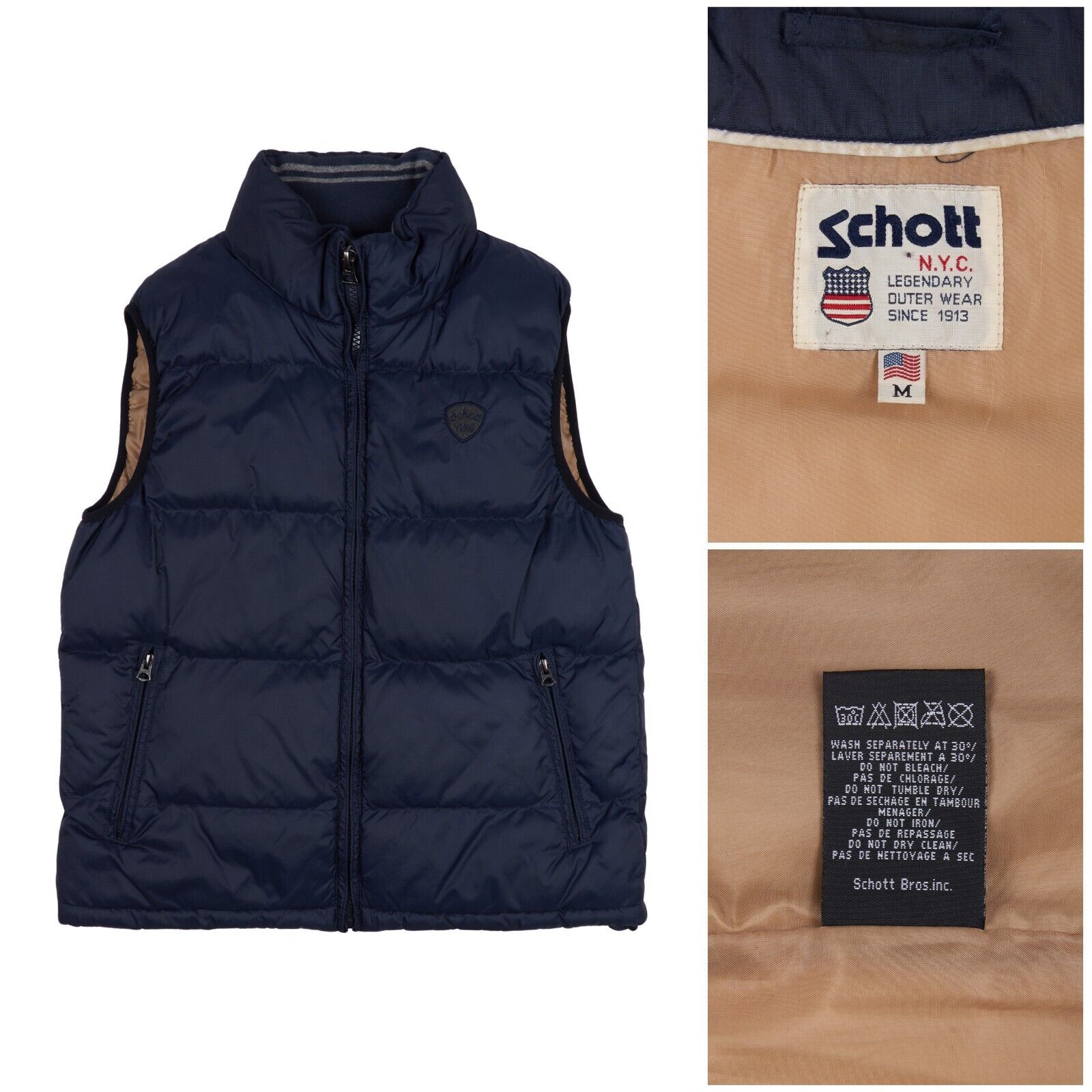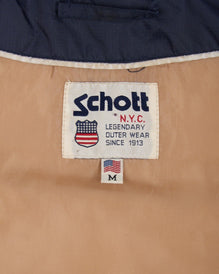 SCHOTT NYC Down Vest Navy Nylon Men's Puffer Hooded Sleeveless Jacket Size M