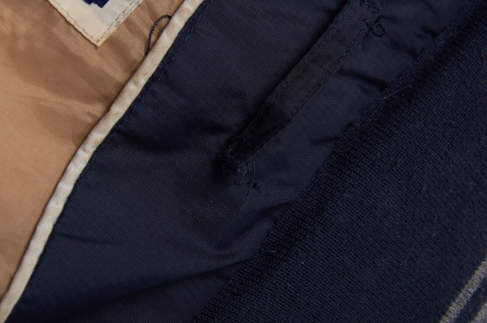 Defects: Torn lining on both sides.