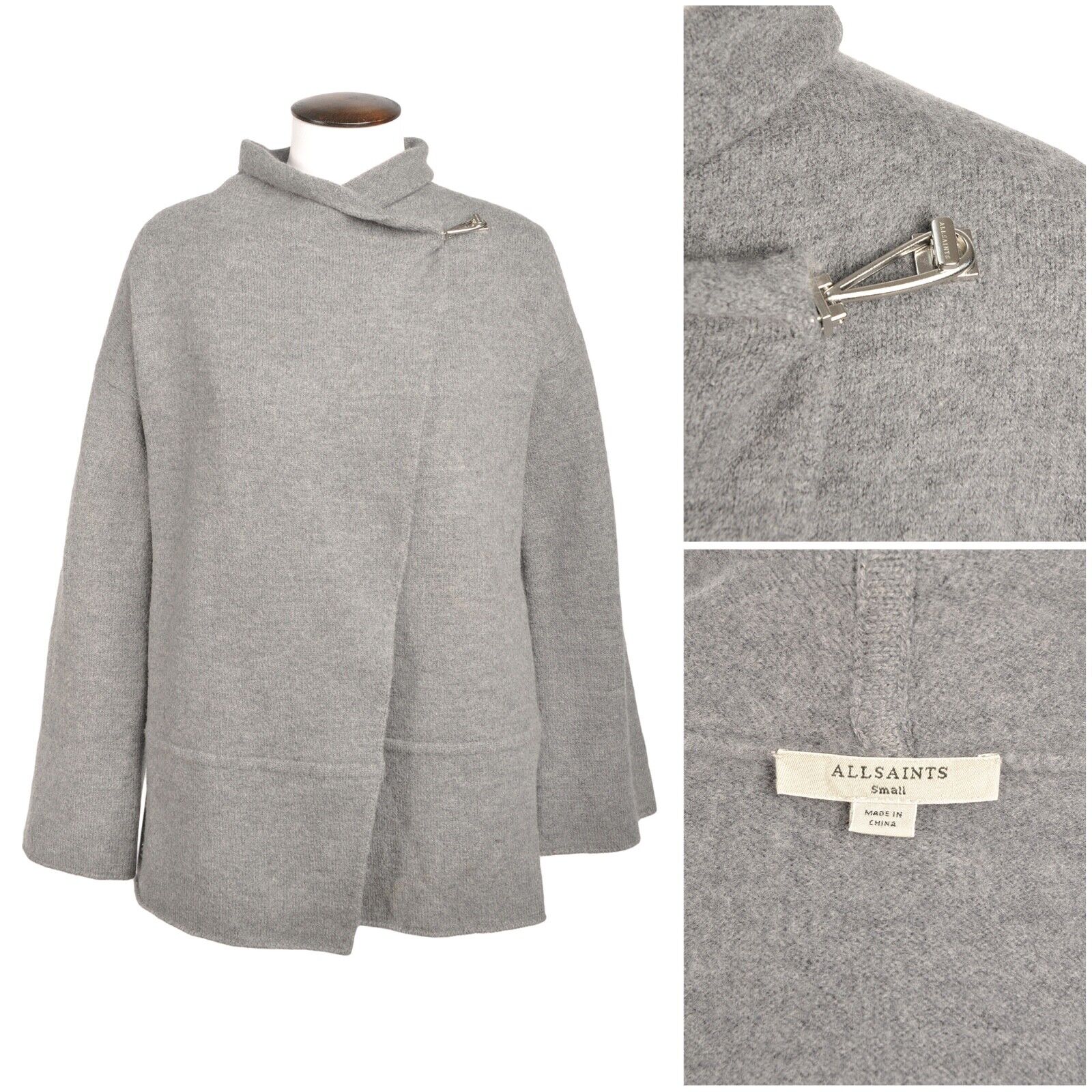 ALLSAINTS Cape Gray Wool Women's Coat Size S