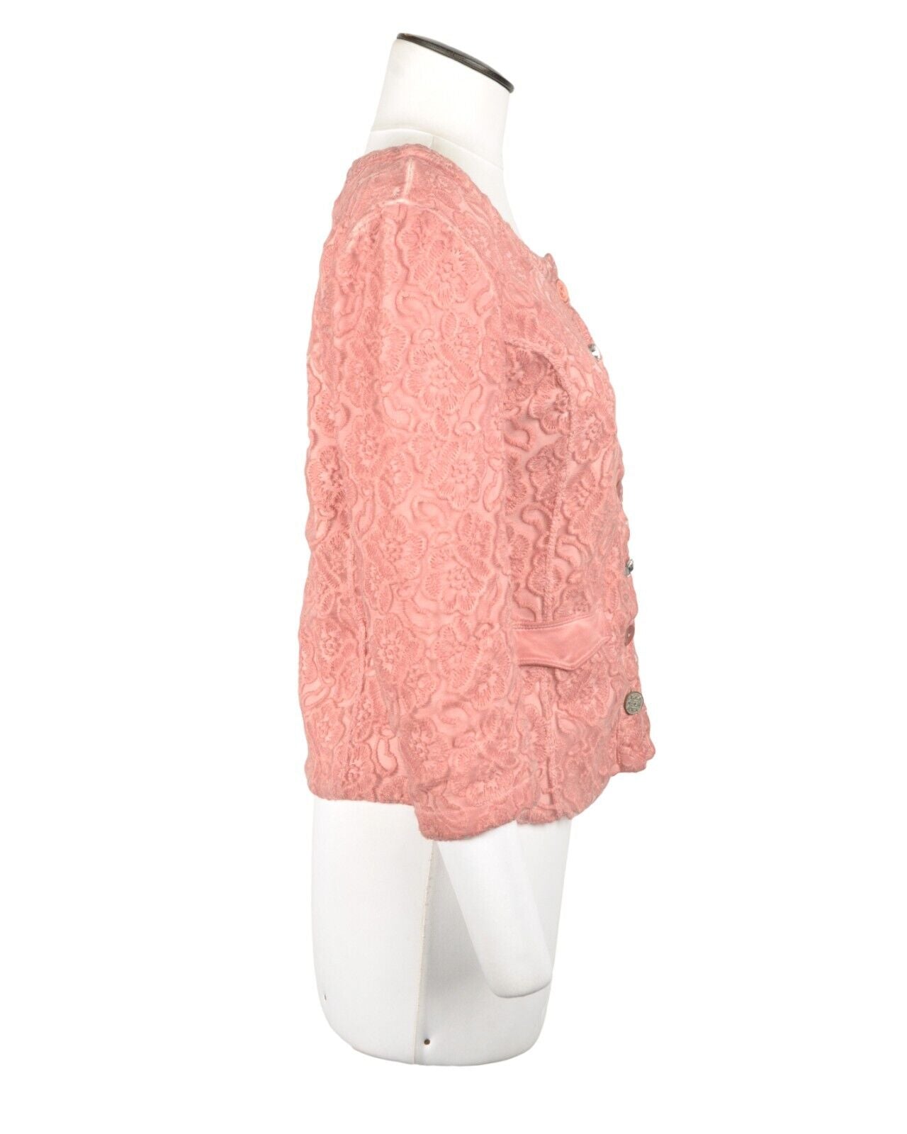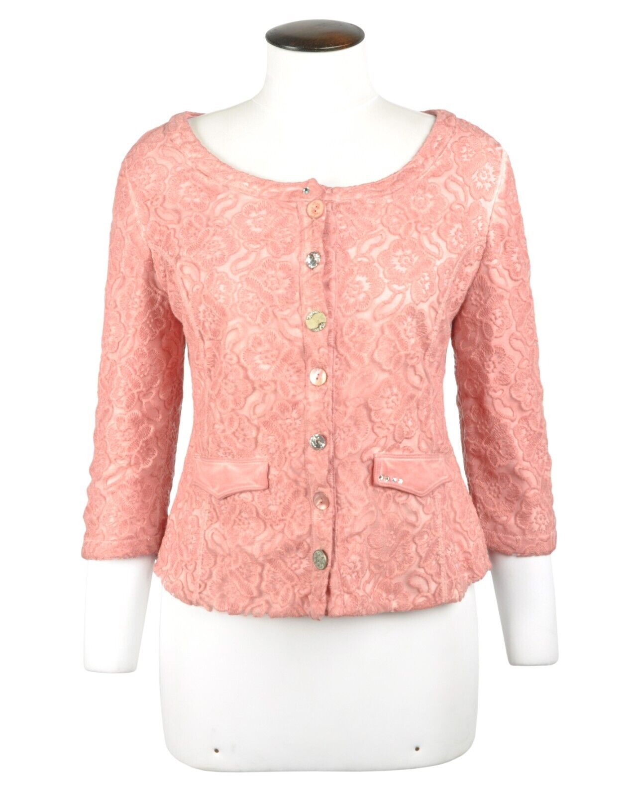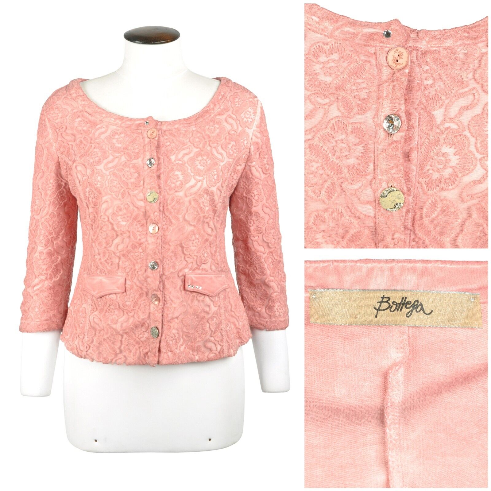 BOTTEGA Blazer Pink Floral Jacquard Boat Neck Button Front Womens Jacket Small
