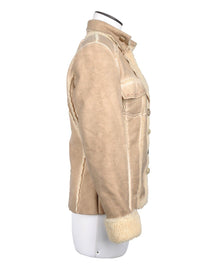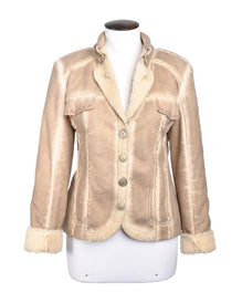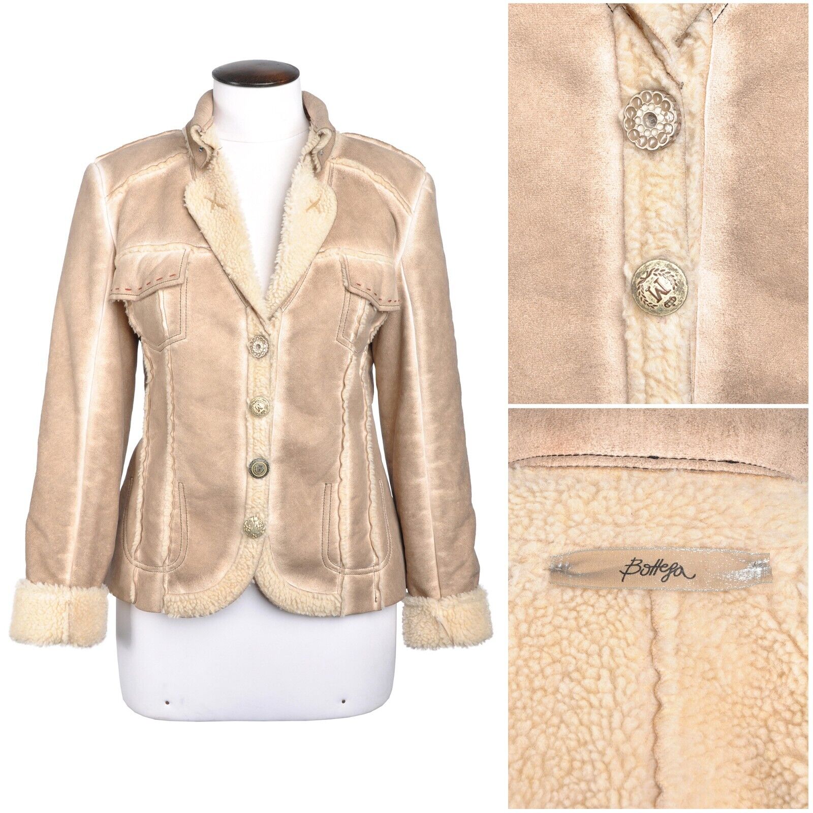 BOTTEGA Jacket Brown Collared Button Front Womens Fleece Lining Coat Blazer S